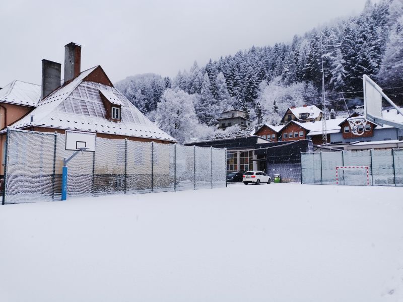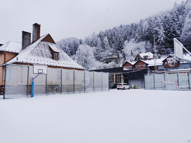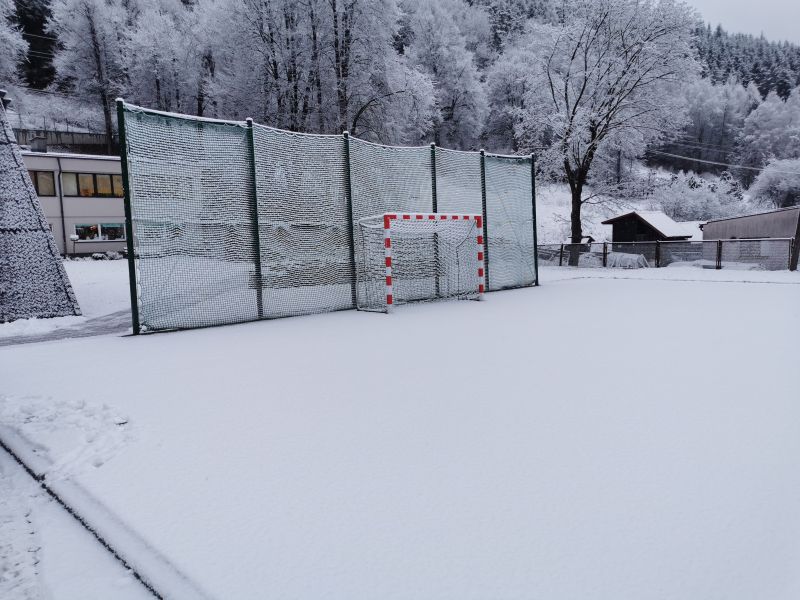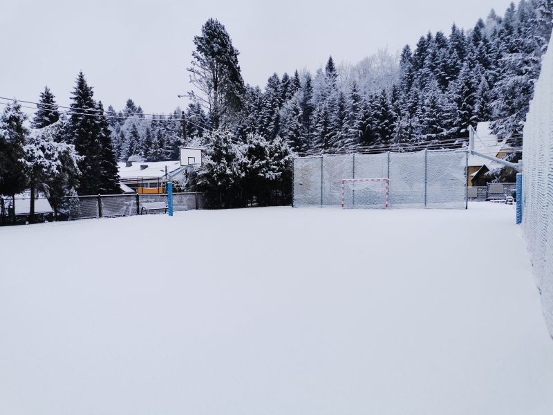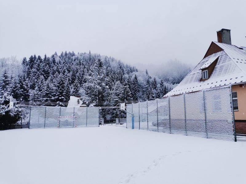 W tym dniu w godzinach nocnych i porannych spadło około 5 cm śniegu i zrobiło nam przez 1 dzień zimową aurę. Śnieg umiejscowił się na ziemi i siatkach zabezpieczających boisko sportowe tworząc ciekawy krajobraz 😊.