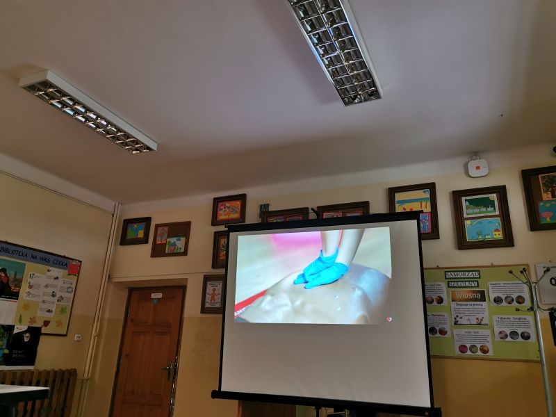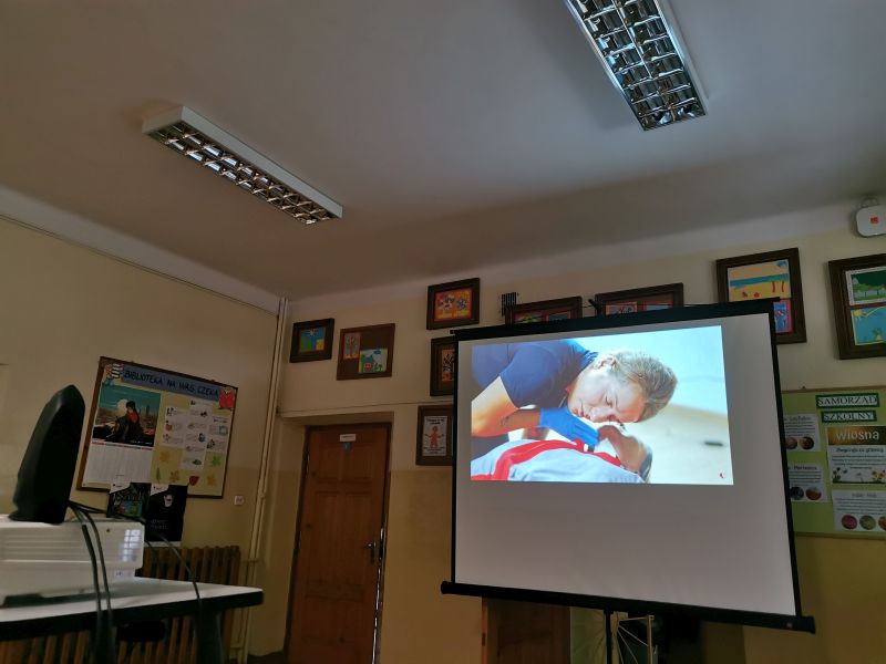 Uczniowie klas IV-VIII w tym dniu dowiedzieli się o zrealizowaniu przedsięwzięcia jakim był zakup defibrylatora zewnętrznego. Dyrektor Szkoły przypomniał im, że starania czyniono poprzez zbiórkę pieniędzy na ten cel i ostatecznie mamy go zamontowany na zewnątrz głównego budynku. Przypomniał, że w najbliższym czasie jest przewidziany pokaz praktyczny jak należy używać ten defibrylator, który zademonstruje ratownik medyczny. Ponadto uczniowie obejrzeli 20 minutowy film w którym zostało wszystko omówione i pokazane kiedy i jak stosuje się ten defibrylator zewnętrzny. Dodał także że został zamieszczony link do tego filmu