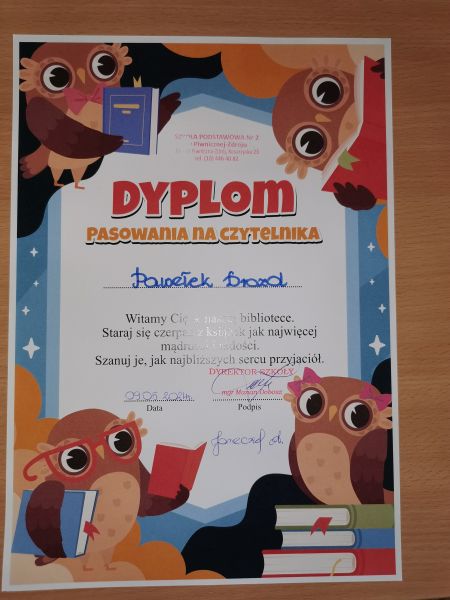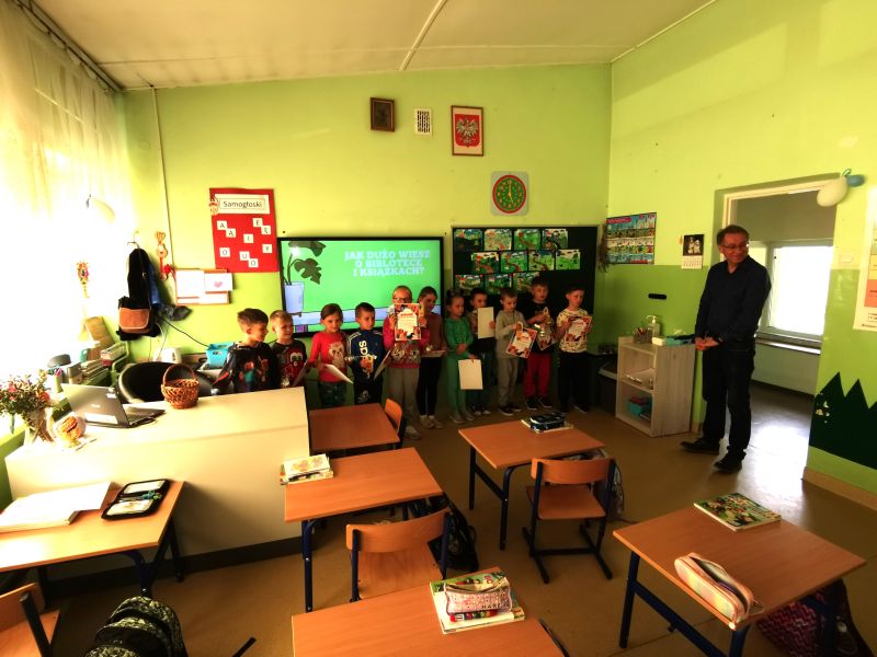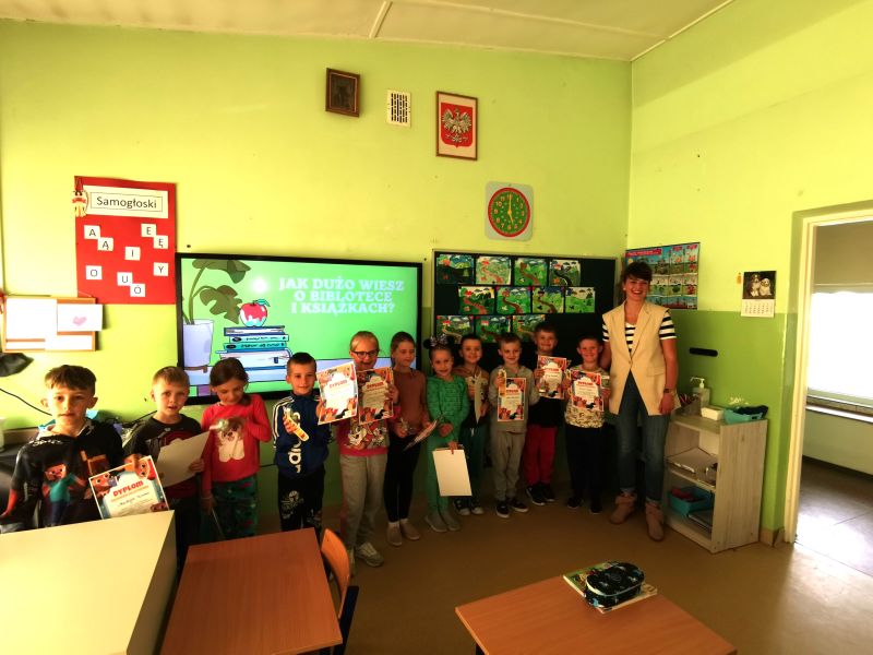Dnia 9.05.2024 r. odbyło się pasowanie na czytelnika dla uczniów klasy I. Wychowawcą klasy jest Pani Miranda Górka.Uroczystość poprzedzona była lekcją biblioteczną. Lekcja ta dotyczyła pracy nauczyciela – bibliotekarza, dokumentów, które regulują pracę biblioteki. Uczniowie zostali również zaznajomieni ze zbiorami bibliotecznymi, dowiedzieli się, jakie informacje posiada karta czytelnika, poznali różnicę między księgarnią a biblioteką.