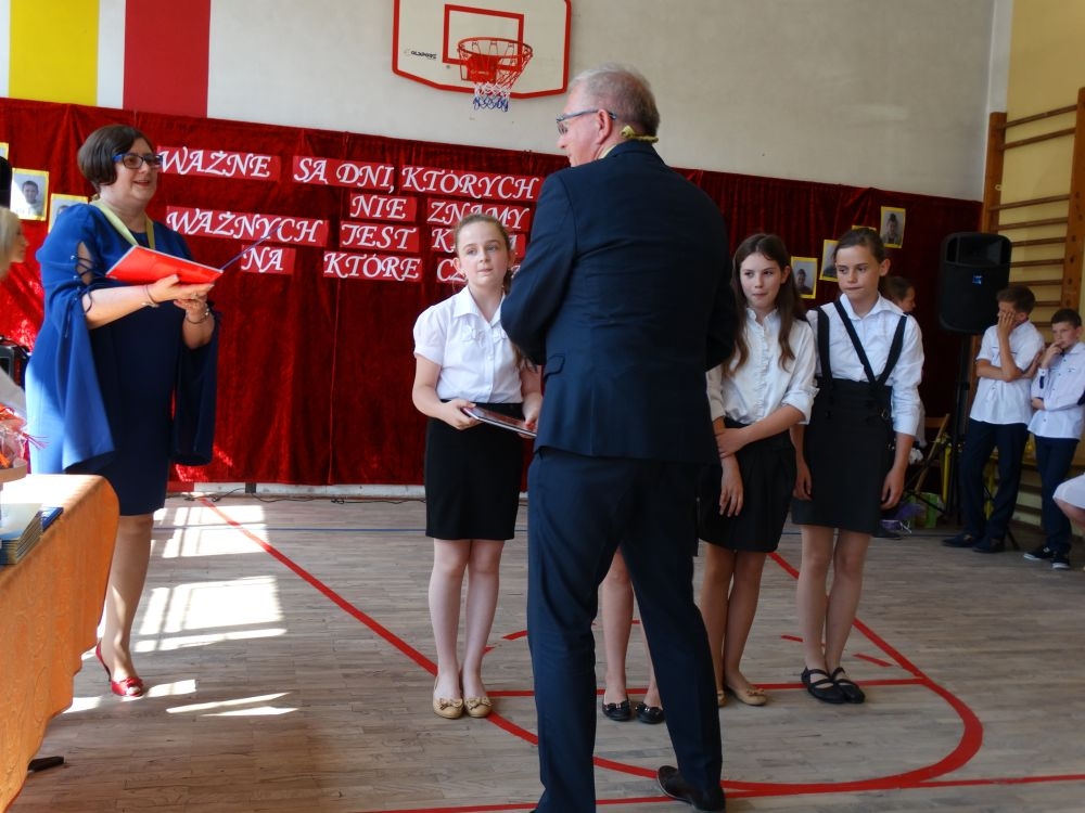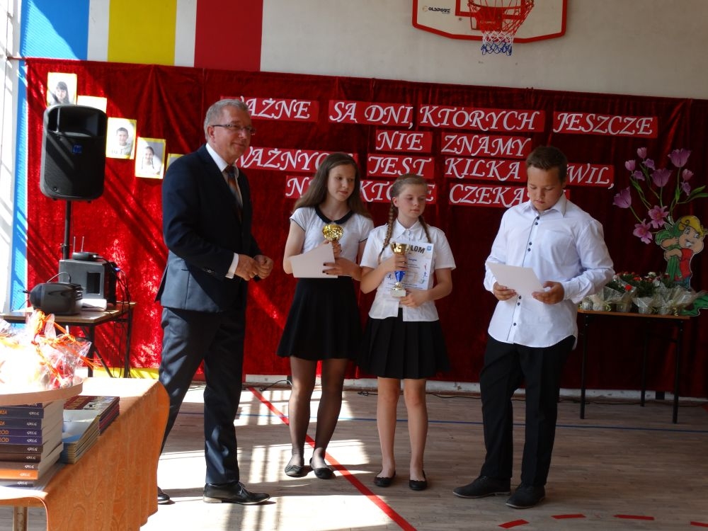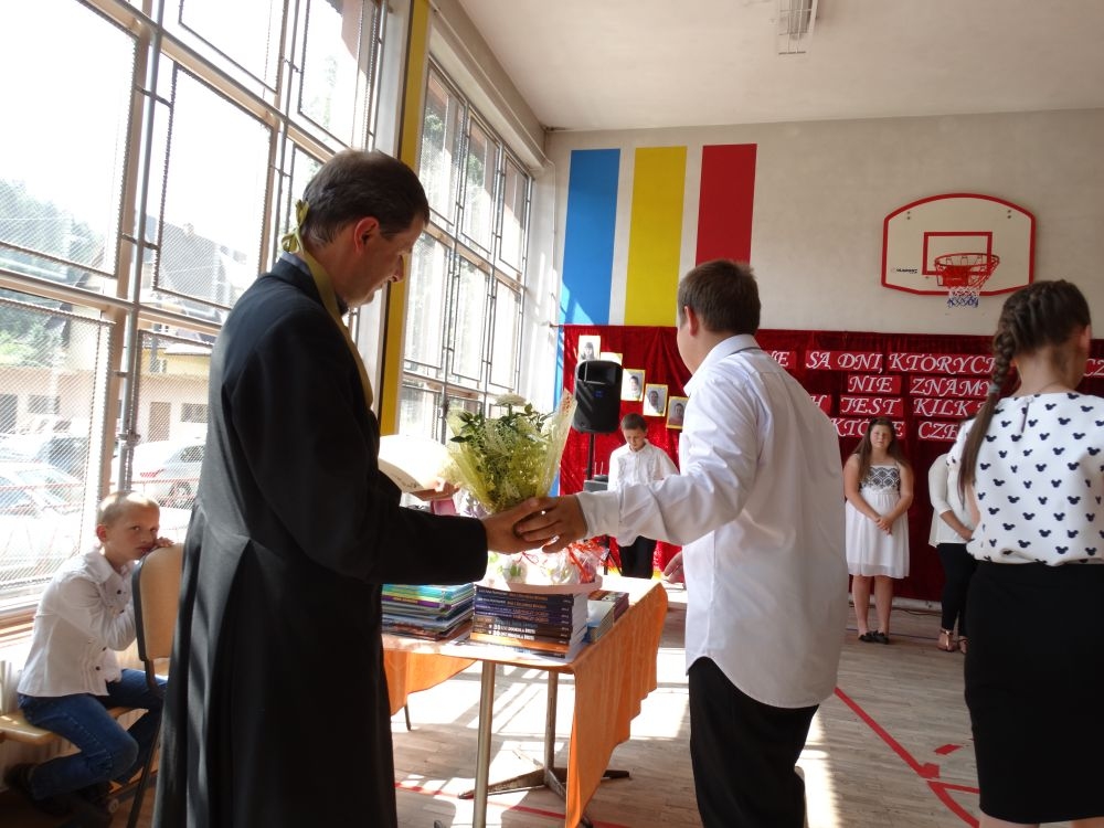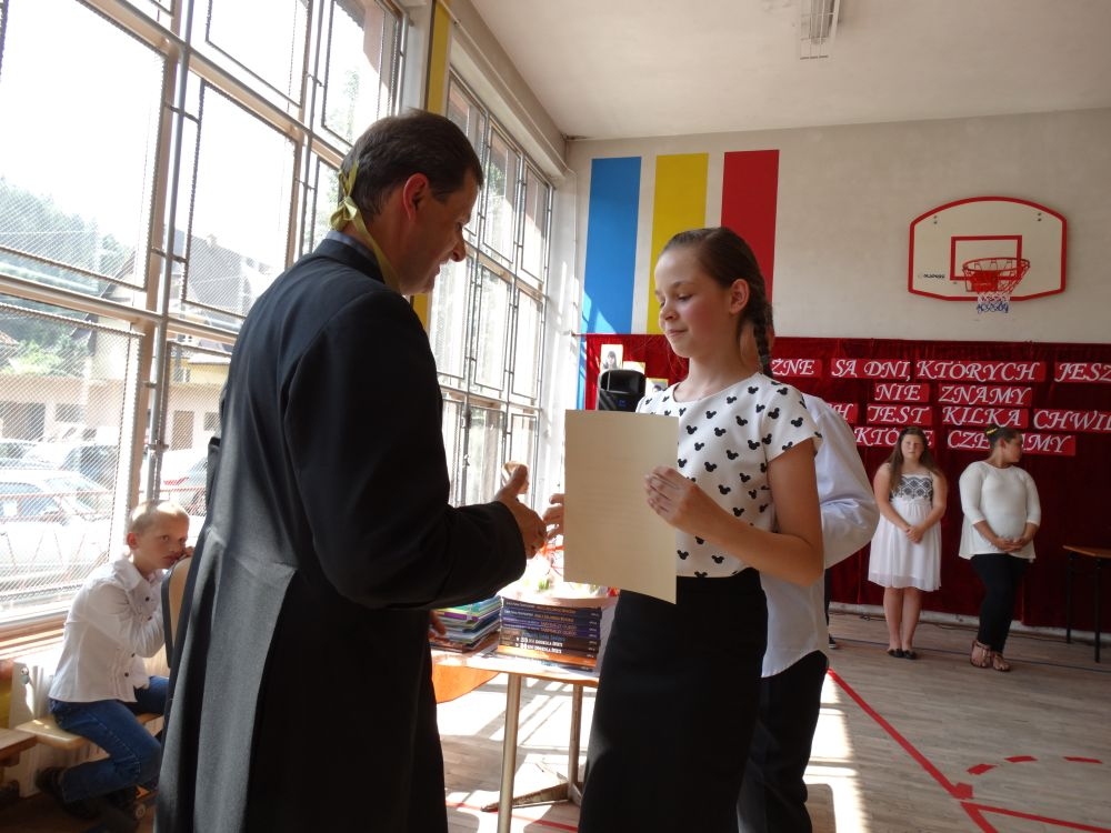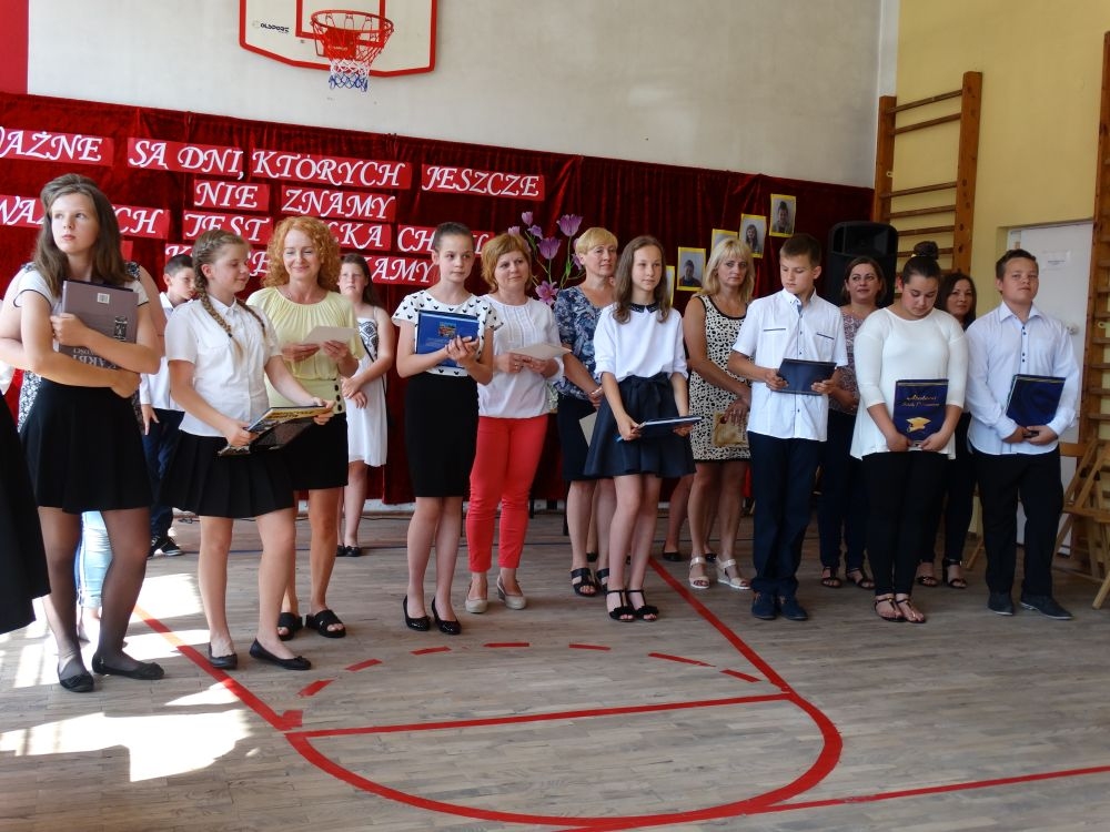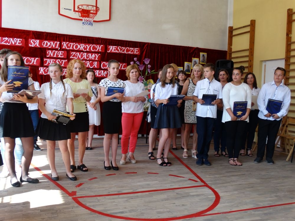 Zakończenie roku szkolnego odbyło się tradycyjnie po wcześniej odbytej mszy świętej, którą sprawował ks. Proboszcz Rafał Poręba. W szkole nastąpiło uroczyste pożegnanie absolwentów klasy VI i przedstawienie programu artystycznego przez nich w którym serdecznie dziękowali wszystkim nauczycielom ,wychowawcom ,pracownikom szkoły. Złożyli także uroczyste ślubowanie ,że godnie będą reprezentować szkołę jak i siebie w kolejnych etapach edukacji. Otrzymali świadectwa z wyróżnieniem i nagrody książkowe oraz indywidualne wyróżnienia za pracę na rzecz szkoły i godne reprezentowanie jej na różnym forum. Wraz z najlepszymi uczniami wystąpili także rodzice którym podziękowano za trud wychowania i za to ,że wspierali swoje dzieci w nauce i wychowaniu. W dalszej części wszyscy uczniowie pozostałych klas także zostali wyróżnieni wraz z rodzicami.Nagrody i świadectwa wręczali wraz z wychowawcami Burmistrz MiG w Piwnicznej Zdroju Zbigniew Janeczek oraz Dyrektor szkoły Marian Dobosz. Na koniec dyrektor szkoły podziękował wszystkim za pracę mijającym w roku szkolnym uczniom, nauczycielom ,pracownikom szkoły , a rodzicom dziękował za współpracę i życzył udanych wakacji.
