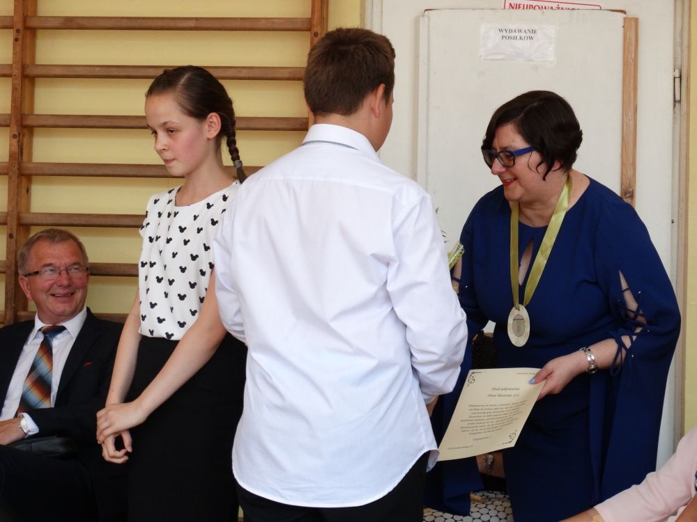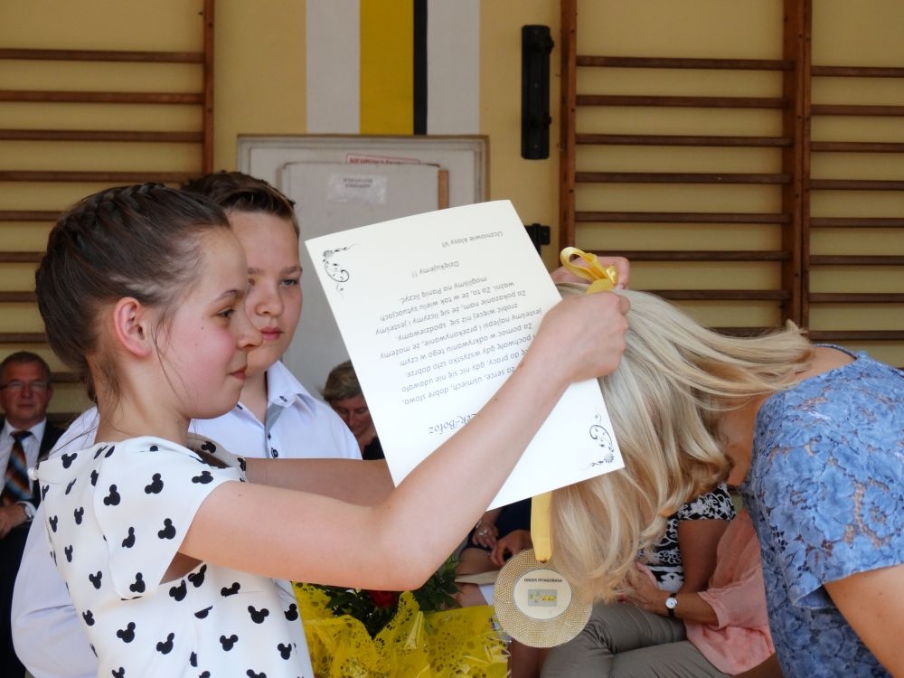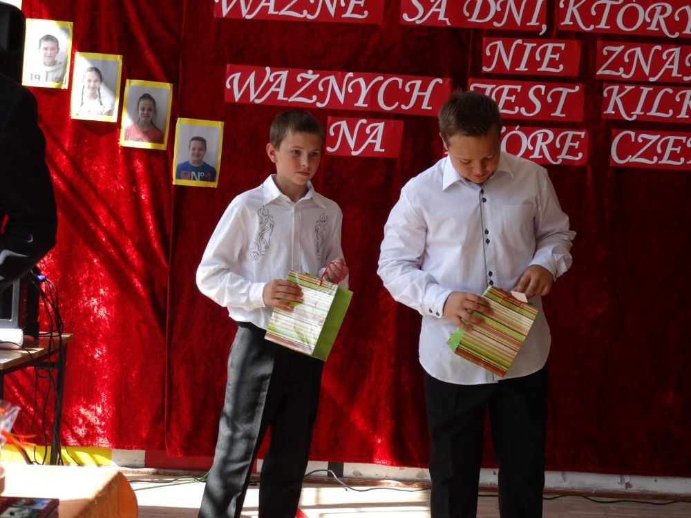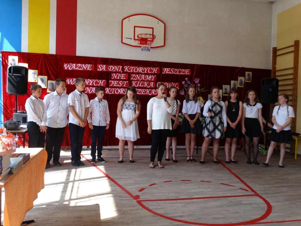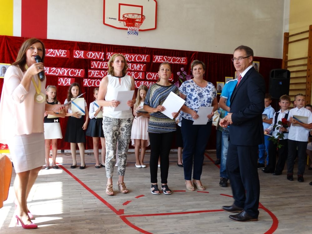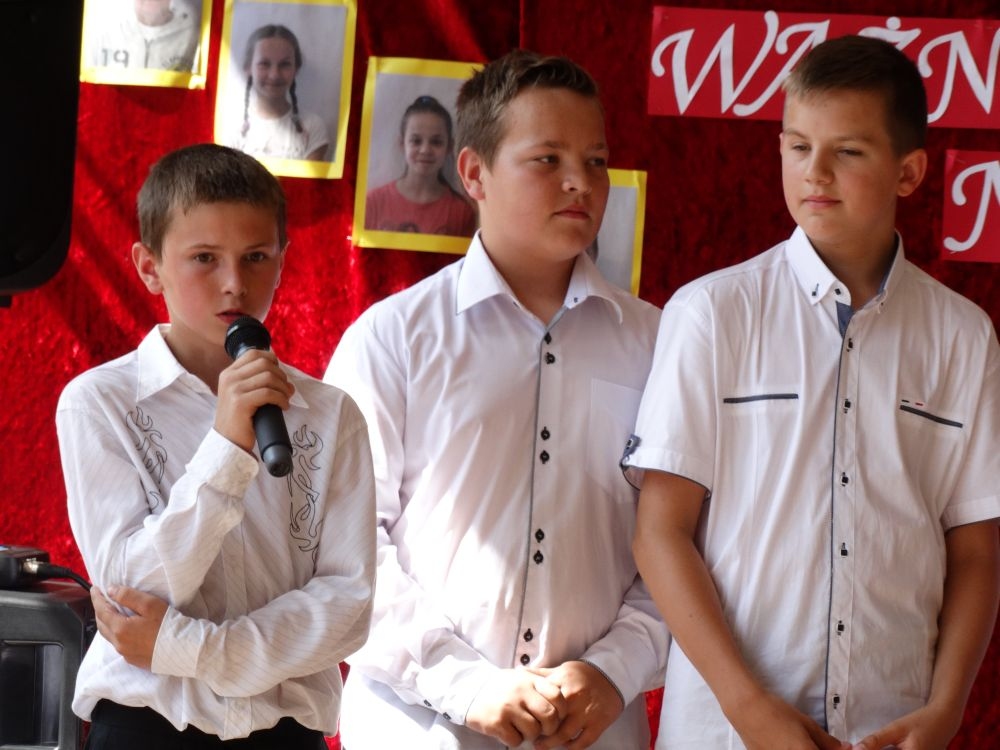 Zakończenie roku szkolnego odbyło się tradycyjnie po wcześniej odbytej mszy świętej, którą sprawował ks. Proboszcz Rafał Poręba. W szkole nastąpiło uroczyste pożegnanie absolwentów klasy VI i przedstawienie programu artystycznego przez nich w którym serdecznie dziękowali wszystkim nauczycielom ,wychowawcom ,pracownikom szkoły. Złożyli także uroczyste ślubowanie ,że godnie będą reprezentować szkołę jak i siebie w kolejnych etapach edukacji. Otrzymali świadectwa z wyróżnieniem i nagrody książkowe oraz indywidualne wyróżnienia za pracę na rzecz szkoły i godne reprezentowanie jej na różnym forum. Wraz z najlepszymi uczniami wystąpili także rodzice którym podziękowano za trud wychowania i za to ,że wspierali swoje dzieci w nauce i wychowaniu. W dalszej części wszyscy uczniowie pozostałych klas także zostali wyróżnieni wraz z rodzicami.Nagrody i świadectwa wręczali wraz z wychowawcami Burmistrz MiG w Piwnicznej Zdroju Zbigniew Janeczek oraz Dyrektor szkoły Marian Dobosz. Na koniec dyrektor szkoły podziękował wszystkim za pracę mijającym w roku szkolnym uczniom, nauczycielom ,pracownikom szkoły , a rodzicom dziękował za współpracę i życzył udanych wakacji.