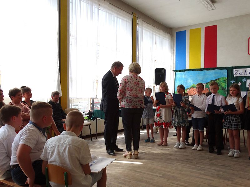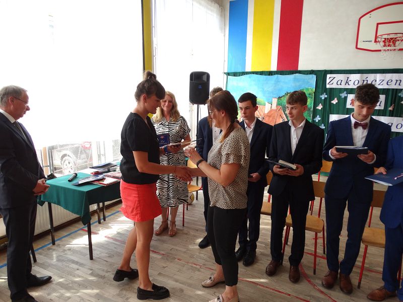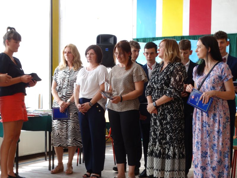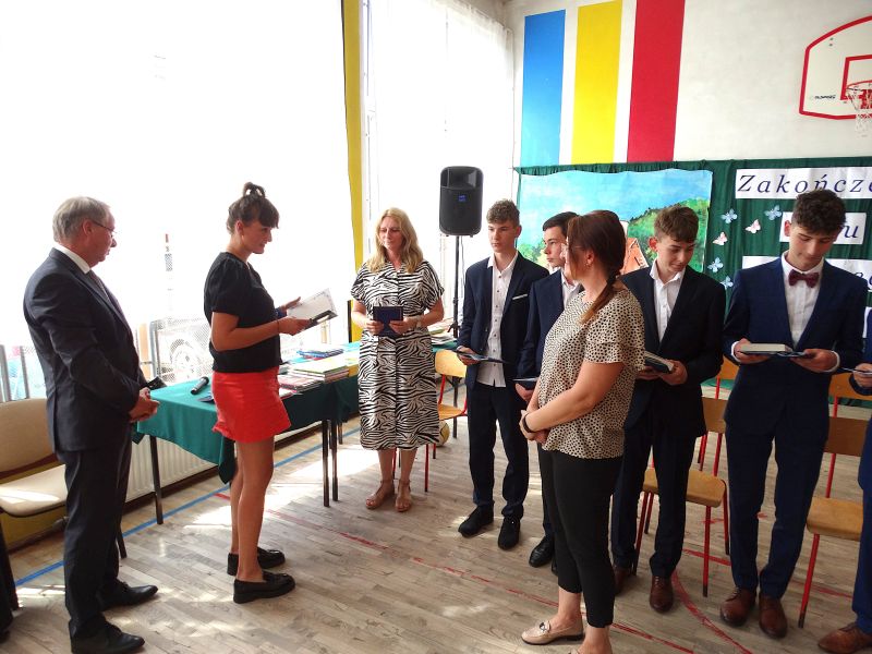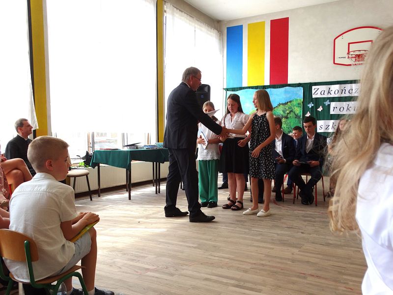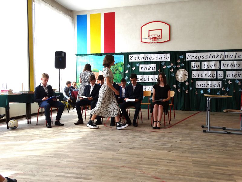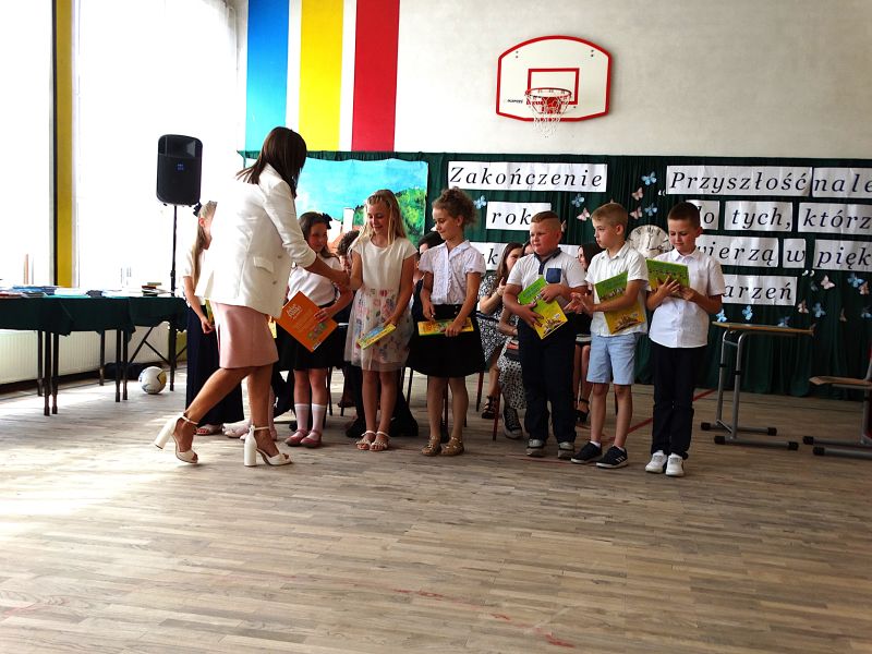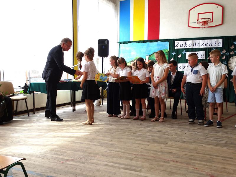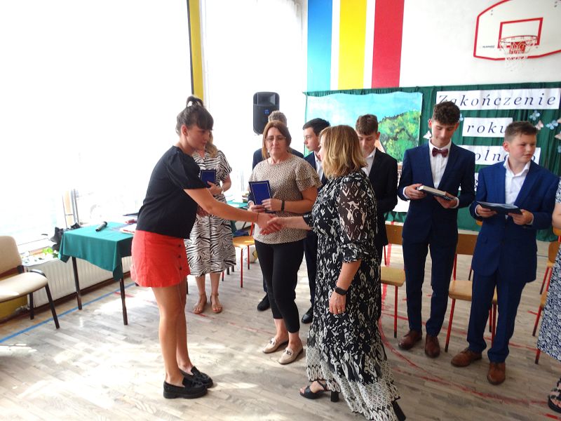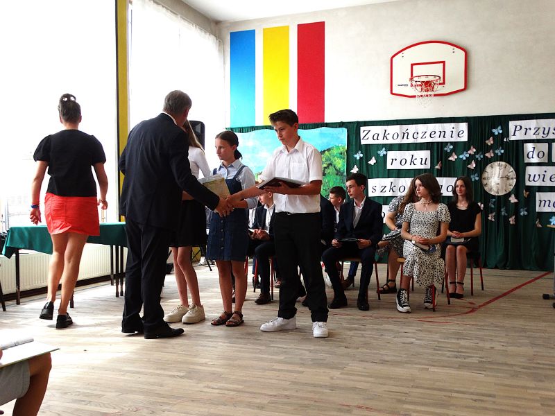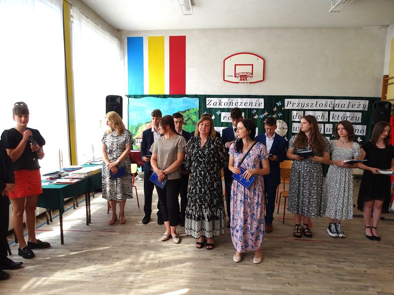 W dniu 21.06.2024r. odbyło się uroczyste zakończenie roku szkolnego 2023/2024. Uroczystość rozpoczęła się od wprowadzenia sztandaru i odśpiewania hymnu. Następnie absolwenci klasy VIII złożyli uroczyste ślubowanie, po którym głos zabrał Pan Dyrektor – Marian Dobosz, nawiązując przede wszystkim do uczniów klasy VIII, przebiegu ich szkolnej kariery. Następnie tegoroczni absolwenci zaprezentowali krótki program artystyczny, po którym nadszedł moment uroczystego wręczenia świadectw i dyplomów absolwentom, listów gratulacyjnych Rodzicom wyróżnionych uczniów, a także specjalnych podziękowań za współpracę. Na zakończenie wychowawca klasy, Pani Anna Janeczek, w krótkiej przemowie podsumowała lata pracy wychowawczej oraz współpracy z Rodzicami.