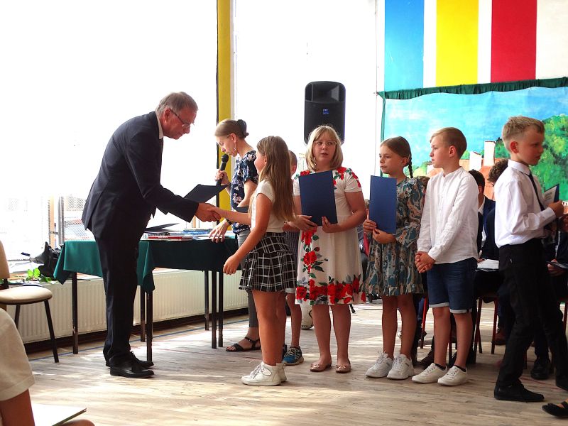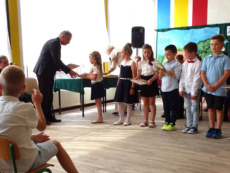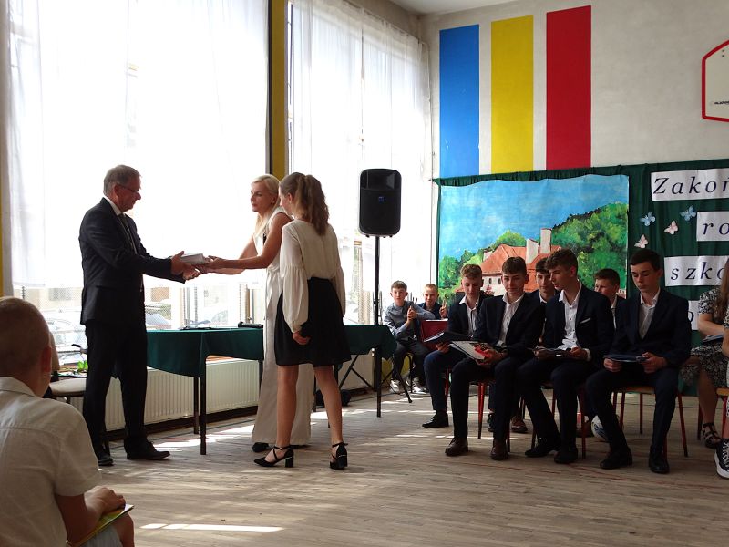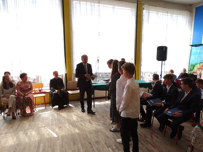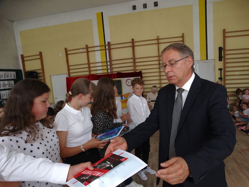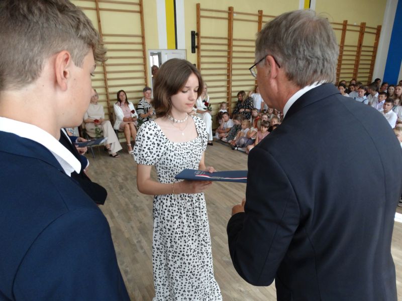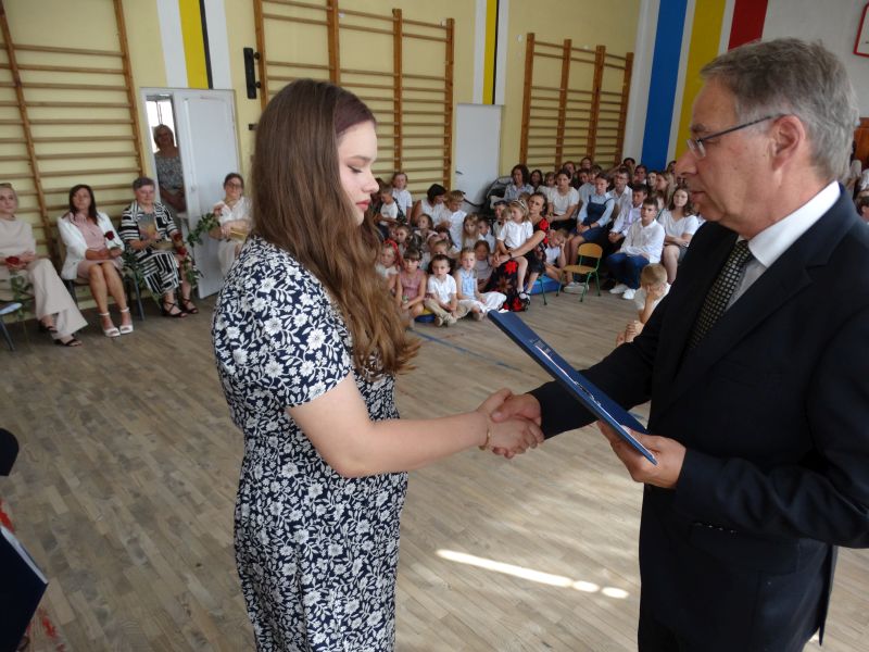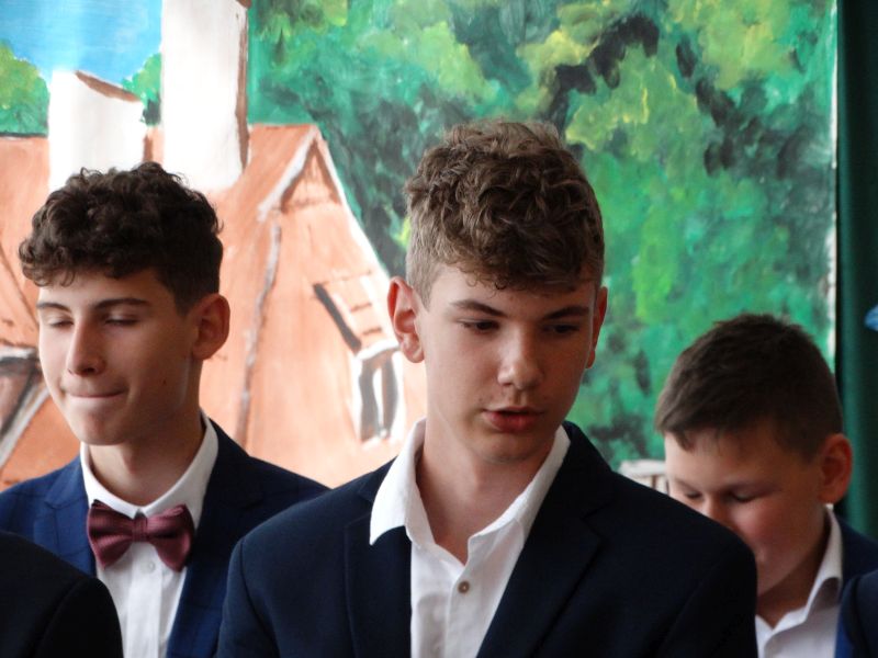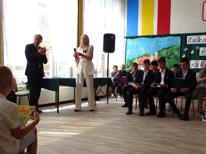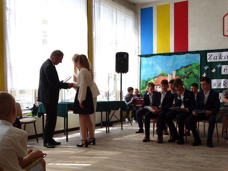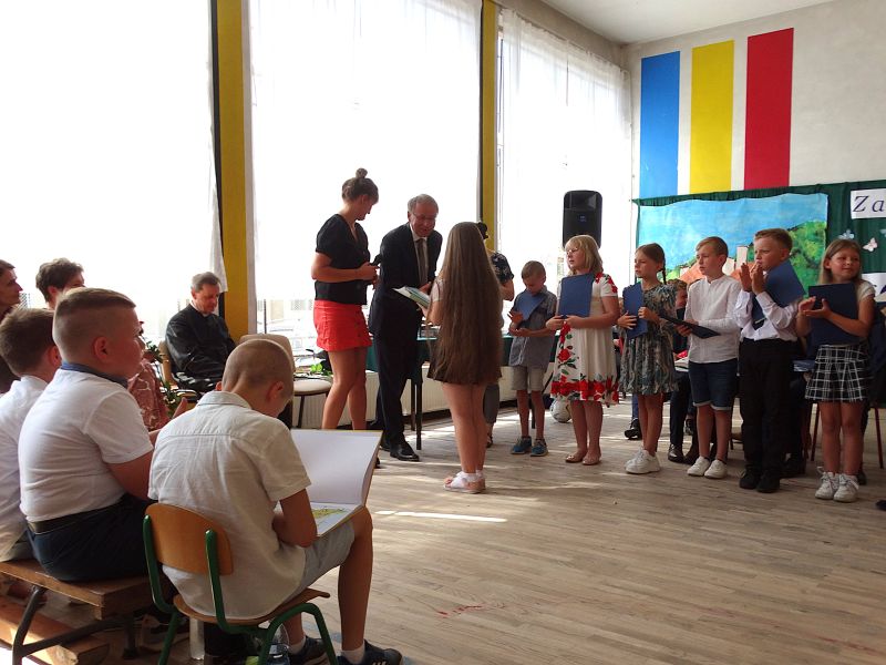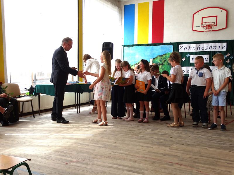 W dniu 21.06.2024r. odbyło się uroczyste zakończenie roku szkolnego 2023/2024. Uroczystość rozpoczęła się od wprowadzenia sztandaru i odśpiewania hymnu. Następnie absolwenci klasy VIII złożyli uroczyste ślubowanie, po którym głos zabrał Pan Dyrektor – Marian Dobosz, nawiązując przede wszystkim do uczniów klasy VIII, przebiegu ich szkolnej kariery. Następnie tegoroczni absolwenci zaprezentowali krótki program artystyczny, po którym nadszedł moment uroczystego wręczenia świadectw i dyplomów absolwentom, listów gratulacyjnych Rodzicom wyróżnionych uczniów, a także specjalnych podziękowań za współpracę. Na zakończenie wychowawca klasy, Pani Anna Janeczek, w krótkiej przemowie podsumowała lata pracy wychowawczej oraz współpracy z Rodzicami.