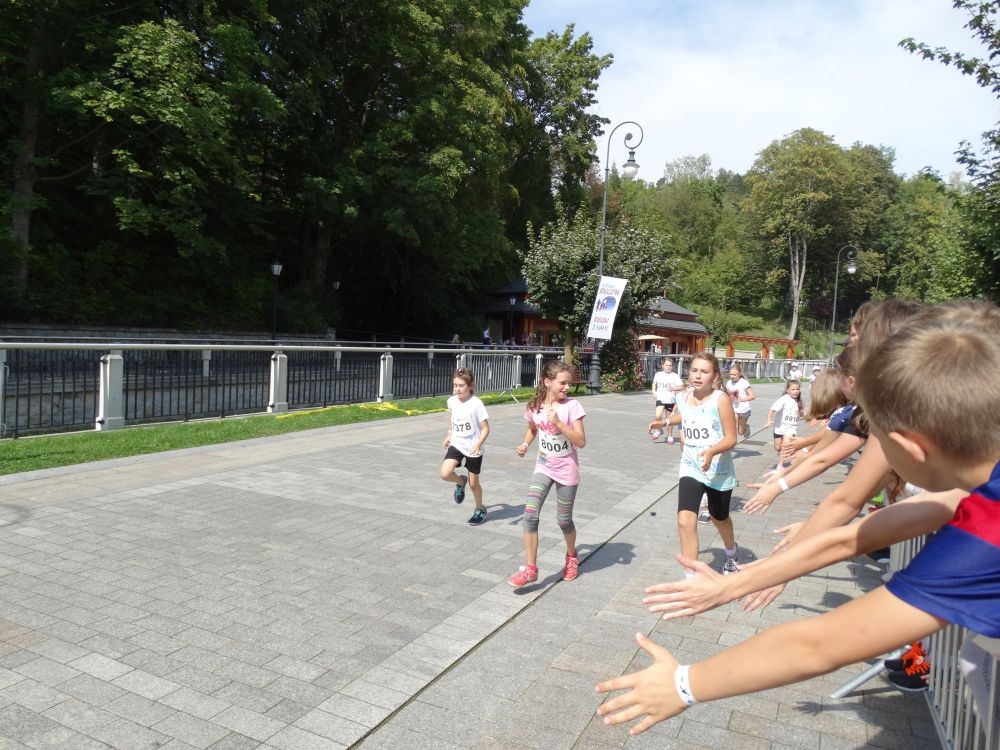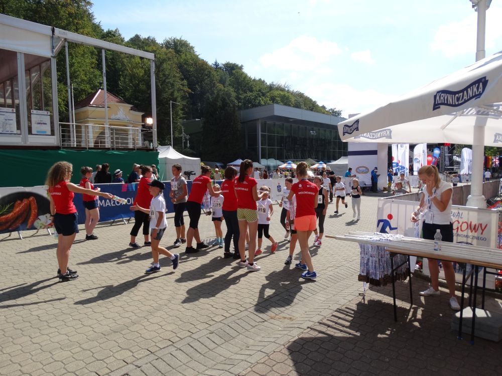 W dniach 9 – 11 września 2016 roku w Krynicy – Zdroju odbył się 7. PKO Festiwal Biegowy. Ambasadorem tej imprezy jest nasz pan dyrektor Marian Dobosz, który corocznie bierze czynny udział w jej organizację. W ramach tego wydarzenia odbył się Bieg Małopolski. Do rywalizacji przystąpiła rekordowa liczba młodych biegaczy z małopolskich szkół. Jak co roku uczestniczyła w nim liczna reprezentacja naszej szkoły. Byli to uczniowie z klas IV - VI. Do ścisłego finału zawodów zakwalifikowała się uczennica VI klasy Julia Gumulak. Nowością, w tym roku był przygotowany przez organizatora konkurs zespołowy „Aktywna Małopolska” w ramach, którego czworo uczniów: Konrad Fabiś z klasy V, Julia Gumulak, Wiktoria Kulig, Artur Broniszewski z klasy VI wzięło udział w sześcioboju, na który składały się: przeciąganie liny, skoki przez skakankę, kręcenie hula – hop, trafianie rzutkami do tarczy, wykonywanie pompek, bieg sztafetowy. Młodzież pod opieką swych wychowawczyń miło spędziła czas w Strefie Dzieci. Uczniowie brali udział w rozgrywkach planszowych. Poznawali świat robotów. Zawarli znajomości z innymi uczestnikami zawodów. Sił do sportowej walki wszystkich uczniów dodały: pożywny posiłek, słodkie co nieco i oczywiście pyszne lody od sponsora Festiwalu – firmy „Koral”. Dzieci miały też możliwość obejrzenia licznych występów artystycznych swych młodszych i starszych koleżanek i kolegów, które odbywały się na głównej scenie na krynickim deptaku. Dla wszystkich – zarówno uczniów jak i ich wychowawczyń – był to miło spędzony czas, zwłaszcza, że dopisała wrześniowa pogoda. Słońce dodawało energii oraz zapału do sportowej rywalizacji, a lody smakowały wyjątkowo w ten upalny dzień. Pełni wrażeń uczniowie szykują się już do kolejnej sportowej walki za rok w Krynicy - Zdroju.