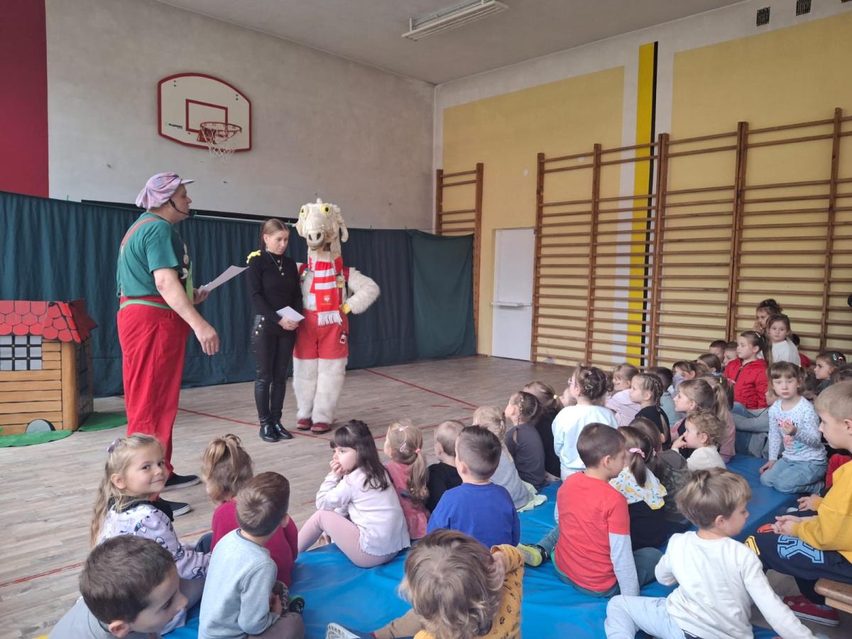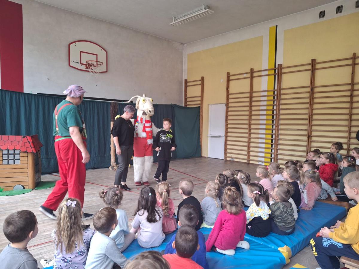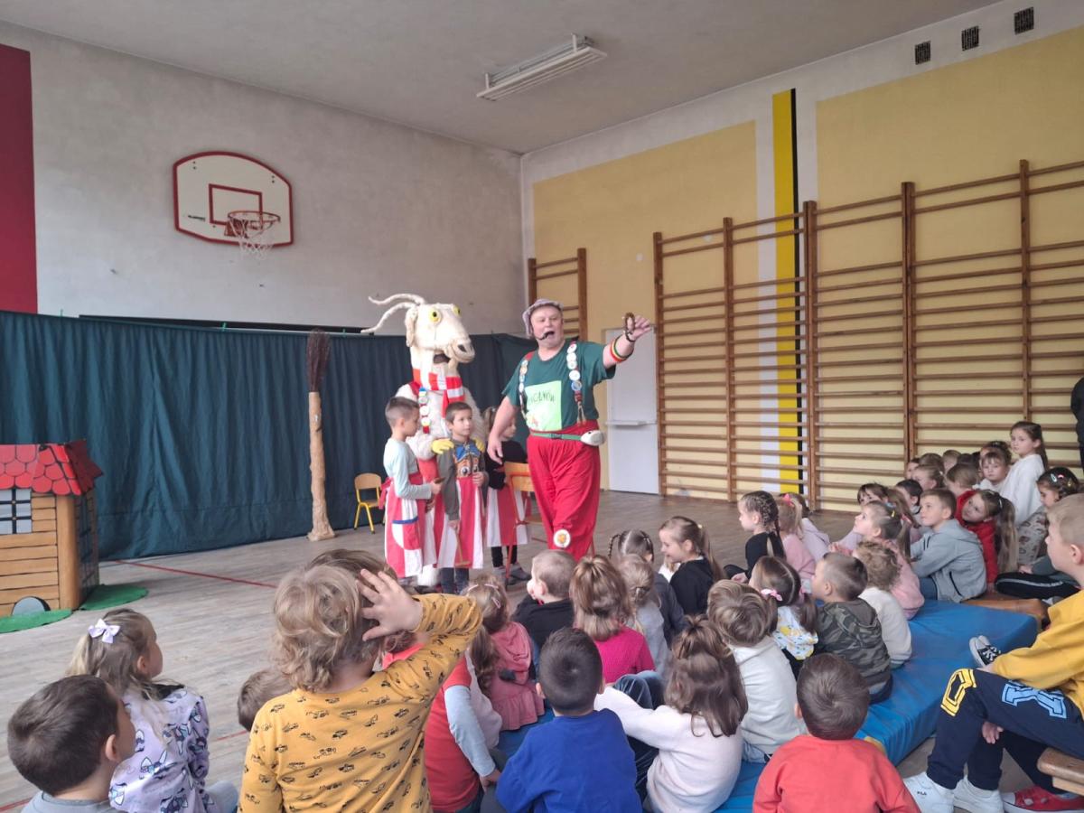 Dnia 30.10.2024r. naszą szkołę odwiedził Koziołek Matołek, a dokładniej Agencja Artystyczna „Artconcept” z Radomia. Dzieci z Oddziału Przedszkolnego grupa młodsza