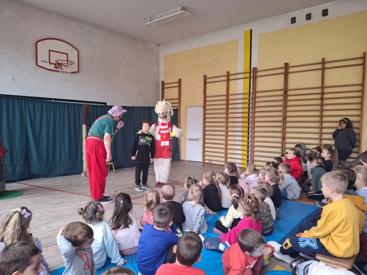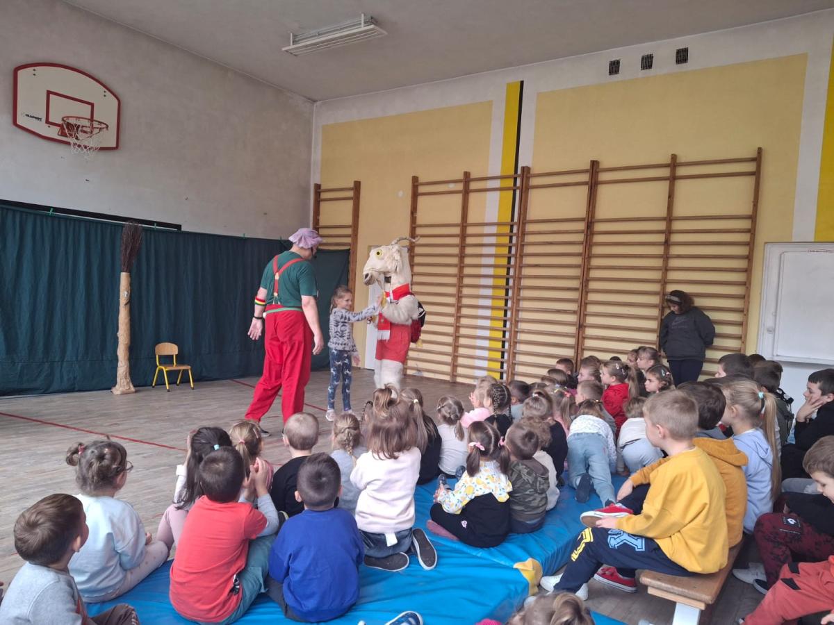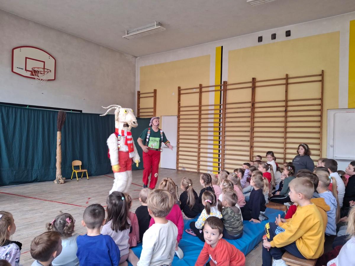 Dnia 30.10.2024r. naszą szkołę odwiedził Koziołek Matołek, a dokładniej Agencja Artystyczna „Artconcept” z Radomia. Dzieci z Oddziału Przedszkolnego grupa młodsza