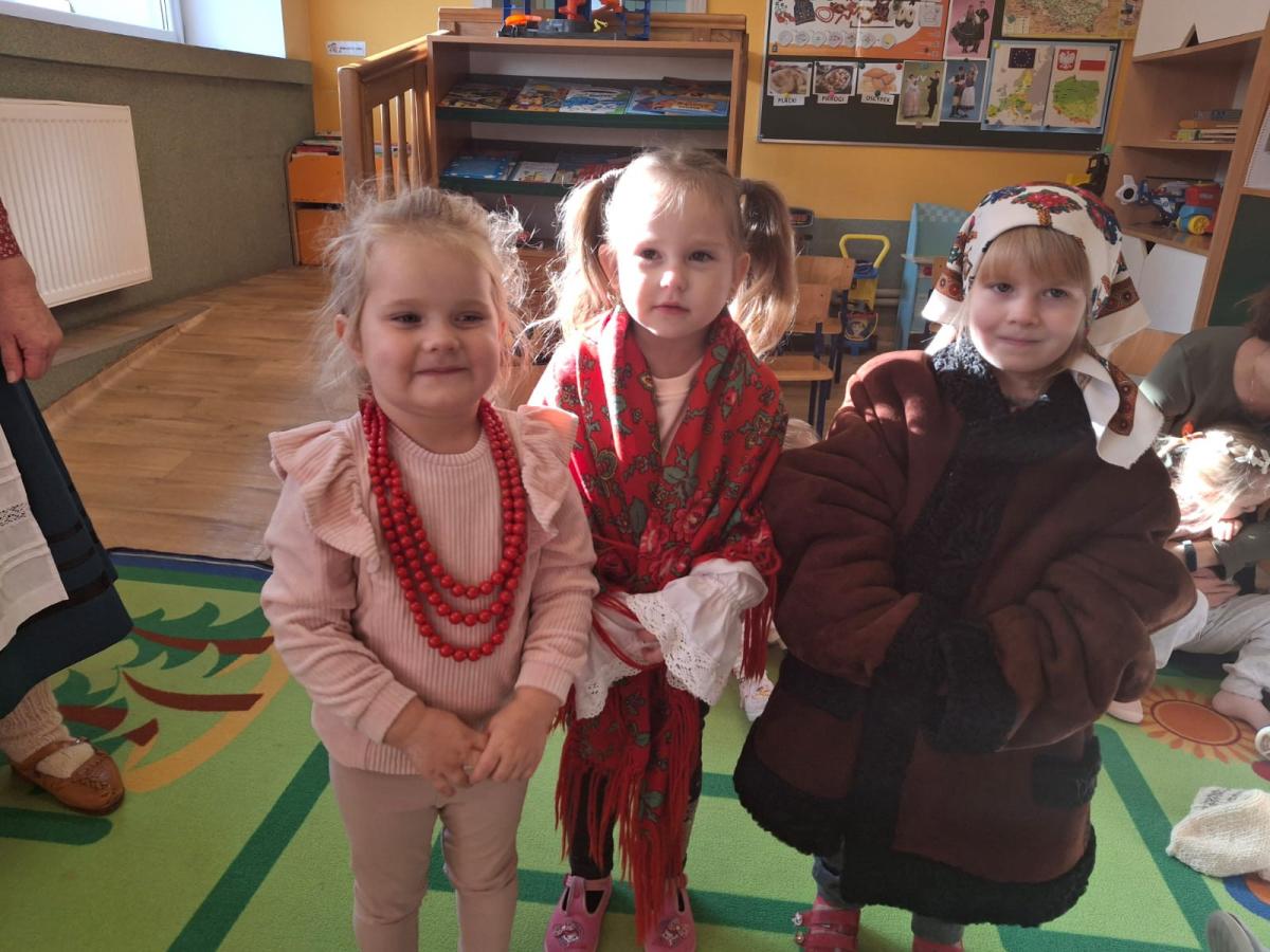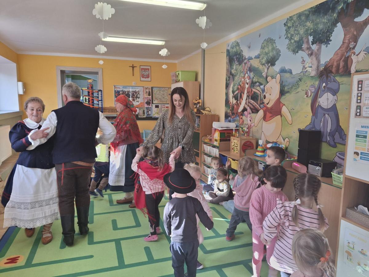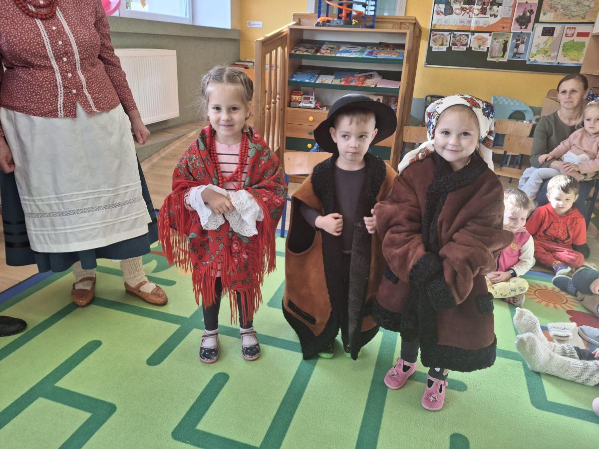 Dnia 07.11.2024 r. przedszkolaki z Oddziału Przedszkolnego miały zaszczyt gościć członków zespołu regionalnego „Dolina Popradu”. W tym dniu w naszym przedszkolu zjawili się pani Helena i Stanisław Źrałka oraz pani Maria Malik. Członkowie zespołu omówili