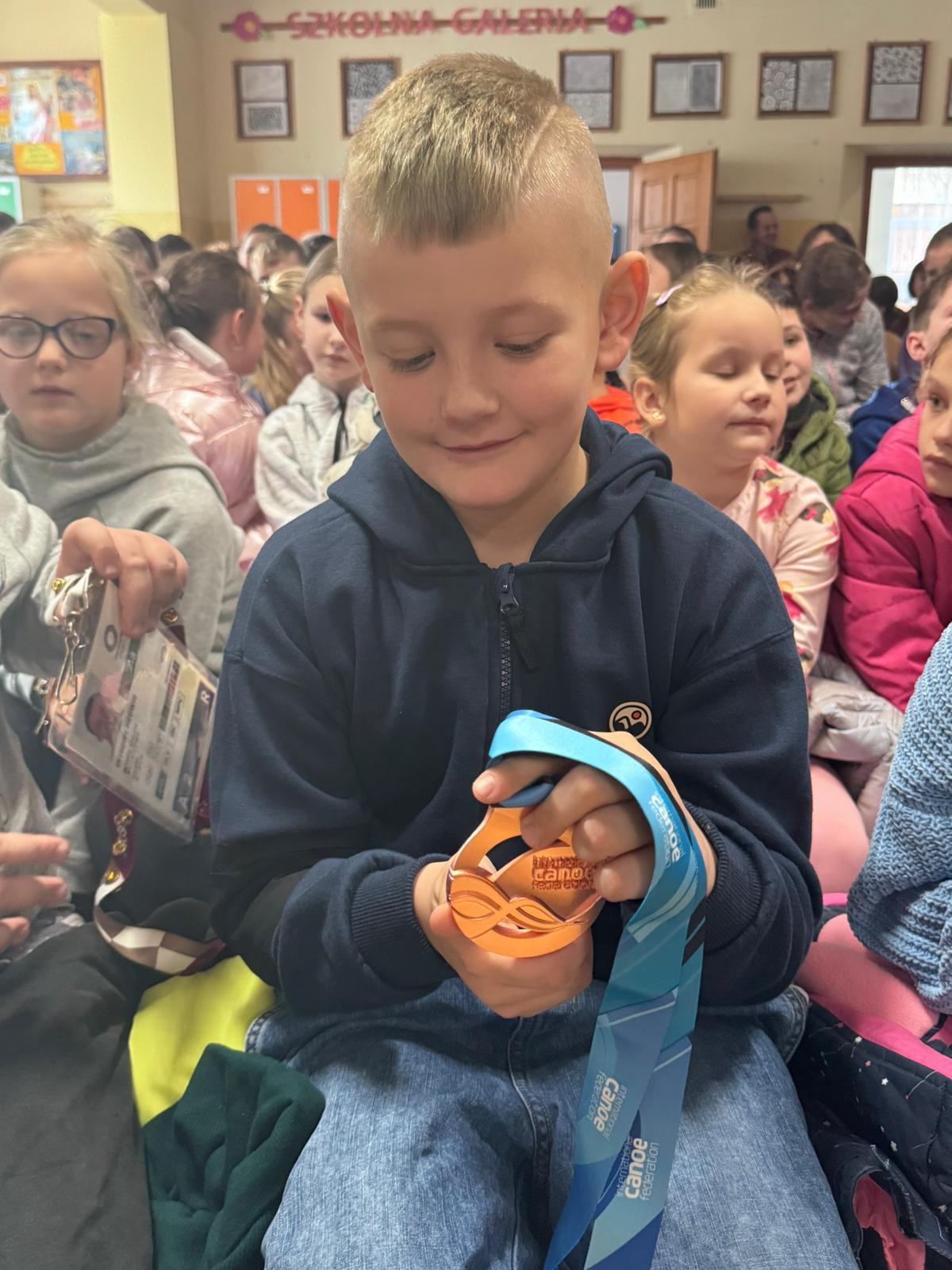 Po zaprezentowaniu filmu z internetu przez dyr.szk., który obrazował przejazd na torze kajakowym naszej vicemistrzyni przedstawiono kolejny fragment filmu w którym zawodniczka informuje, że swój srebrny medal przekazuje na aukcję charytatywną.Pieniądze wesprą Polskie Towarzystwo Walki z Mukowiscydozą.
