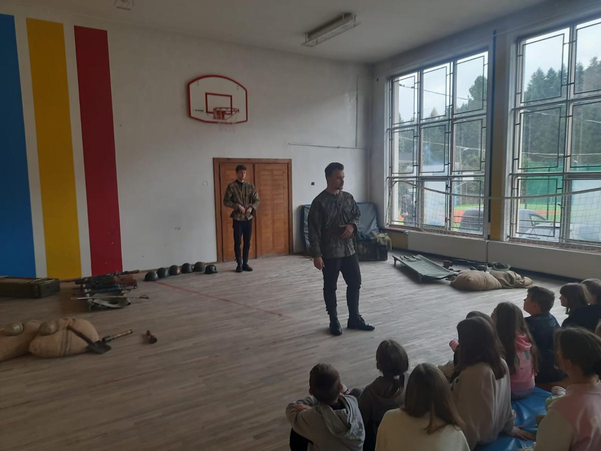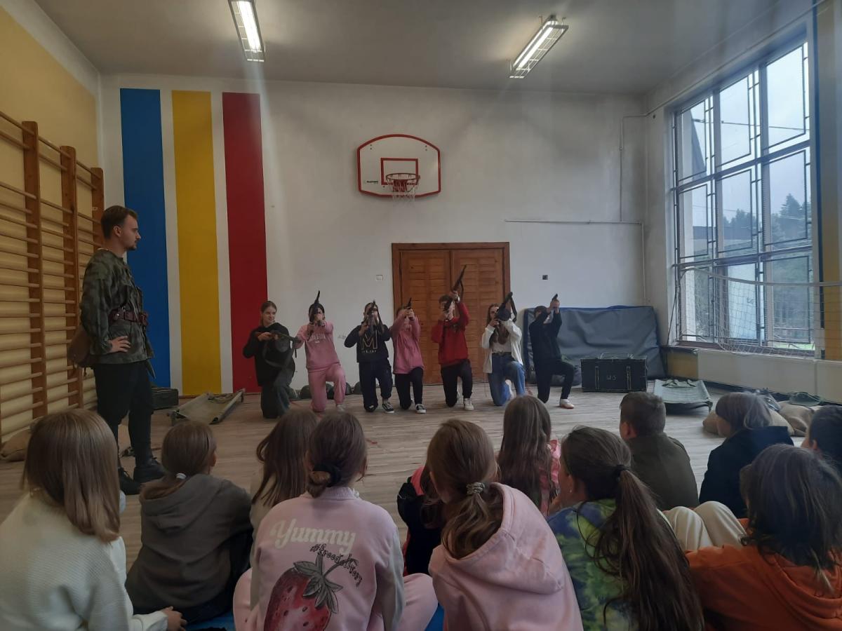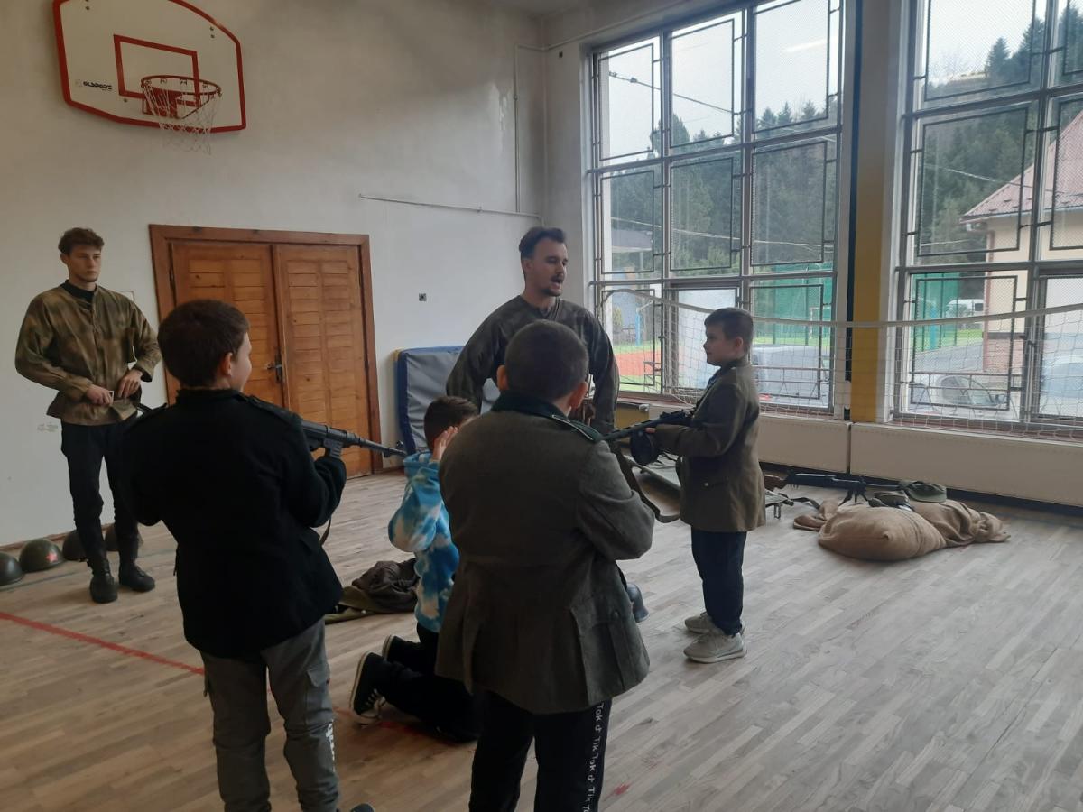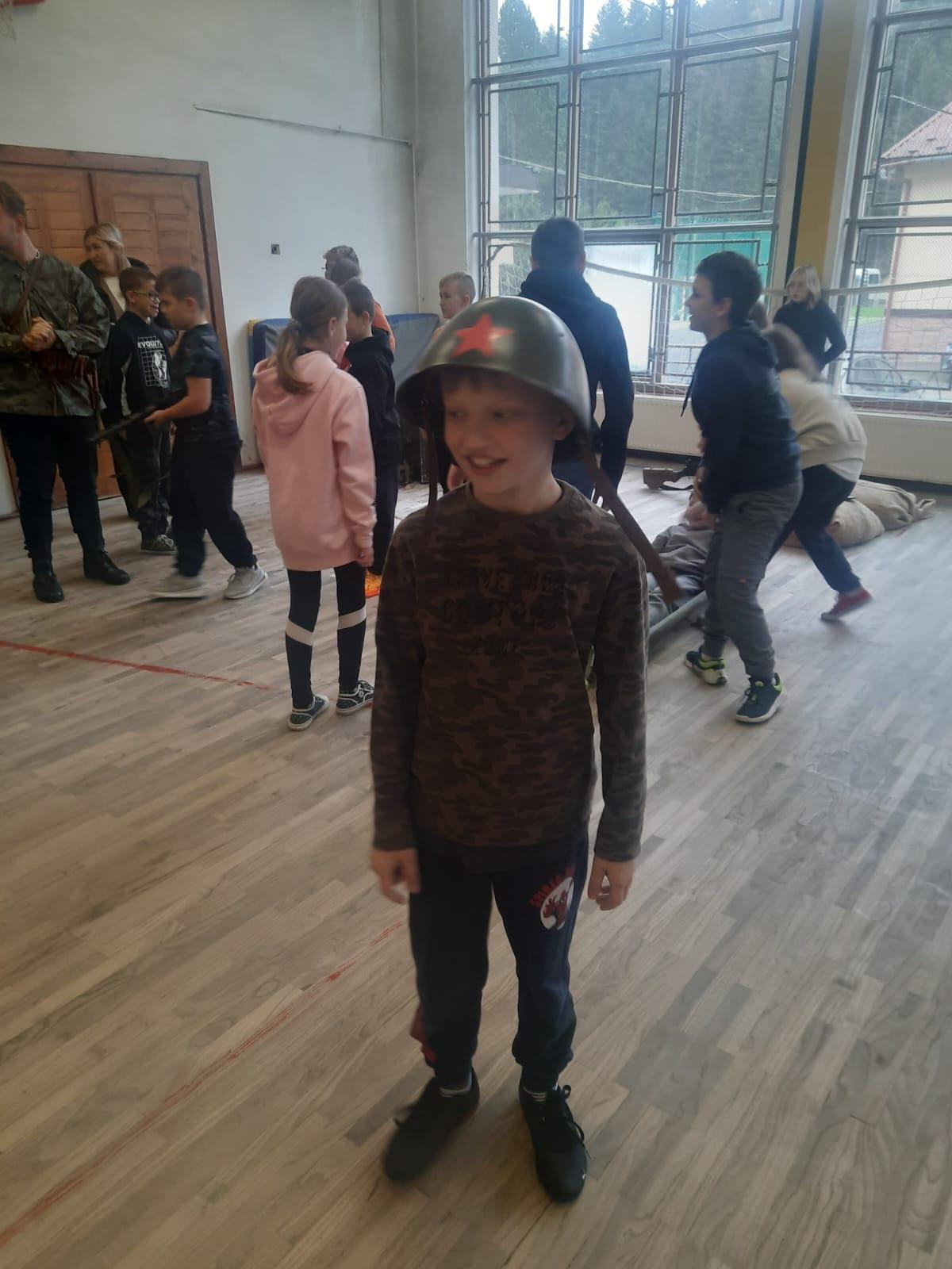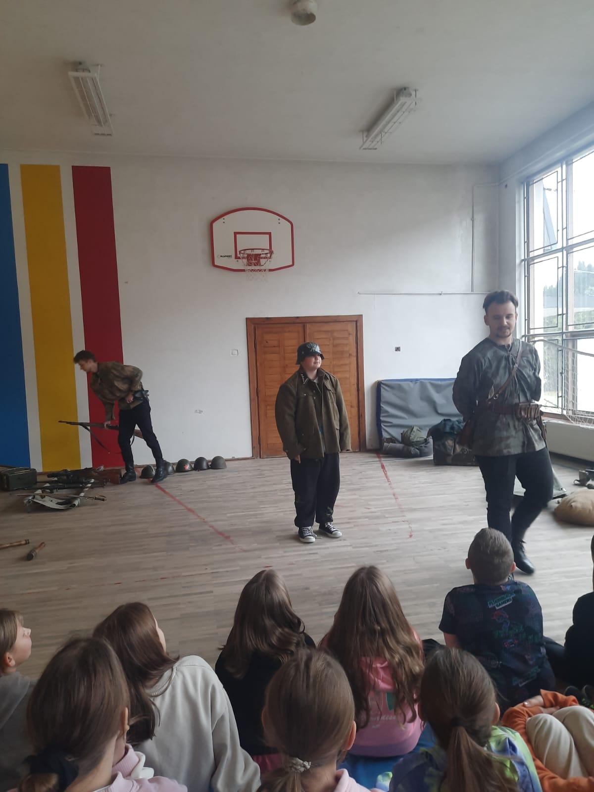 W dniu 15.11.2024r. uczniowie klas IV – VIII wzięli udział w pokazie rekonstrukcyjnym, który dotyczył II wojny światowej, a w szczególności powstania warszawskiego. Spotkanie było podzielony na część wykładową, a także demonstracyjną. Uczniowie mieli okazję zakładać mundury wojskowe, stroje sanitariuszy, a także zobaczyć z bliższa i dotknąć sprzętu wojskowego. Brali udział również w mini grze terenowej, a także w symulacjach zachowań w przypadku wybuchu bomby, reanimacji poszkodowanego w wyniku działań wojennych.