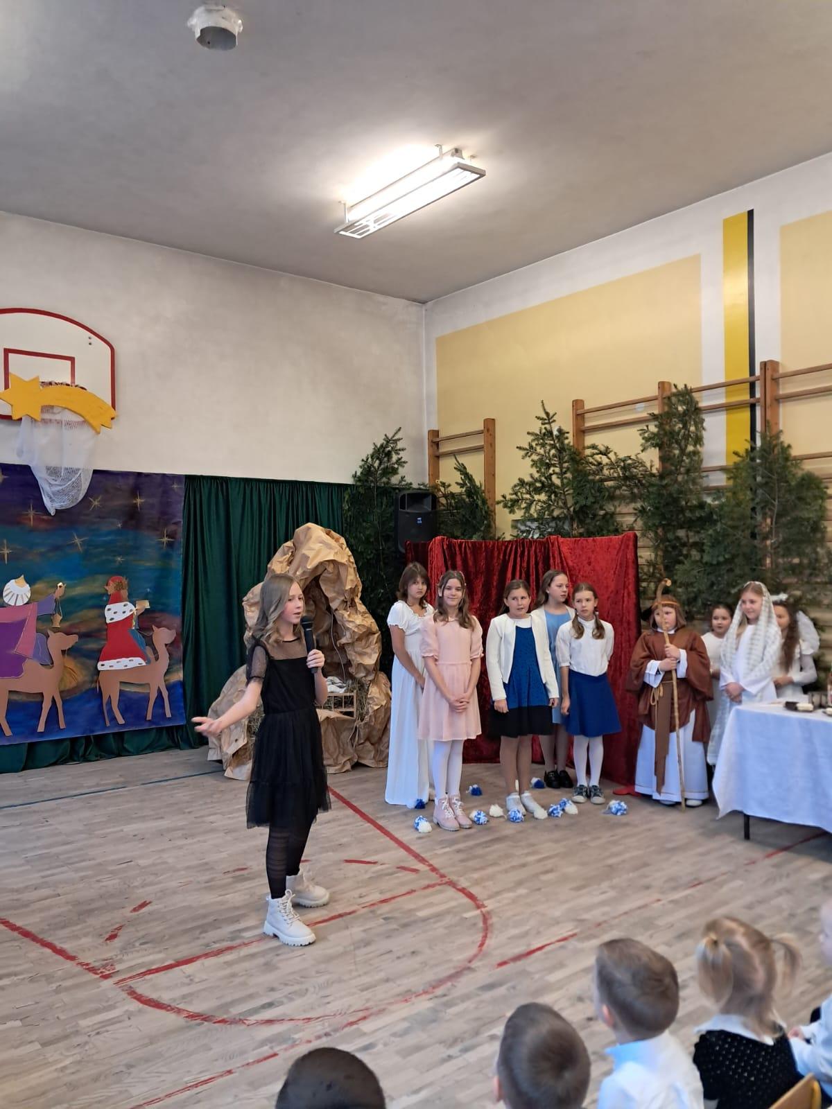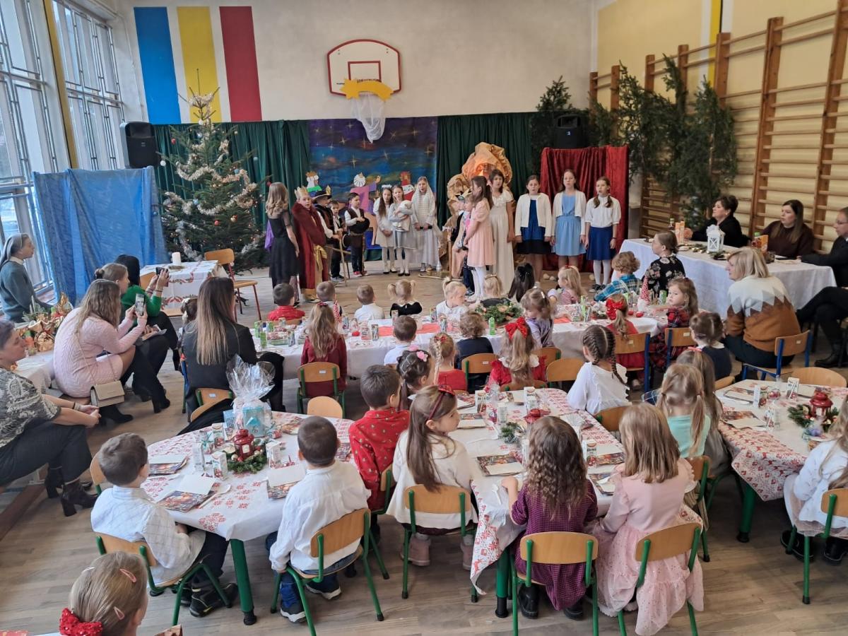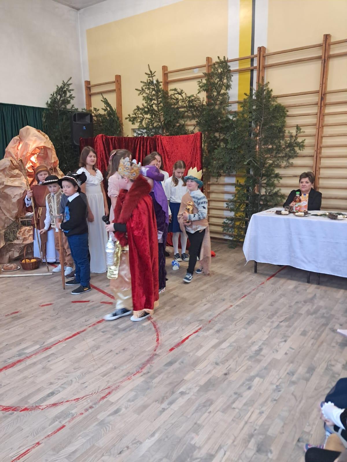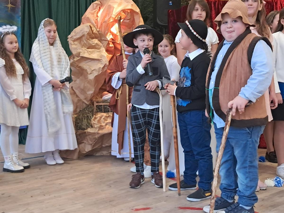 Wraz ze zbliżającymi się Świętami Bożego Narodzenia nasza szkoła wypełniła się atmosferą radości, wzajemnej życzliwości i świątecznego nastroju. W ostatnim tygodniu przed przerwą świąteczną odbyło się tradycyjne spotkanie wigilijne, podczas którego uczniowie, nauczyciele i pracownicy szkoły wspólnie celebrowali ten wyjątkowy czas. Tegoroczne jasełka przygotowane przez siostrę Agnieszkę oraz uczniów naszej szkoły zachwyciły wszystkich zgromadzonych. Sala gimnastyczna, na co dzień pełna sportowych emocji, zamieniła się w miejsce przypominające betlejemską stajenkę. Scenografia, piękne kostiumy i wzruszająca gra aktorska wprowadziły widzów w świąteczny nastrój. Uczniowie wcielili się w rolę Maryi, Józefa, pasterzy, trzech króli oraz aniołów, opowiadając historię narodzenia Jezusa w sposób wzruszający. Po przedstawieniu zgodnie z polską tradycją, wszyscy podzielili się opłatkiem, składając sobie nawzajem życzenia pełne ciepła i nadziei. Po czym wszyscy zebrani zasiedli do wspólnej wigilii. Stoły zostały pięknie udekorowane, a na nich pojawiły się tradycyjny barszcz z uszkami oraz ciasta przygotowane przez Radę Rodziców. To chwile, które łączą całą społeczność szkolną – zarówno uczniów, jak i dorosłych. Podczas wigilii nie zabrakło rozmów, uśmiechów i wspólnego świętowania, co podkreśliło, jak ważna jest wzajemna życzliwość i bliskość w tym wyjątkowym okresie. Kulminacyjnym punktem spotkania było wspólne kolędowanie. Sala gimnastyczna wypełniła się dźwiękami najpiękniejszych polskich kolęd. „Dzisiaj w Betlejem”, „Wśród nocnej ciszy” czy „Bóg się rodzi” śpiewali wszyscy – zarówno uczniowie, jak i nauczyciele oraz rodzice. Ten moment pokazał, jak wielką moc ma muzyka i tradycja, która jednoczy ludzi niezależnie od wieku. Dzień szkolnej wigilii, jasełek i kolędowania to jedno z najpiękniejszych wydarzeń w roku szkolnym. To czas, kiedy cała społeczność szkolna jednoczy się we wspólnym świętowaniu, przypominając sobie, jak ważne są wzajemny szacunek, dobro i miłość. Dzięki takim chwilom każdy może na chwilę zwolnić, poczuć magię świąt i docenić obecność innych. Niech duch wspólnoty i radości, który towarzyszył temu wydarzeniu, pozostanie z nami na cały nadchodzący nowy rok.