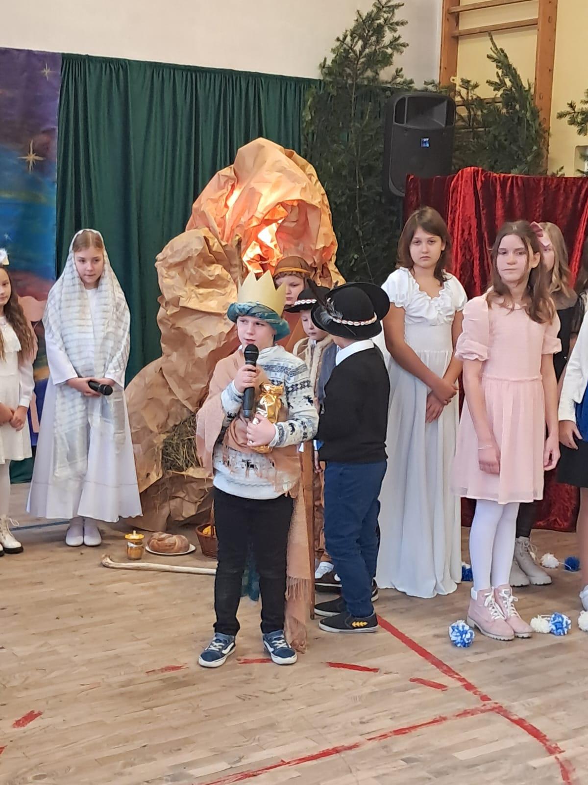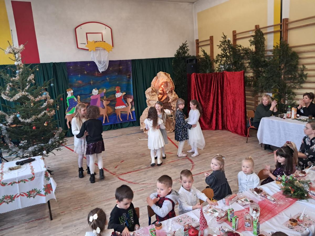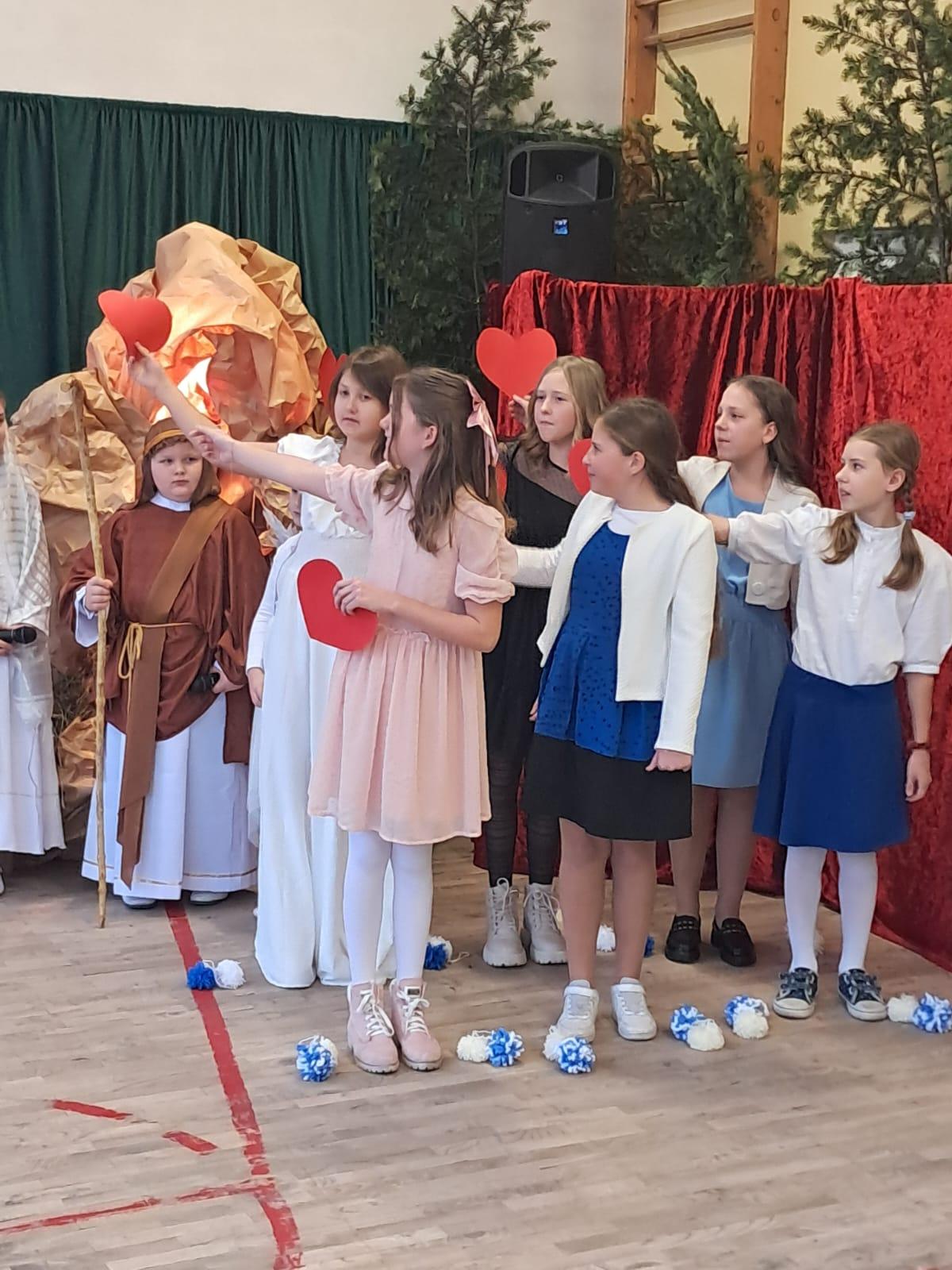 Wraz ze zbliżającymi się Świętami Bożego Narodzenia nasza szkoła wypełniła się atmosferą radości, wzajemnej życzliwości i świątecznego nastroju. W ostatnim tygodniu przed przerwą świąteczną odbyło się tradycyjne spotkanie wigilijne, podczas którego uczniowie, nauczyciele i pracownicy szkoły wspólnie celebrowali ten wyjątkowy czas. Tegoroczne jasełka przygotowane przez siostrę Agnieszkę oraz uczniów naszej szkoły zachwyciły wszystkich zgromadzonych. Sala gimnastyczna, na co dzień pełna sportowych emocji, zamieniła się w miejsce przypominające betlejemską stajenkę. Scenografia, piękne kostiumy i wzruszająca gra aktorska wprowadziły widzów w świąteczny nastrój. Uczniowie wcielili się w rolę Maryi, Józefa, pasterzy, trzech króli oraz aniołów, opowiadając historię narodzenia Jezusa w sposób wzruszający. Po przedstawieniu zgodnie z polską tradycją, wszyscy podzielili się opłatkiem, składając sobie nawzajem życzenia pełne ciepła i nadziei. Po czym wszyscy zebrani zasiedli do wspólnej wigilii. Stoły zostały pięknie udekorowane, a na nich pojawiły się tradycyjny barszcz z uszkami oraz ciasta przygotowane przez Radę Rodziców. To chwile, które łączą całą społeczność szkolną – zarówno uczniów, jak i dorosłych. Podczas wigilii nie zabrakło rozmów, uśmiechów i wspólnego świętowania, co podkreśliło, jak ważna jest wzajemna życzliwość i bliskość w tym wyjątkowym okresie. Kulminacyjnym punktem spotkania było wspólne kolędowanie. Sala gimnastyczna wypełniła się dźwiękami najpiękniejszych polskich kolęd. „Dzisiaj w Betlejem”, „Wśród nocnej ciszy” czy „Bóg się rodzi” śpiewali wszyscy – zarówno uczniowie, jak i nauczyciele oraz rodzice. Ten moment pokazał, jak wielką moc ma muzyka i tradycja, która jednoczy ludzi niezależnie od wieku. Dzień szkolnej wigilii, jasełek i kolędowania to jedno z najpiękniejszych wydarzeń w roku szkolnym. To czas, kiedy cała społeczność szkolna jednoczy się we wspólnym świętowaniu, przypominając sobie, jak ważne są wzajemny szacunek, dobro i miłość. Dzięki takim chwilom każdy może na chwilę zwolnić, poczuć magię świąt i docenić obecność innych. Niech duch wspólnoty i radości, który towarzyszył temu wydarzeniu, pozostanie z nami na cały nadchodzący nowy rok.