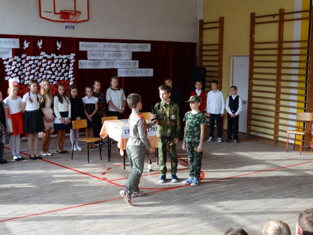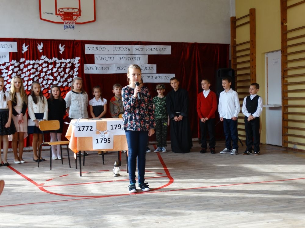 W dniu 10 listopada 2016 r. w Szkole Podstawowej Nr 2 w Piwnicznej Zdroju odbyła się akademia z okazji Narodowego Święta Niepodległości. W tym roku przypada 98. rocznica odzyskania przez naszą Ojczyznę wolności . Uroczystość rozpoczęła się wspólnym odśpiewaniem hymnu państwowego .Potem w części artystycznej uczniowie klasy czwartej i szóstej przygotowali montaż słowno – muzyczny, przypominając najważniejsze wydarzenia związane z walką Polaków o wolność. W inscenizacji znalazło się wszystko to, co kojarzy się z Polską i patriotyzmem. Były symbole narodowe, recytacje okolicznościowych wierszy, śpiew pieśni patriotycznych. Wszyscy uczestnicy akademii mogli przyłączyć się do wspólnego śpiewania utworów, które towarzyszyły naszym przodkom w drodze ku wolności. Mogliśmy usłyszeć takie pieśni jak "Przybyli ułani”,” Piechota” czy „Rota”. Społeczność szkolna z zainteresowaniem i w skupieniu obejrzała i wysłuchała tej szczególnej lekcji historii. Dzień 11 listopada to bardzo ważny dzień w historii Polski. Podczas akademii pan dyrektor Marian Dobosz przypomniał o wartości tego święta dla Polaków. Zwrócił się do uczniów, aby pamiętali, że prawdziwy Polak - patriota kocha swoją Ojczyznę i jest z niej dumny oraz zachęcał do obchodów święta w swoich domach rodzinnych. Pamiętajmy o wszystkich ludziach, którzy oddali życie za niepodległość i wolność naszej Ojczyzny bo jak mówią słowa św.Jana Pawła II –„ Naród, który nie pamięta swojej historii, nie wart jest przeżycia”.
