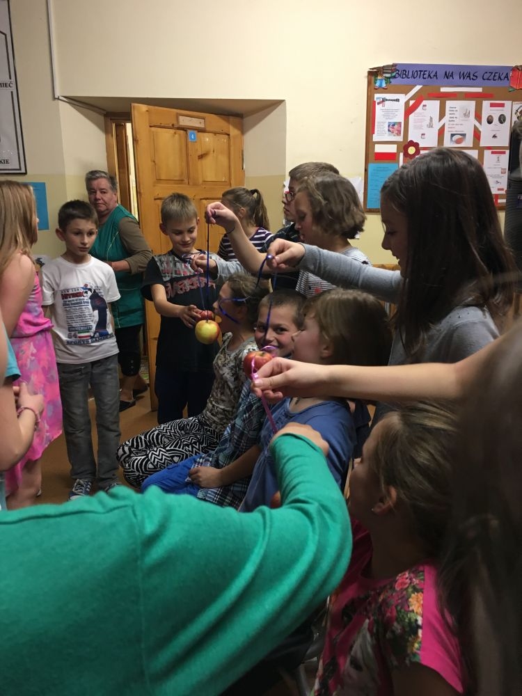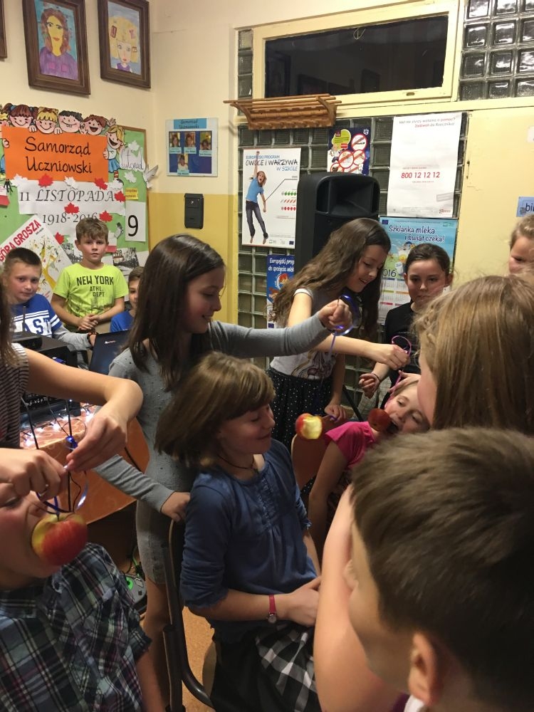 Dzieci często zastanawiają się, co ich w życiu spotka, planują i marzą. Z niecierpliwością oczekują na ten niezwykły, inny niż wszystkie dzień – dzień tajemniczych wróżb i czarów, połączonych z zabawą, tańcem i słodkim poczęstunkiem. Ten niezwykły dzień w naszej szkole miał miejsce 24 listopada. Przedstawiciele szkolnego samorządu wcielili się w role wróżbitów i przygotowali stoiska z wróżbami. Wszystkie pomysły okazały się bardzo ciekawe. Każdy uczeń mógł powróżyć sobie kilka razy. Czuć było zapach wosku, widać było drżące płomyki świec i dziwne cienie na ścianach. Wielu uczniów obawiało się, że wróżby mogą być niezbyt pomyślne. Okazało się jednak, że prawie wszystkie dziewczęta wyjdą kiedyś za mąż, a chłopcy znajdą swoje żony. Dzięki wróżbom dowiedzieliśmy się również, że będziemy mieli w przyszłości dużo lekarzy, nauczycieli oraz księży. Podczas zabawy śmiechu było co niemiara. Kolorowe i migające światełka sprawiły, że atmosfera była pełna magii. Następnie dzieci wraz ze swoimi opiekunami tańczyły i bawiły się wspólnie przy dźwiękach skocznej muzyki. Było również wiele ciekawych zabaw i konkursów, w których chętni uczniowie pokazali swoje wybitne umiejętności.