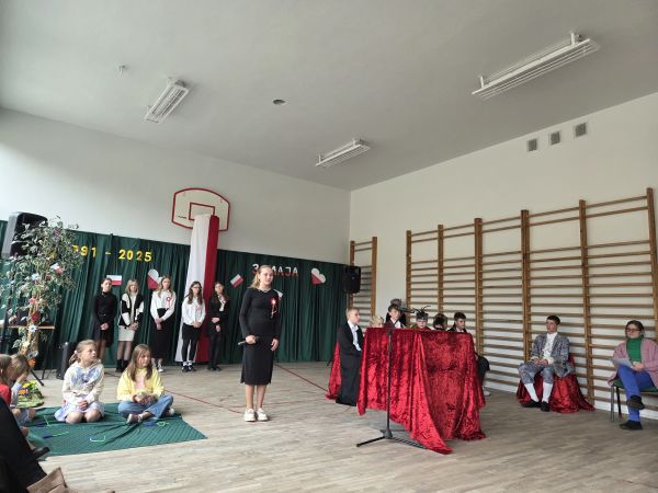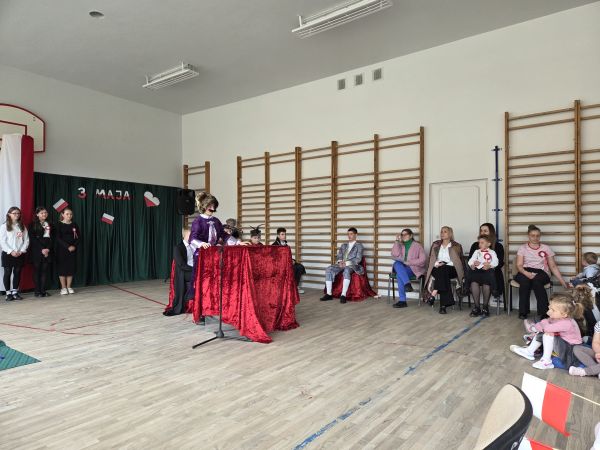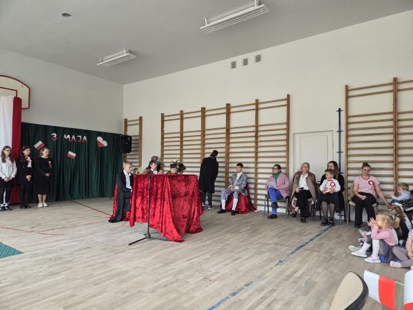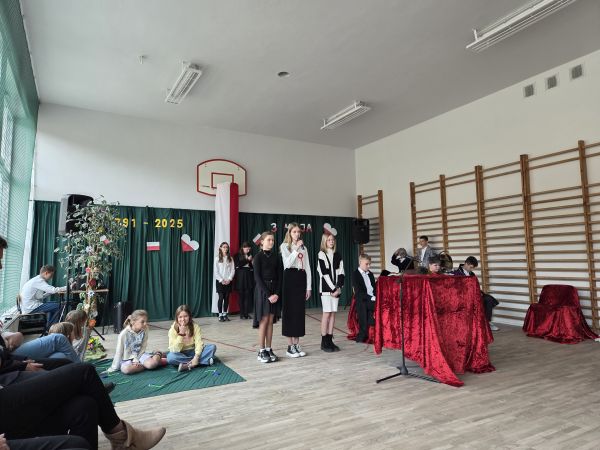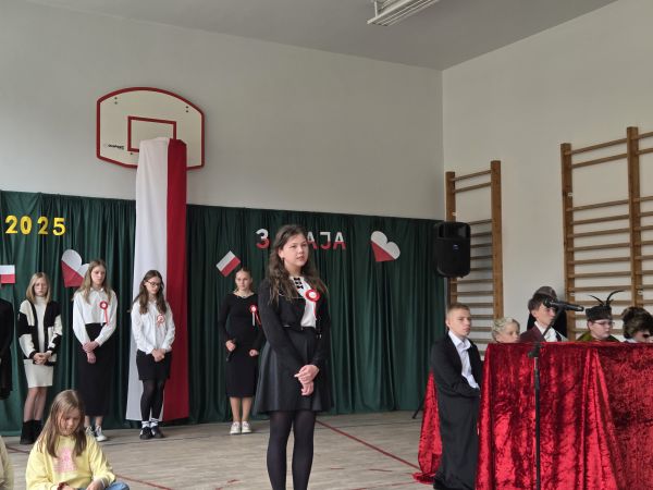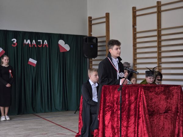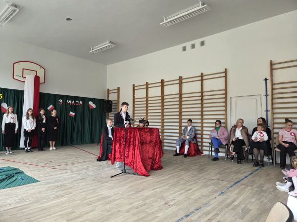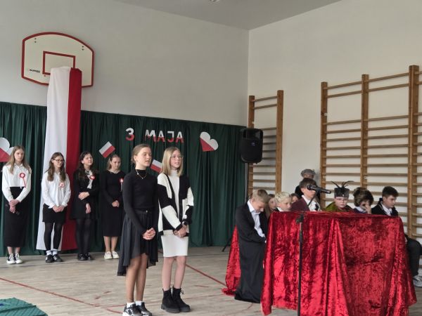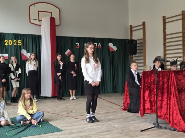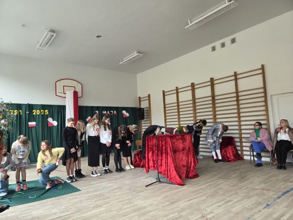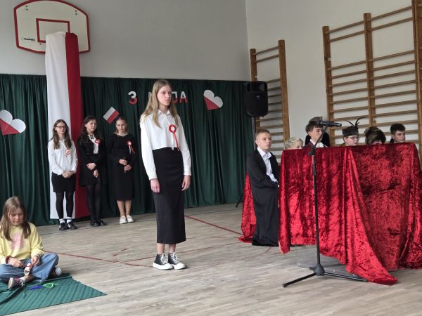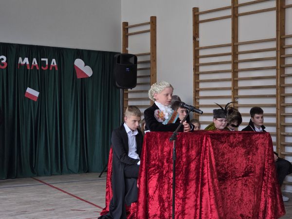 5 maja w sali gimnastycznej naszej szkoły odbyła się uroczysta akademia upamiętniająca ten szczególnie ważny dla Polaków dzień.