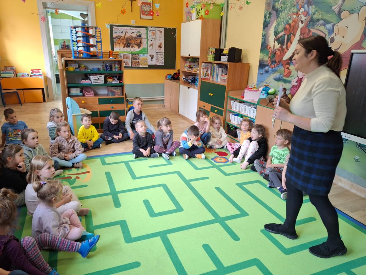 W dniu 19.05.2025 r. odbyło się spotkanie dzieci z oddziałów przedszkolnych z panią Agatą Kwit – przedstawicielką Gospodarstwa Edukacyjnego „W zielonym gaju”. Temat zajęć brzmiał: „Skąd biorą się produkty ekologiczne?”. Podczas spotkania dzieci miały okazję dowiedzieć się: