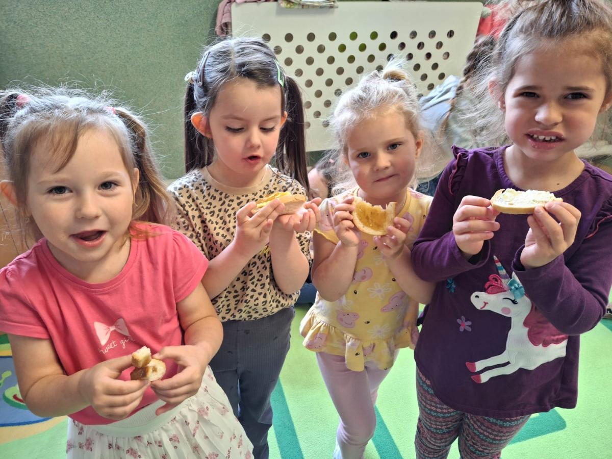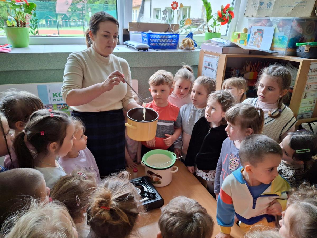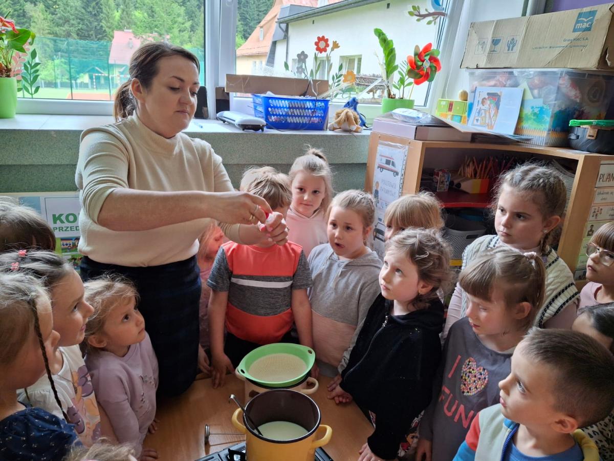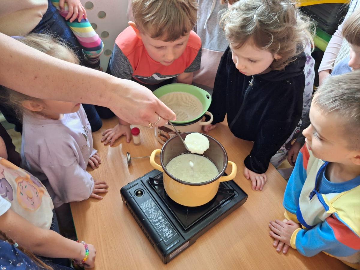 Zajęcia miały charakter edukacyjny i praktyczny. Dzieci mogły spróbować naturalnych produktów przygotowanych w gospodarstwie pani Agaty: masła, dżemu, powideł i miodu. Degustacja cieszyła się dużym zainteresowaniem i wszystkim bardzo smakowała. Przedszkolaki miały również możliwość obserwacji w jaki sposób z mleka powstaje ser.