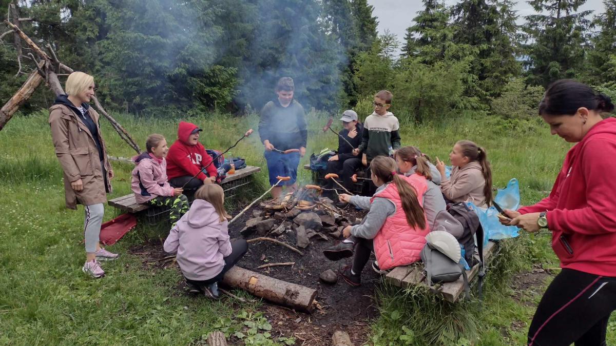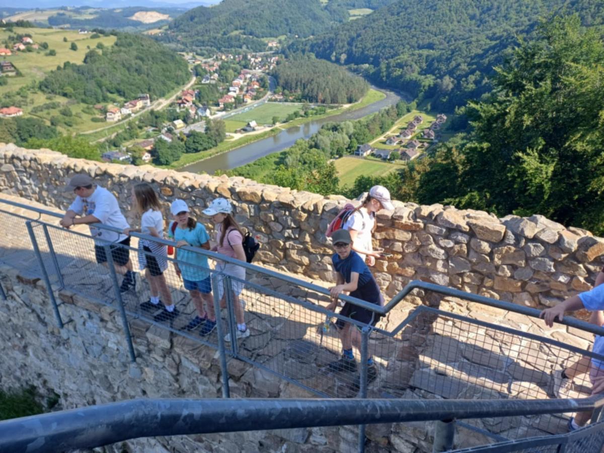 16 czerwca 2025r., klasa 5, wraz z panią Agatą Świebodą oraz panią Anną Janeczek, wyruszyła na Cyrlę. Zanim jednak uczniowie dotarli do celu wyprawy, zwiedzili ruiny zamku, który góruje nad Rytrem. Spacerując po murach, podziwiali okoliczną panoramę. Następnie, malowniczym szlakiem biegnącym przez wzgórza porośnięte lasami liściastymi, wędrowali do schroniska "Górska Chata" na Cyrli. W schronisku każdy spróbował potraw tamtejszej kuchni – najlepszym wyborem okazały się pierogi. Po posiłku były zabawy, a najatrakcyjniejsza była zabawa w chowanego. Mimo zmęczenia i bolących nóg, wszyscy wrócili do domu w świetnych humorach.