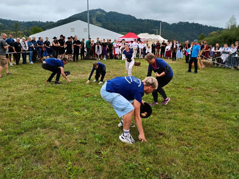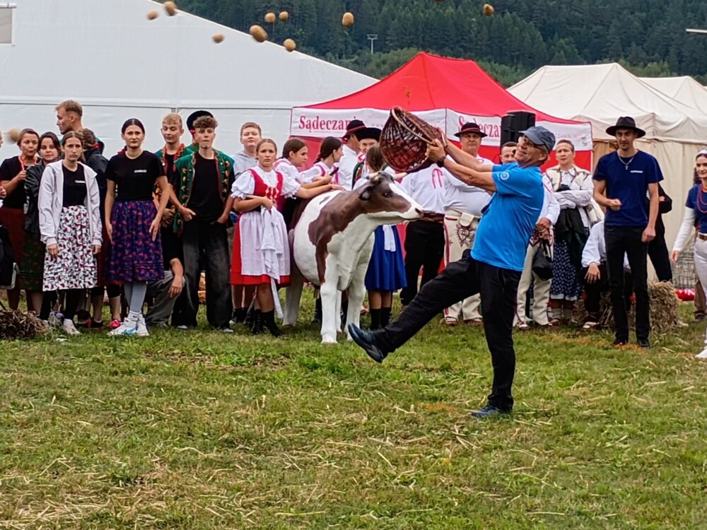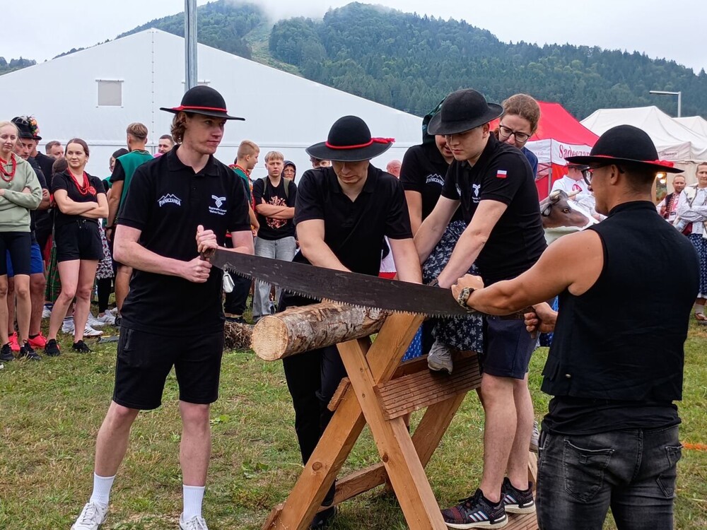 Ponadto w tym dniu wzieli także udział w biegu na krótkim dystansie (600 m) w tzw. ,,Biegu po medal” - bo każdy uczestnik go otrzymał. Opiekunem naszej grupy był nauczyciel w.f. p.Filip Malik, a na zwodach był także dyr.szk. Marian Dobosz, który co roku wspiera ten festiwal będąc w teamie organizacyjnym i tym razem mierzył odległości przy skoku w dal. W sobotę prowadził także Igrzyska Lachów i Górali w ciekawych konkurencjach m.in. takich jak rzucanie podkową, rżnięcie klocków drewnianych piłą, przenoszenie bali słomy, zbieranie ziemniaków, dojenie sztucznej krowy, w którym występowali przedstawiciele zespołów regionalnych (m.in.Z.R. ,,Dolina Popradu” z Piwnicznej-Zdroju).