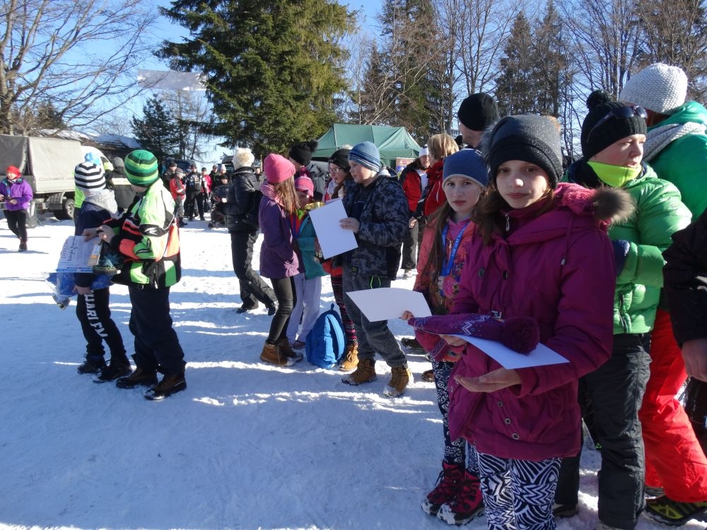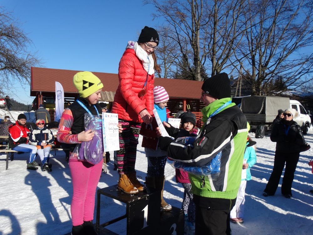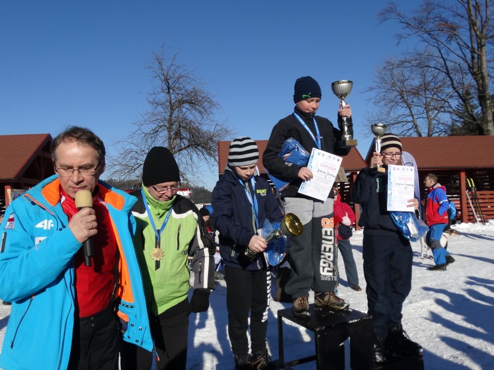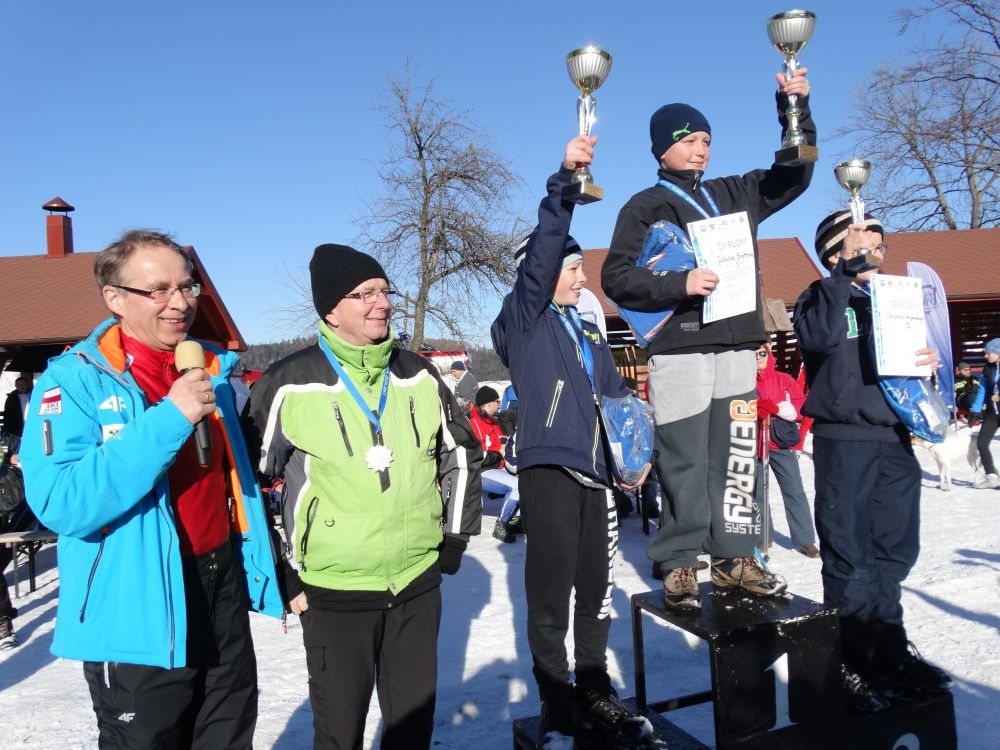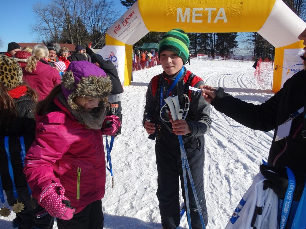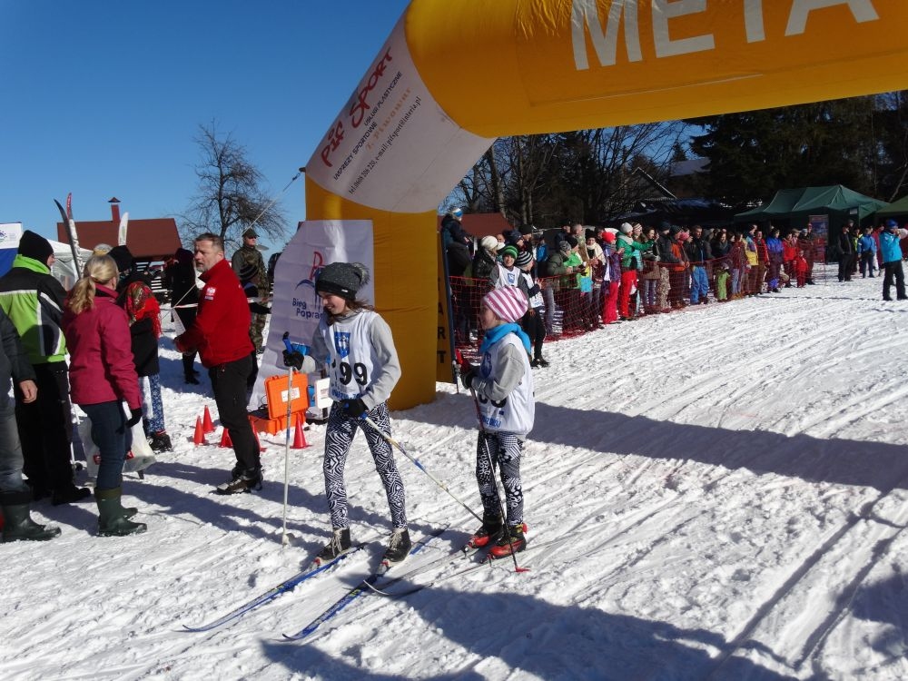 W ramach IV edycji Biegu Popradzkiego przeprowadzono zawody pod nazwą Mistrzostwa MiG Piwniczna Zdrój w narciarstwie biegowym dla szkół podstawowych. Do zawodów zgłosili się uczniowie ze szkoły Podstawowej w Kosarzyskach ,których przygotowywał dyrektor szkoły Marian Dobosz. Uczyli sie trudnej techniki biegowej przez kilka tygodni i poradzili sobie bardzo dobrze. Dodajmy ,że dla wszystkich to był debiut w takich zawodach. Wystartowało 16 uczniów naszej szkoły. Trasa liczyła około 600 m. i składała się z pętli ,którą musieli pokonać dwukrotnie. Wystartowali uczniowie z klas IV-VI z podziałem na grupę dziewcząt i chłopców. Najlepsza wśród dziewcząt okazała się Wiktoria Kulig drugie miejsce zajęła Emilia Ściegienny , a trzecia była Wiktoria Brotoń .Kolejne miejsce zajęły Justyna Grucela ,Kinga Kożuch, Oliwia Łomnicka, Ola Lisowska, Joanna Barnowska, Joanna Gardoń, Ola Smyda. Wśród chłopców zwyciężył Jakub Brotoń, drugi był Konrad Fabiś, trzeci Grzegorz Śmigowski .Kolejne miejsce zajęli Cyprian Łomnicki,Patryk Kupczak,Krzysztof Barnowski. Każdy kto ukończył bieg otrzymał pamiątkowy medal ,który był ilustrował polanę Obidzę i przedstawiał logo biegu popradzkiego. Za zajęcie I,II,III miejsca uczniowie otrzymali pamiątkowe puchary ,dyplomy i nagrody rzeczowe. Dodatkowo nagrodzono pozostałych uczestników ,którzy uplasowali się na miejscach od IV do VI .W ceremonii zakończenia brał udział Burmistrz MiG Piwniczna Zdrój Zbigniew Janeczek ,który osobiście nagradzał uczestników biegu.