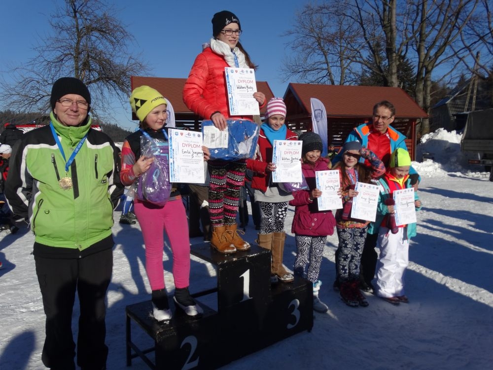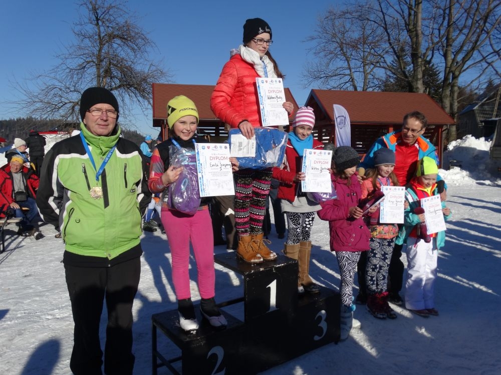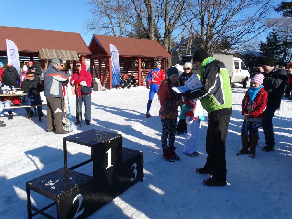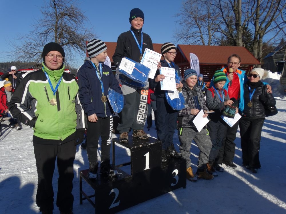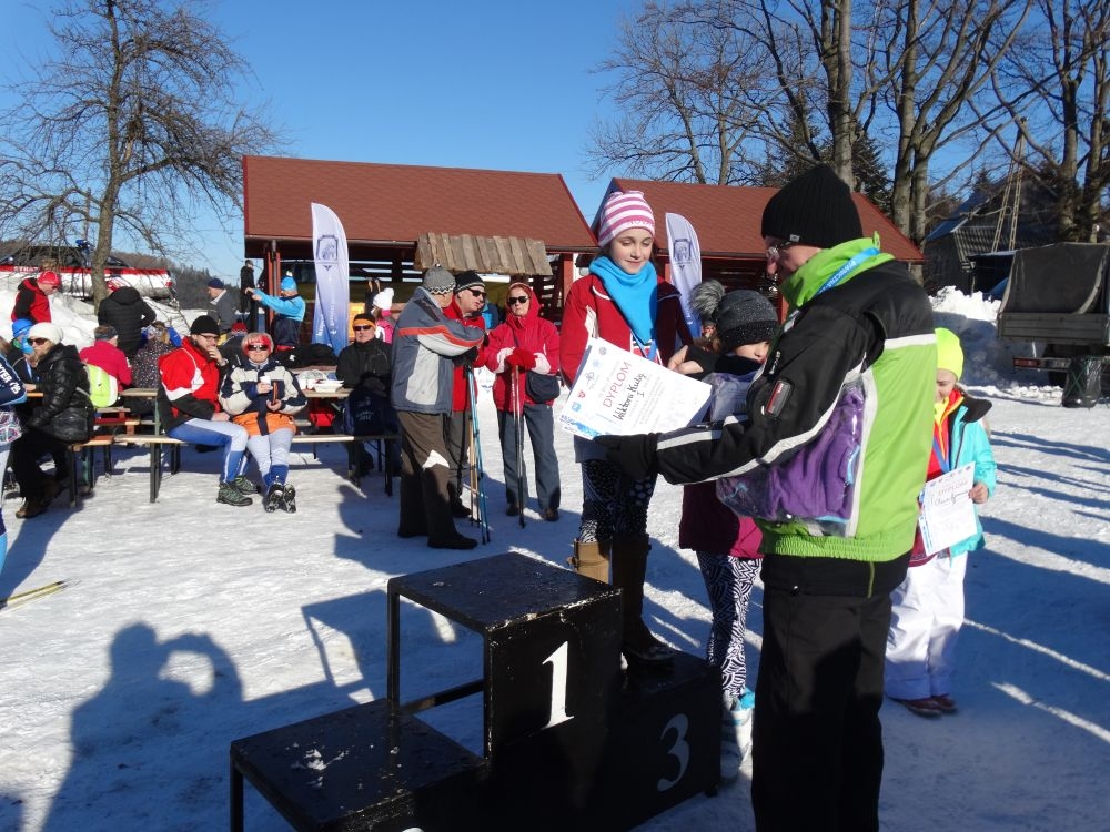W ramach IV edycji Biegu Popradzkiego przeprowadzono zawody pod nazwą Mistrzostwa MiG Piwniczna Zdrój w narciarstwie biegowym dla szkół podstawowych. Do zawodów zgłosili się uczniowie ze szkoły Podstawowej w Kosarzyskach ,których przygotowywał dyrektor szkoły Marian Dobosz. Uczyli sie trudnej techniki biegowej przez kilka tygodni i poradzili sobie bardzo dobrze. Dodajmy ,że dla wszystkich to był debiut w takich zawodach. Wystartowało 16 uczniów naszej szkoły. Trasa liczyła około 600 m. i składała się z pętli ,którą musieli pokonać dwukrotnie. Wystartowali uczniowie z klas IV-VI z podziałem na grupę dziewcząt i chłopców. Najlepsza wśród dziewcząt okazała się Wiktoria Kulig drugie miejsce zajęła Emilia Ściegienny , a trzecia była Wiktoria Brotoń .Kolejne miejsce zajęły Justyna Grucela ,Kinga Kożuch, Oliwia Łomnicka, Ola Lisowska, Joanna Barnowska, Joanna Gardoń, Ola Smyda. Wśród chłopców zwyciężył Jakub Brotoń, drugi był Konrad Fabiś, trzeci Grzegorz Śmigowski .Kolejne miejsce zajęli Cyprian Łomnicki,Patryk Kupczak,Krzysztof Barnowski. Każdy kto ukończył bieg otrzymał pamiątkowy medal ,który był ilustrował polanę Obidzę i przedstawiał logo biegu popradzkiego. Za zajęcie I,II,III miejsca uczniowie otrzymali pamiątkowe puchary ,dyplomy i nagrody rzeczowe. Dodatkowo nagrodzono pozostałych uczestników ,którzy uplasowali się na miejscach od IV do VI .W ceremonii zakończenia brał udział Burmistrz MiG Piwniczna Zdrój Zbigniew Janeczek ,który osobiście nagradzał uczestników biegu.