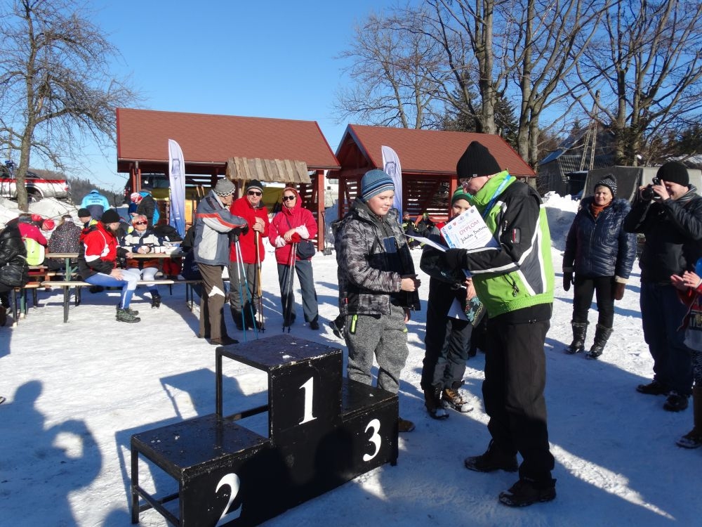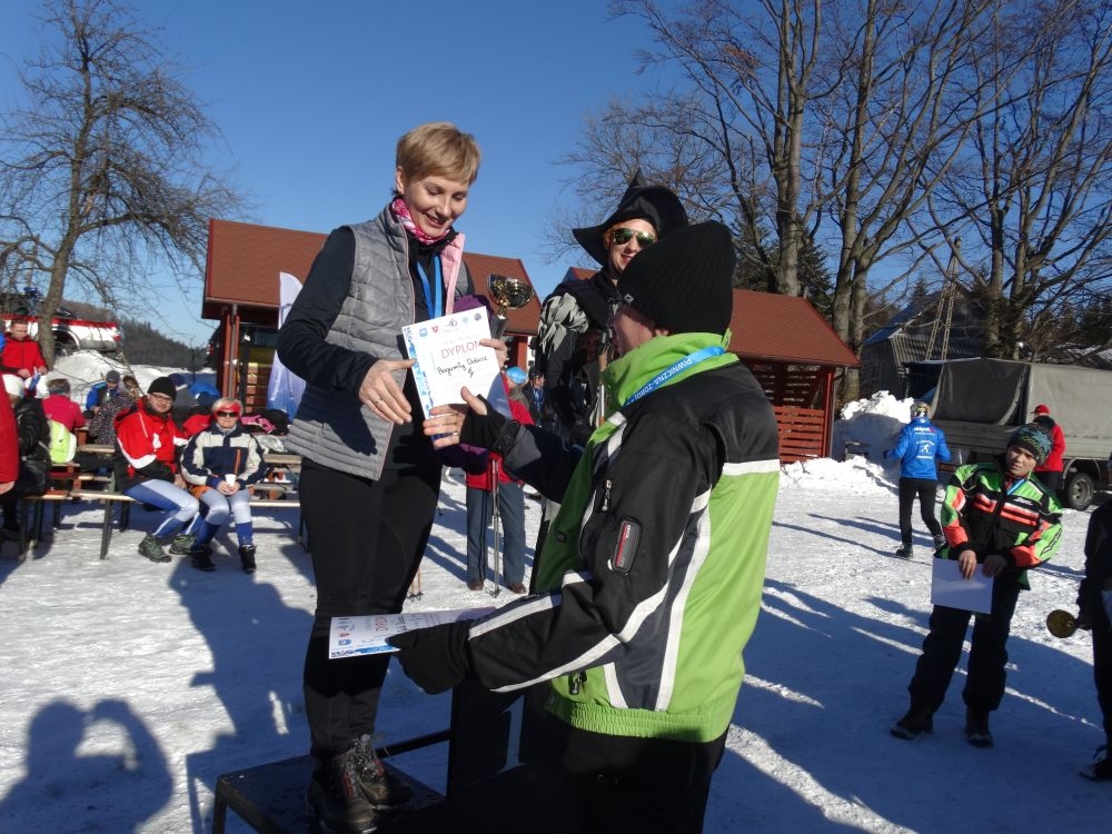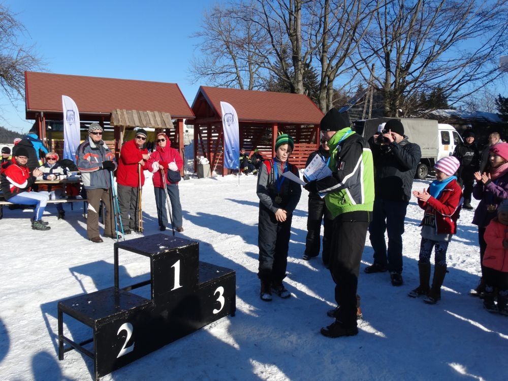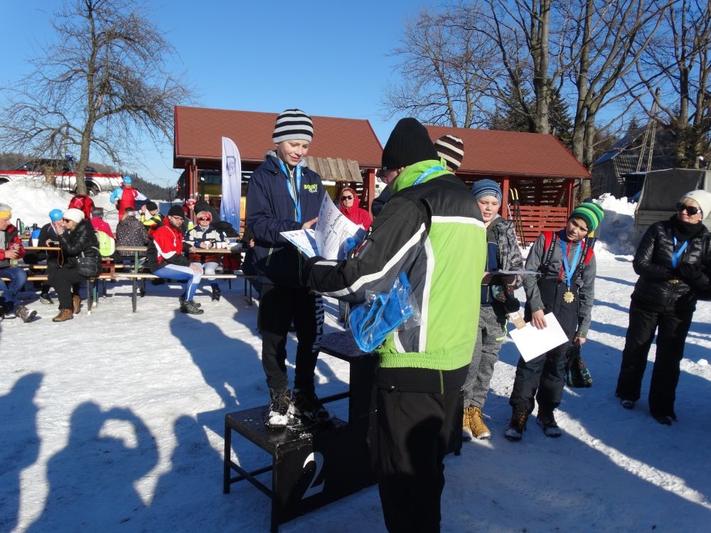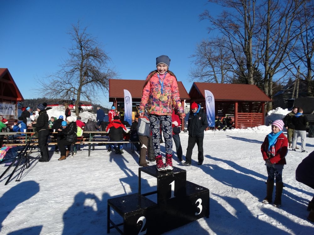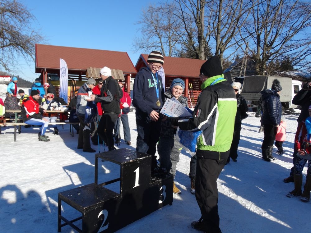 W ramach IV edycji Biegu Popradzkiego przeprowadzono zawody pod nazwą Mistrzostwa MiG Piwniczna Zdrój w narciarstwie biegowym dla szkół podstawowych. Do zawodów zgłosili się uczniowie ze szkoły Podstawowej w Kosarzyskach ,których przygotowywał dyrektor szkoły Marian Dobosz. Uczyli sie trudnej techniki biegowej przez kilka tygodni i poradzili sobie bardzo dobrze. Dodajmy ,że dla wszystkich to był debiut w takich zawodach. Wystartowało 16 uczniów naszej szkoły. Trasa liczyła około 600 m. i składała się z pętli ,którą musieli pokonać dwukrotnie. Wystartowali uczniowie z klas IV-VI z podziałem na grupę dziewcząt i chłopców. Najlepsza wśród dziewcząt okazała się Wiktoria Kulig drugie miejsce zajęła Emilia Ściegienny , a trzecia była Wiktoria Brotoń .Kolejne miejsce zajęły Justyna Grucela ,Kinga Kożuch, Oliwia Łomnicka, Ola Lisowska, Joanna Barnowska, Joanna Gardoń, Ola Smyda. Wśród chłopców zwyciężył Jakub Brotoń, drugi był Konrad Fabiś, trzeci Grzegorz Śmigowski .Kolejne miejsce zajęli Cyprian Łomnicki,Patryk Kupczak,Krzysztof Barnowski. Każdy kto ukończył bieg otrzymał pamiątkowy medal ,który był ilustrował polanę Obidzę i przedstawiał logo biegu popradzkiego. Za zajęcie I,II,III miejsca uczniowie otrzymali pamiątkowe puchary ,dyplomy i nagrody rzeczowe. Dodatkowo nagrodzono pozostałych uczestników ,którzy uplasowali się na miejscach od IV do VI .W ceremonii zakończenia brał udział Burmistrz MiG Piwniczna Zdrój Zbigniew Janeczek ,który osobiście nagradzał uczestników biegu.