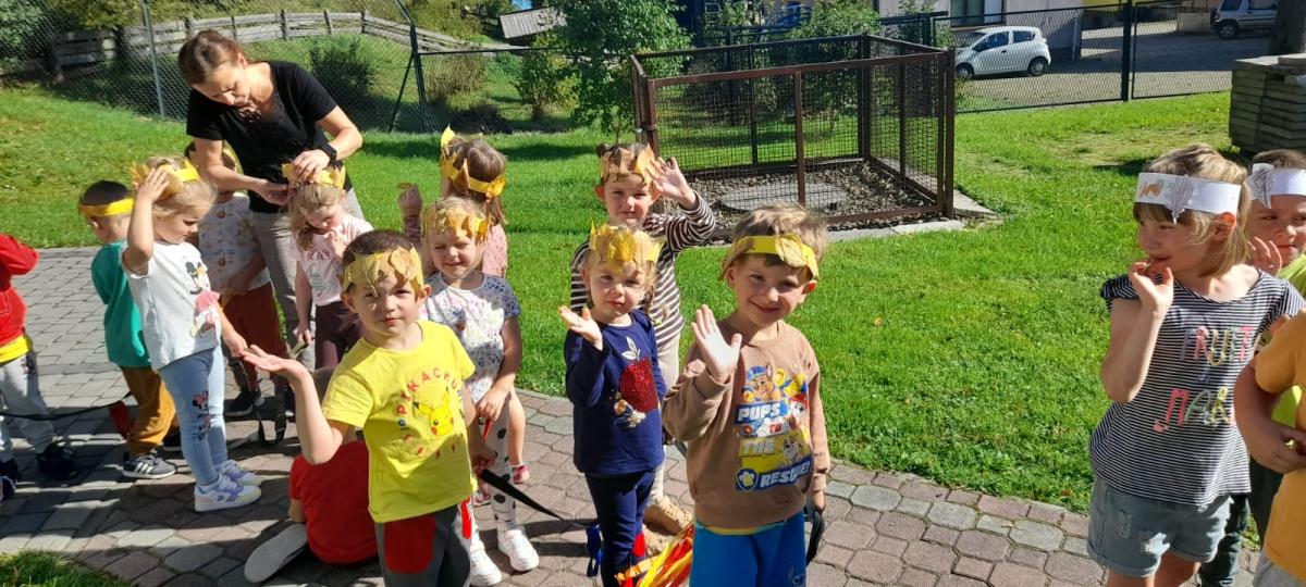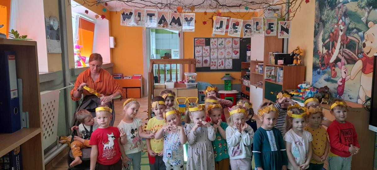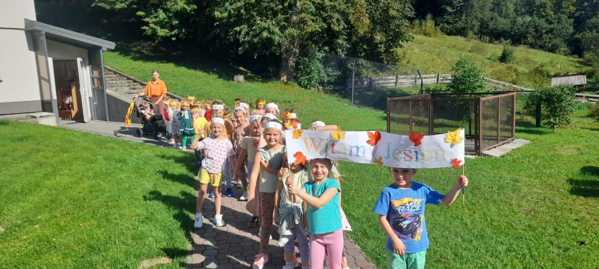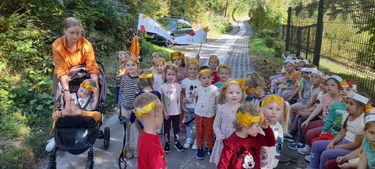 Dnia 22.09.2025 r. w Oddziałach Przedszkolnych odbyło się "Przywitanie Jesieni". Przedszkolaki brały udział w zabawach ruchowych, matematycznych oraz plastycznych z wykorzystaniem darów jesieni. Dzieci aktywnie słuchały fragmentu utworu A.Vivaldiego "Jesień", ucząc się uważnego odbioru muzyki i jej interpretacji. Wykonały również jesienne opaski z liści, które dodały uroku zabawom i całemu dniu. Głównym punktem był spacer do lasu w poszukiwaniu jesieni. Podczas wyjścia dzieci obserwowały zmieniająca się przyrodę, rozpoznawały oznaki nowej pory roku oraz wzbogacały wiedzę przyrodniczą. "Witaj jesieni, witaj już, przynieś nam liści cały wóz. Kasztan, żołędź w koszu masz, kolorów pięknych cały las!".