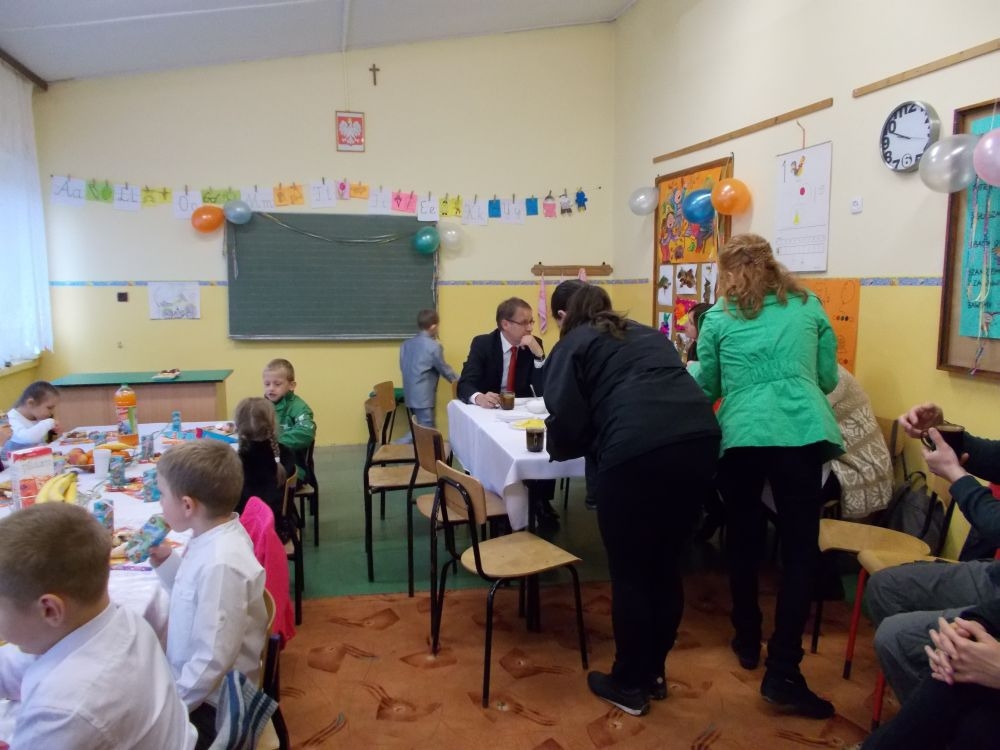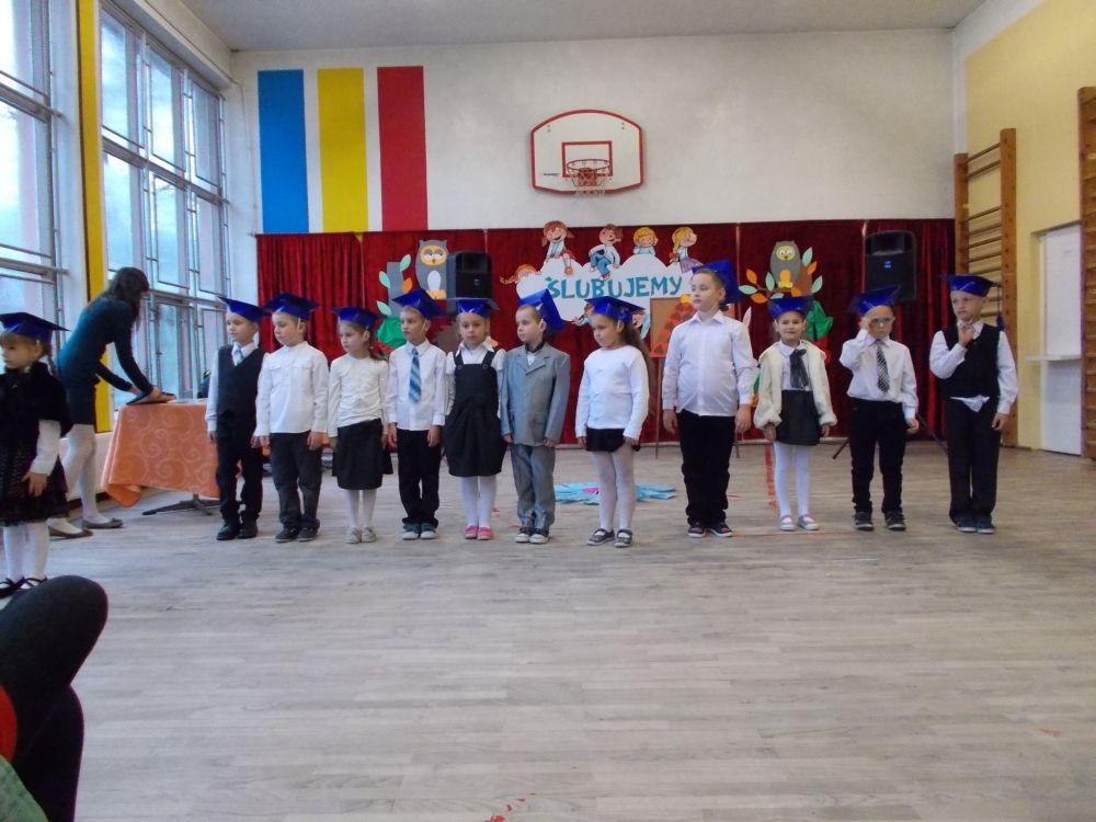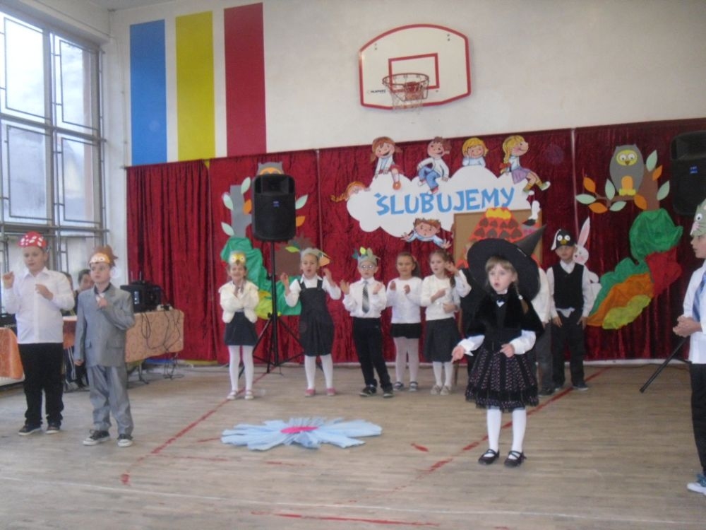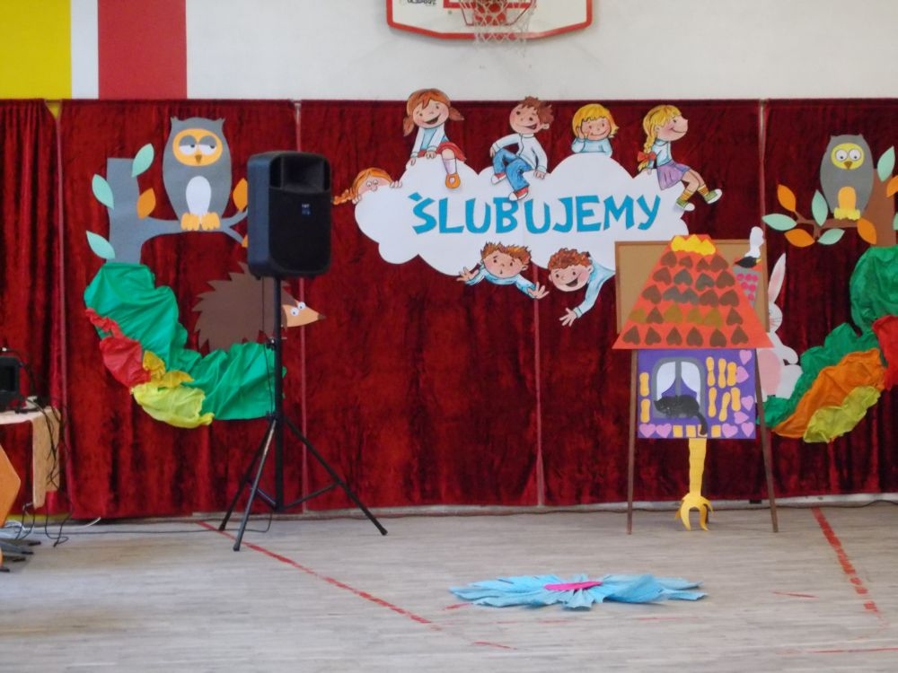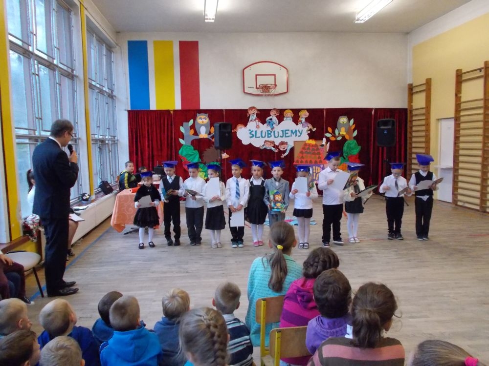 W dniu ślubowania o godzinie 9:00 na sali gimnastycznej zebrali się wszyscy zaproszeni goście: dyrekcja szkoły, grono pedagogiczne, starsi i młodsi koledzy i koleżanki, rodzice pierwszoklasistów, a także oni sami – w odświętnych strojach.