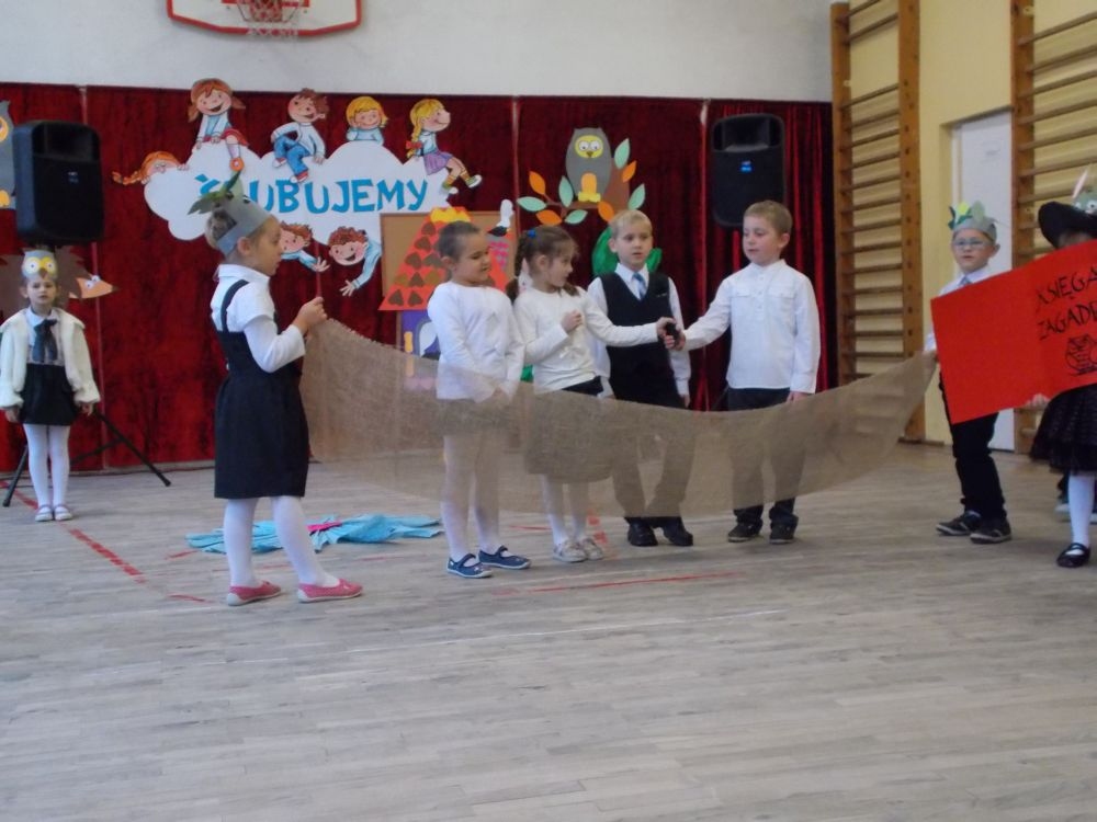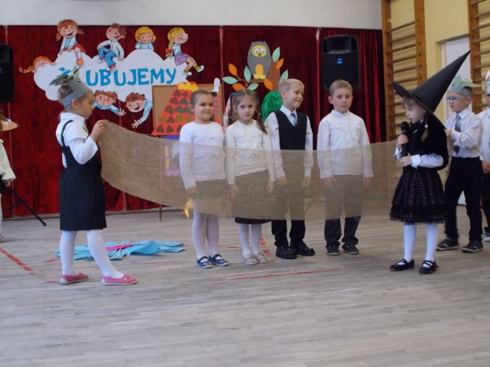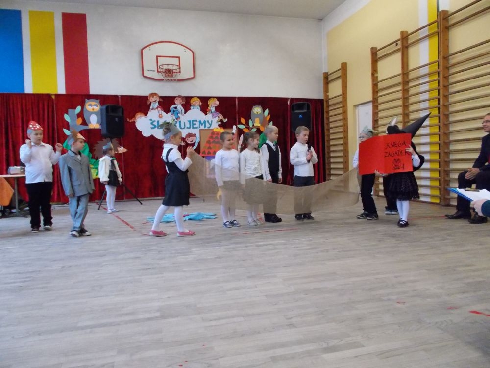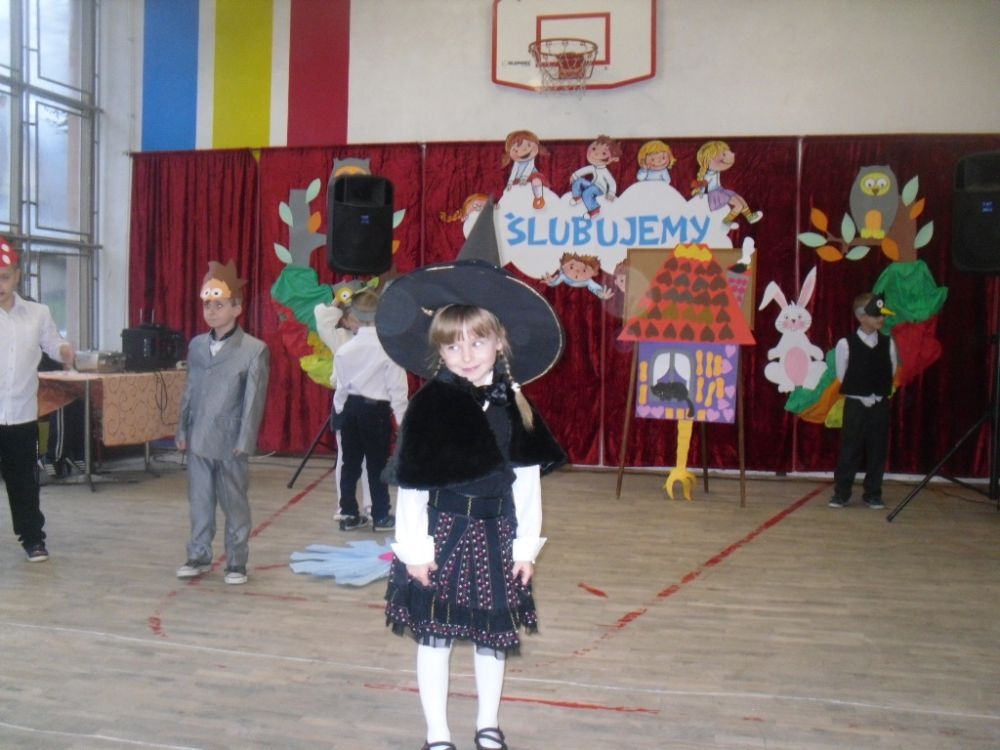 Zanim dzieci złożyły przysięgę, zaprezentowały inscenizację o Babie Jadze, która zamknęła w klatce dzieci, żeby ukarać je za skosztowanie chatki z piernika. A ponieważ okazało się, że były to dzieci z klasy pierwszej, Baba Jaga poprosiła je o pomoc w rozwiązaniu zagadek, nad którymi daremnie głowiła się już od dłuższego czasu. W zamian obiecała nagrodę. Dzieci zadania rozwiązały z łatwością, czym uszczęśliwiły czarownicę, która, mimo że miała wielką ochotę je zjeść, wypuściła je z klatki i pomachała na pożegnanie. Dzieci zaś po tej przygodzie postanowiły uczyć się jeszcze pilniej, gdyż na własnej skórze się przekonały, jak wielkim skarbem jest mądrość i wiedza. W przedstawienie wplecione były piosenki śpiewane przez małych aktorów.