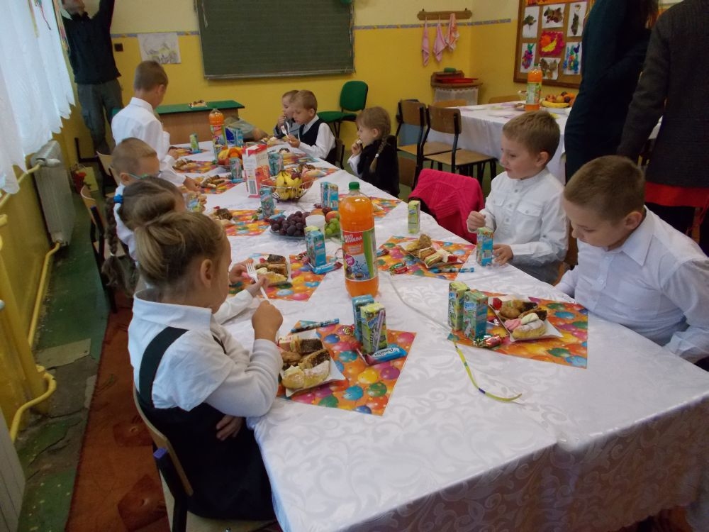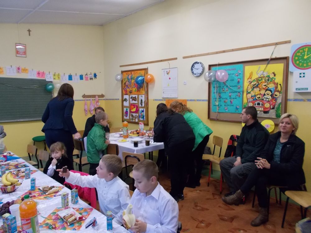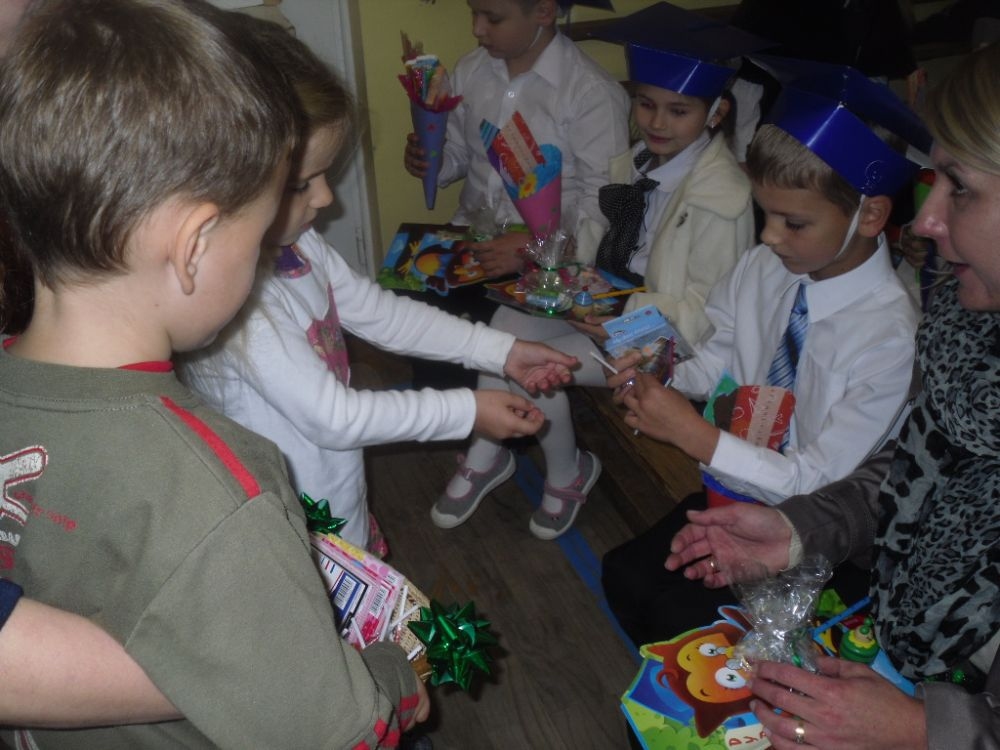 Uroczystość zakończyła się wręczaniem upominków oraz słodkim poczęstunkiem.