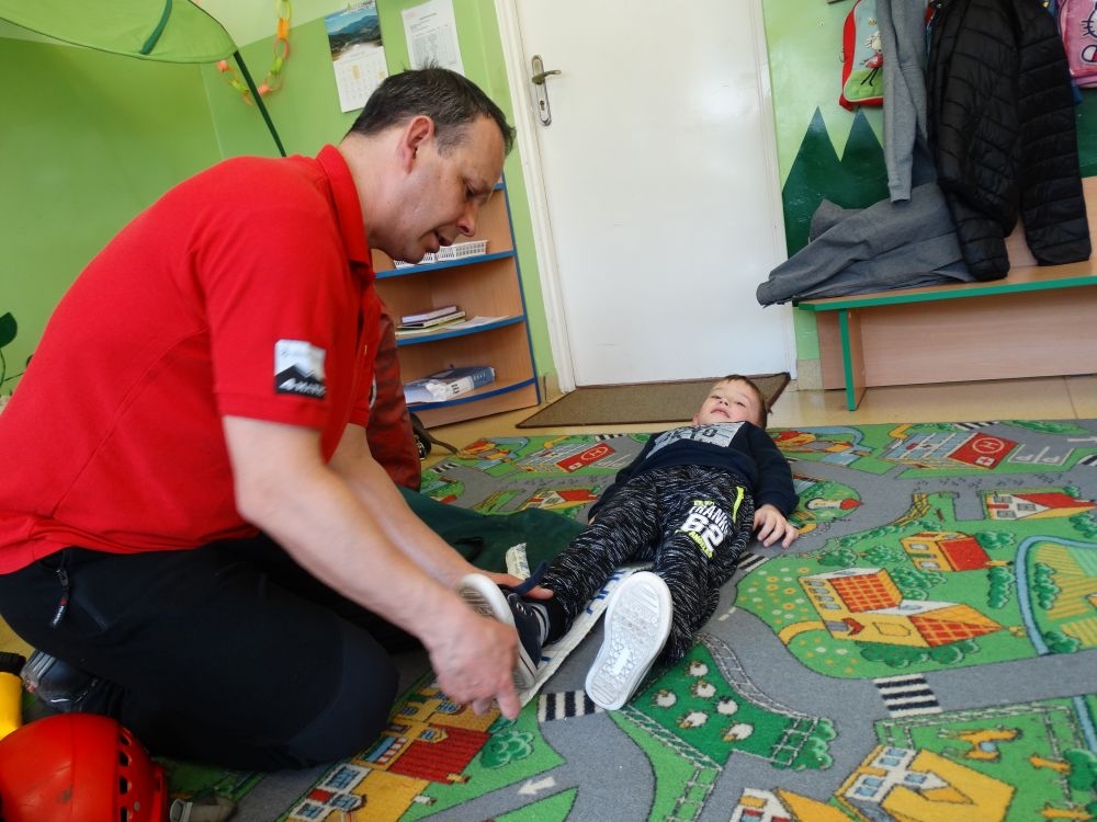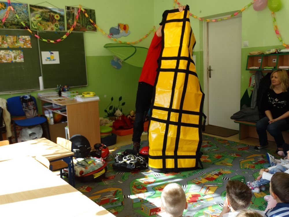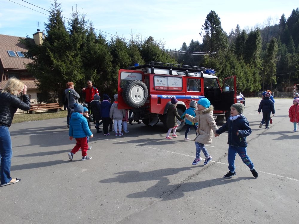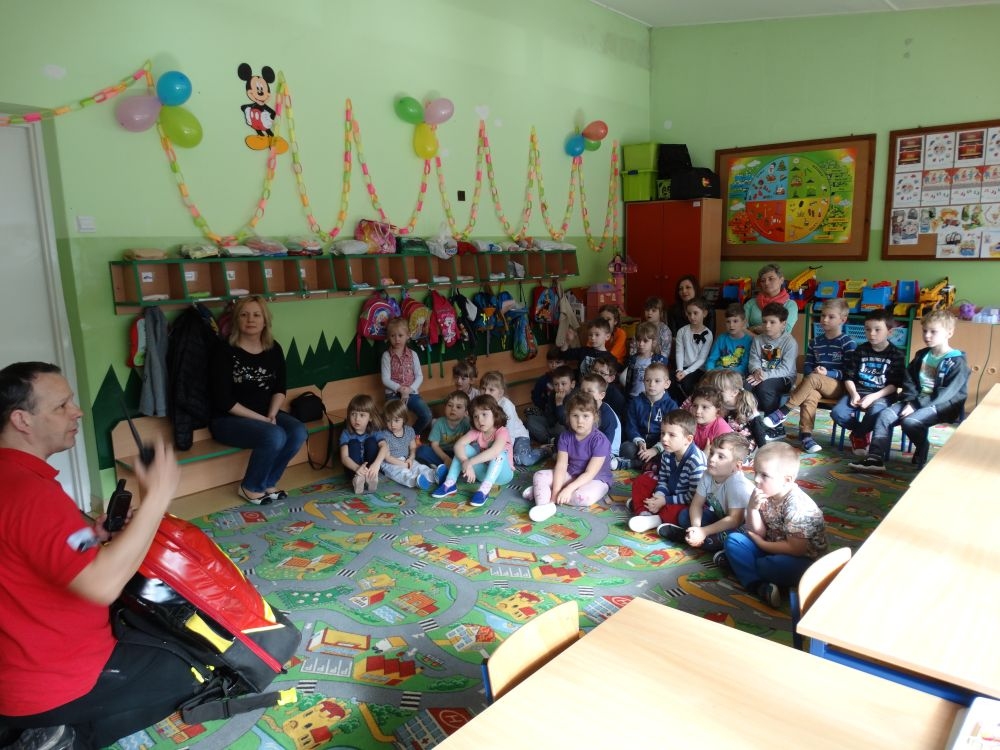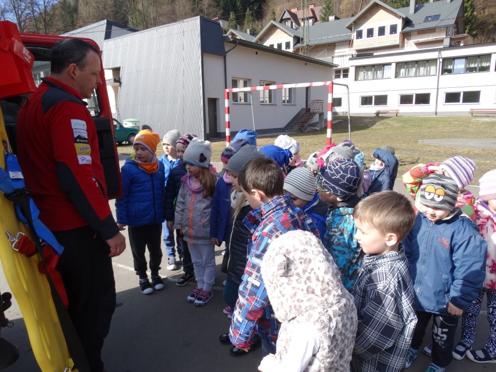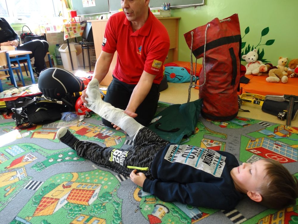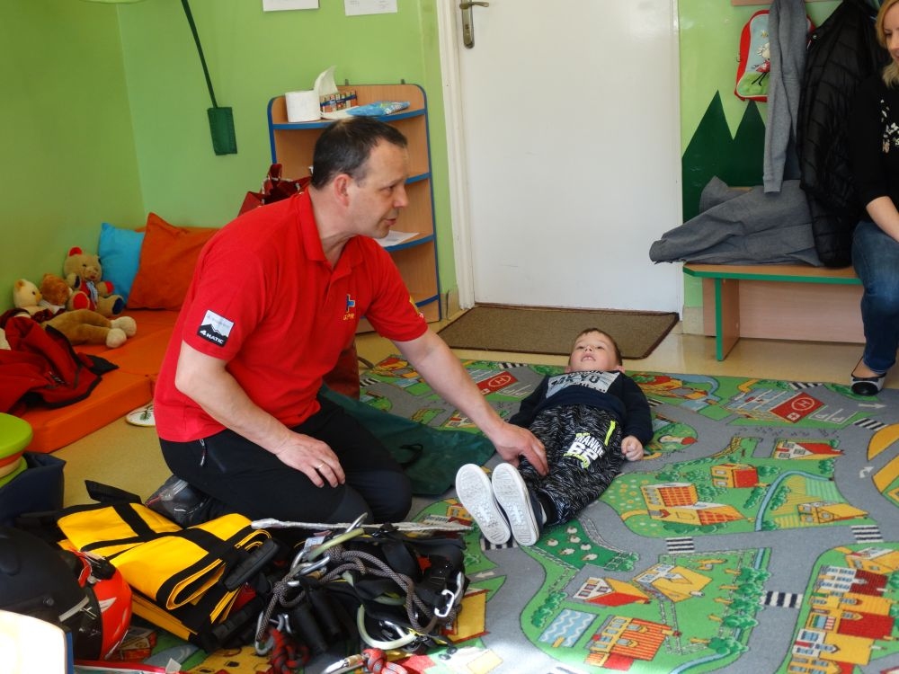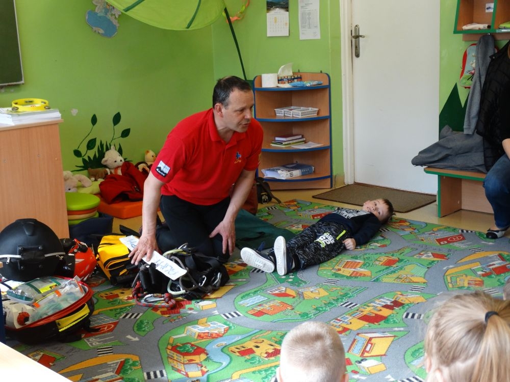 7 marca mieliśmy przyjemność gościć w przedszkolu ratownika Górskiego Ochotniczego Pogotowia Ratunkowego, pana Macieja Maślanką. Na spotkanie przybyły również dzieci z oddziału „0” oraz klasy pierwszej wraz z wychowawczyniami. Pan Maciej opowiedział o zadaniach ratownika, niebezpieczeństwach i różnych sytuacjach jakie mogą się pojawić podczas akcji ratunkowej. Zaprezentowany specjalistyczny sprzęt ratunkowy zrobił ogromne wrażenie na zebranych słuchaczach. Wszyscy dostali cenną lekcję jak się należy zachować w razie wypadku w górach i jak należy wezwać pomoc.