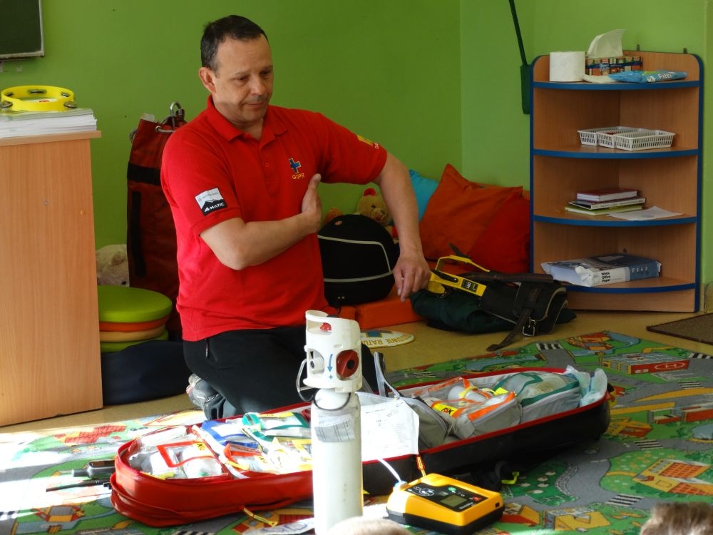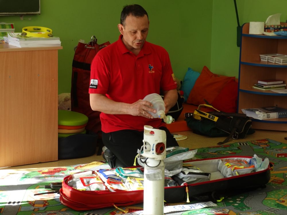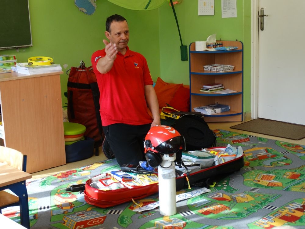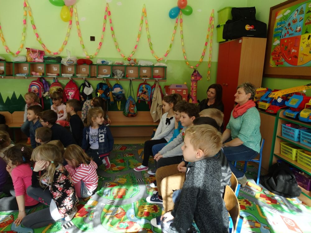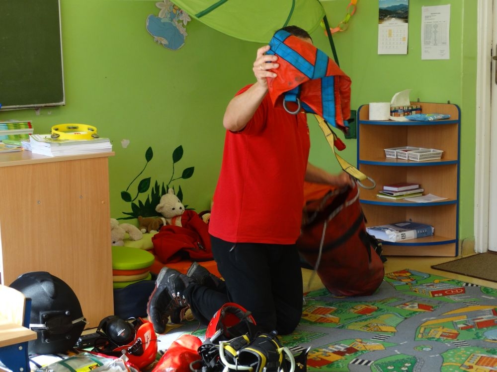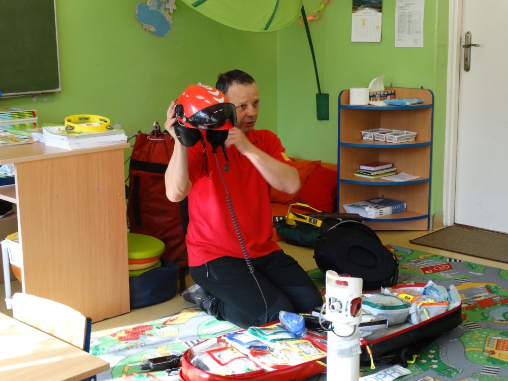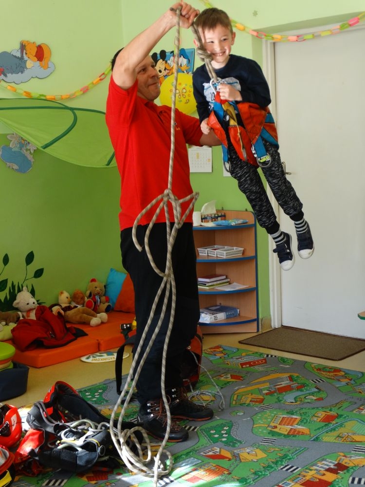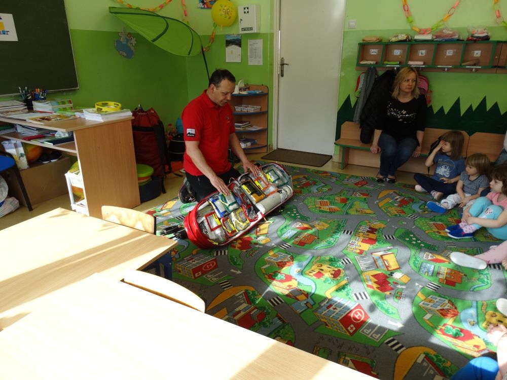 7 marca mieliśmy przyjemność gościć w przedszkolu ratownika Górskiego Ochotniczego Pogotowia Ratunkowego, pana Macieja Maślanką. Na spotkanie przybyły również dzieci z oddziału „0” oraz klasy pierwszej wraz z wychowawczyniami. Pan Maciej opowiedział o zadaniach ratownika, niebezpieczeństwach i różnych sytuacjach jakie mogą się pojawić podczas akcji ratunkowej. Zaprezentowany specjalistyczny sprzęt ratunkowy zrobił ogromne wrażenie na zebranych słuchaczach. Wszyscy dostali cenną lekcję jak się należy zachować w razie wypadku w górach i jak należy wezwać pomoc.