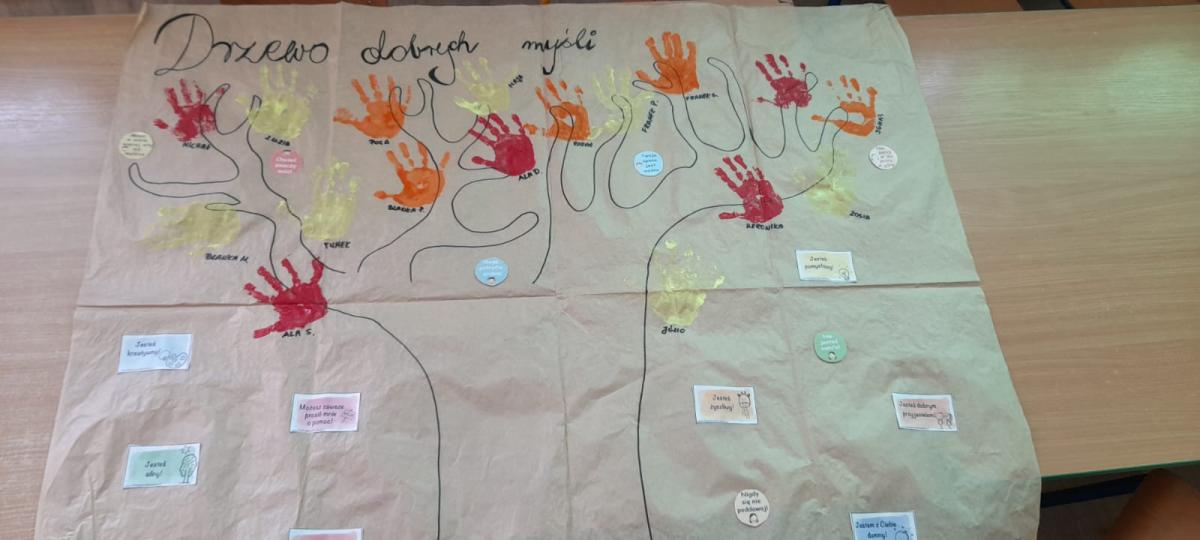 W dniach od 29.09.do 03.10.2025 r. miał miejsce tydzień o przeciwdziałaniu przemocy oraz budowaniu relacji. Dzieci z Oddziałów Przedszkolnych wzięły udział w spotkaniach: z psychologiem szkolnym p. Magdaleną Lach-Broniszewską, dzięki której dowiedziały się czym jest empatia oraz pedagogiem p. Jerzym Jamrozowiczem, który mówił o złości. Dzieci brały udział w rozmowach i zabawach integracyjnych, które miały na celu rozwijanie umiejętności rozpoznawania i wyrażania emocji, a także budowania pozytywnych relacji rówieśniczych.