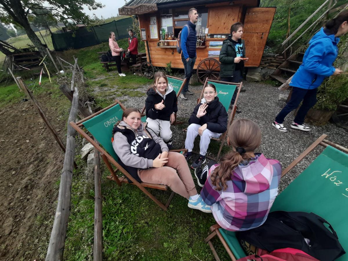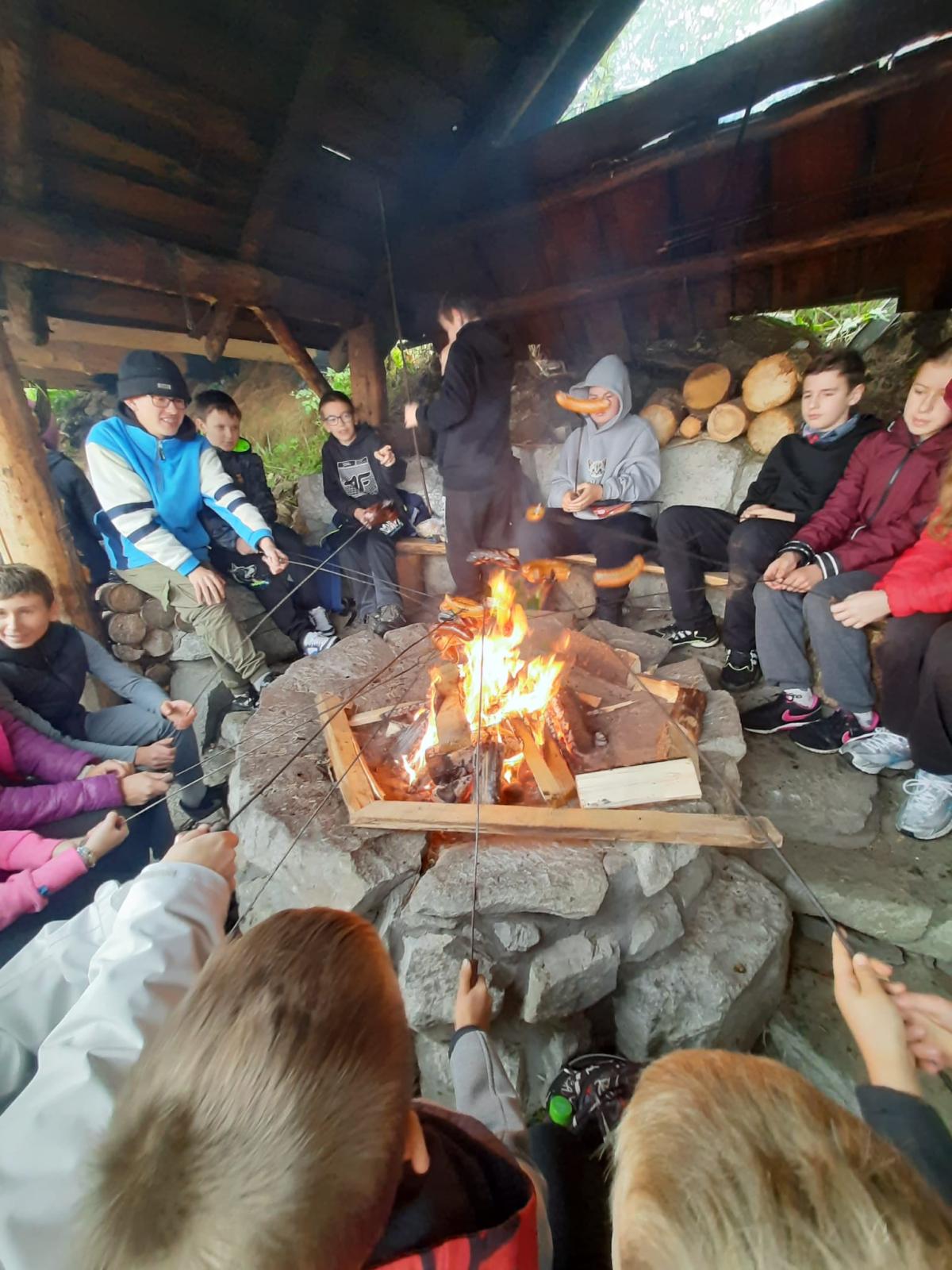 Dnia 08.10.2025r. uczniowie klas IV-VIII wraz z wychowawcami udali się na coroczną, tradycyjną, pieszą wycieczkę na Obidzę. Docelowym miejscem był ,,Wóz u Johnnego", prowadzony przez Państwa Bernadetę i Andrzeja Porębskich. Po dotarciu do celu, wszyscy piekli kiełbasy, pili ciepłą herbatę, którą częstowali gospodarze. Serdecznie dziękujemy za gościnę i mamy nadzieję, że zobaczymy się również w przyszłym roku.