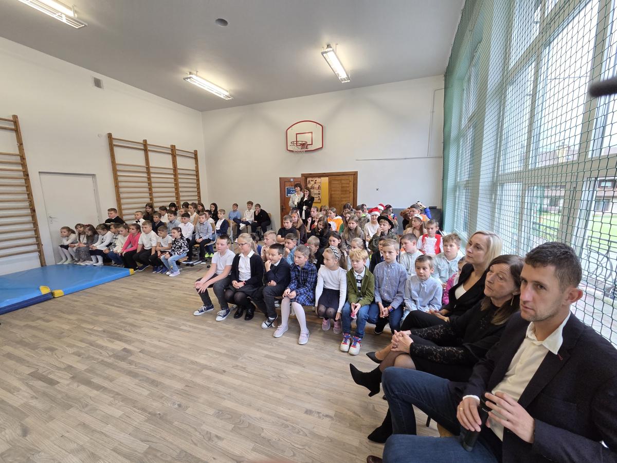 Pogadankę przeprowadziła p.Krzysztof Gargula, który omówił następujące zagadnienia związane z bezpieczeństwem w ruchu drogowym. Było to m.in. przejście drogą do i ze szkoły, korzystanie z pasów dla pieszych, ale także poruszanie się hulajnogą po chodniku i na drodze. Omówił także temat związany z nawiązywaniem znajomości z osobami nieznajomymi i skutki jakie z tego mogą wyniknąć. Ważnym zagadnieniem było także w jego wystąpieniu bezpieczeństwo w internecie i zagrożenia na jakie można napotkać i co należy robić by uniknąć konsekwencji za niewłaściwe zachowanie się w sieci. Na końcu złożył w imieniu przedstawicieli Policji najlepsze życzenia dla nauczycieli z okazji Dnia Edukacji Narodowej.