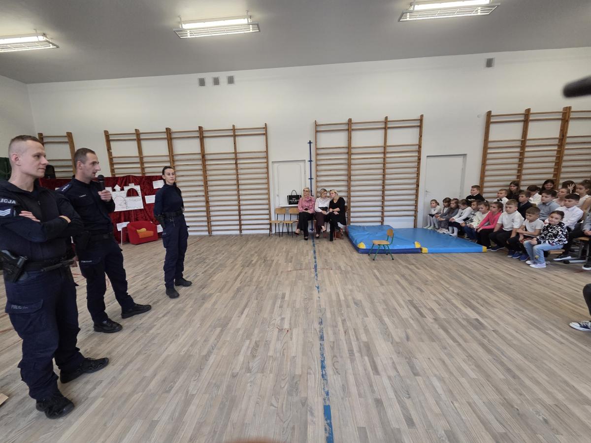 W dniu 14.10.2025 do naszej szkoły na zaproszenie dyrektora szkoły Mariana Dobosza przybyli przedstawiciele Policji. Byli reprezentowani w osobach: aspirant Krzysztof Gargula, sierżant sztabowy Dawid Zieliński, starszy posterunkowy Angelika Maślanka.