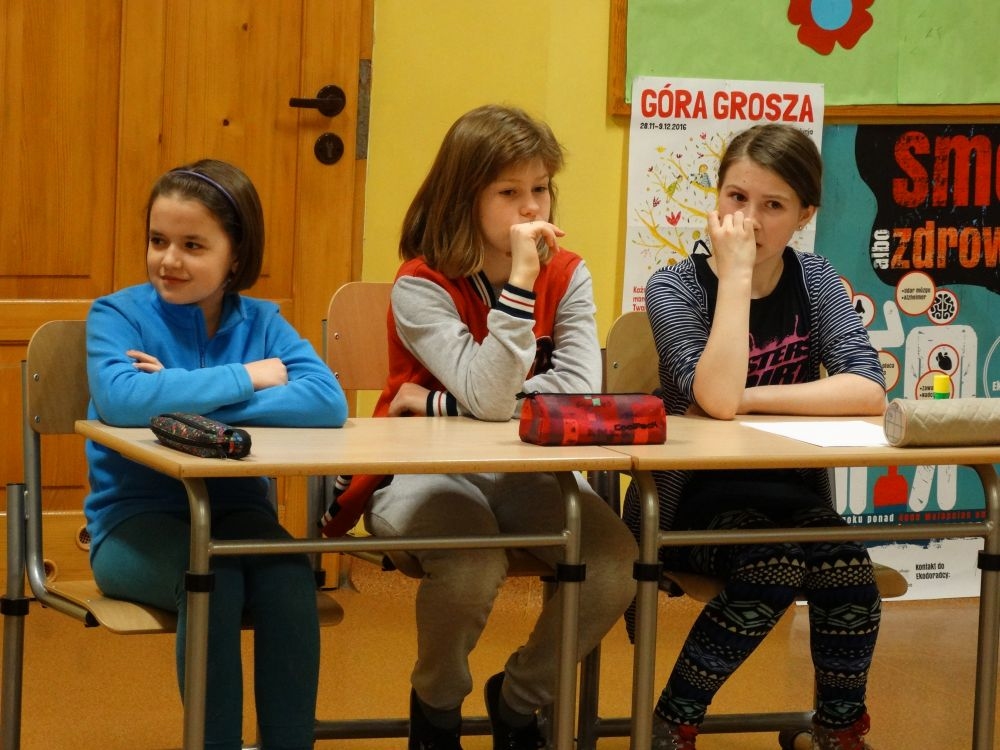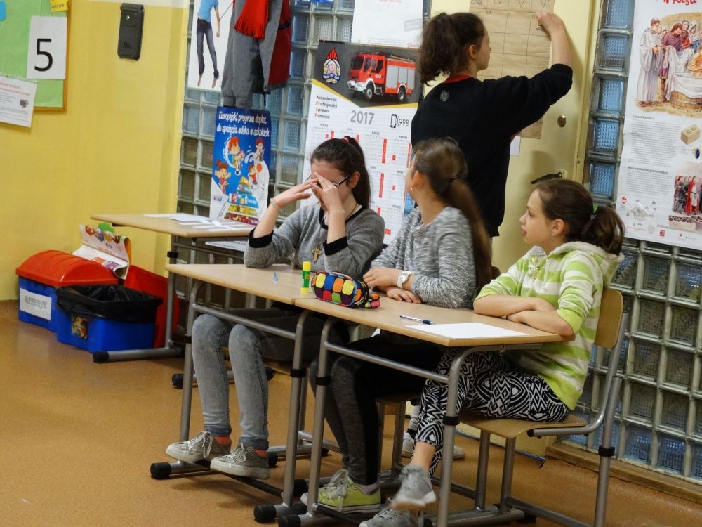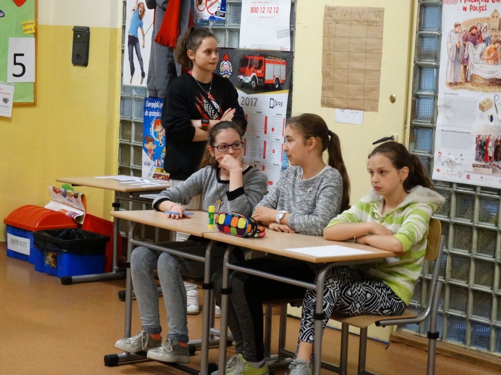 Uczniowie ci uzyskali najwięcej punktów w eliminacjach pisemnych przeprowadzonych w marcu. Pod czujnym okiem komisji , w obecności koleżanek i kolegów, zawodnicy zmagali się z zadaniami w czterech rundach. Najpierw każdy odpowiadał indywidualnie na wylosowane pytanie, a w dalszej części pracowano zespołowo. Drużyny układały puzzle na czas, wybierały właściwe tytuły książek i szeregowały w kolejności oraz po rozszyfrowaniu wiadomości, szukały w pomieszczeniach szkoły przedmiotów kojarzących się z "Tajemnicami". Po podliczeniu zdobytych punktów okazało się, że wygrała reprezentacja klasy V, nieznacznie wyprzedzając uczennice z klasy VI. Mam nadzieję, że uczestnicy dobrze się bawili, niezależnie od zajętego miejsca, a w przyszłości nie zabraknie chętnych do sięgania po książki i udziału w proponowanych konkursach.