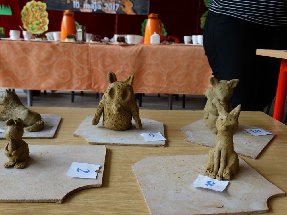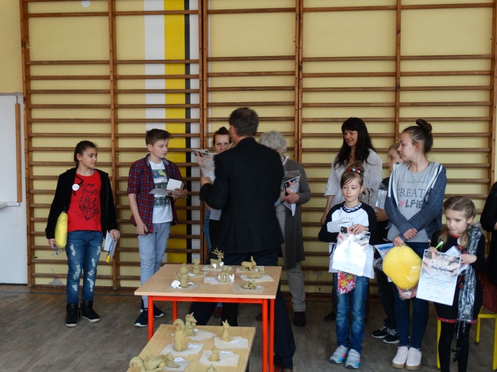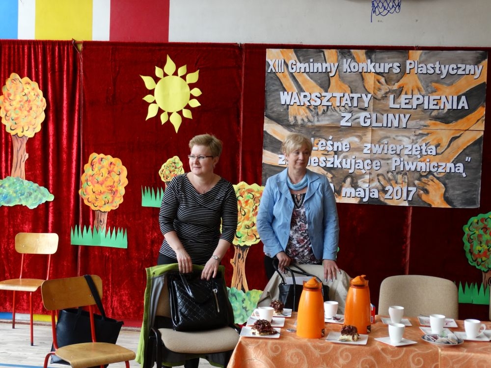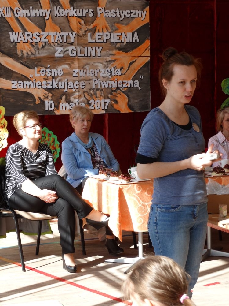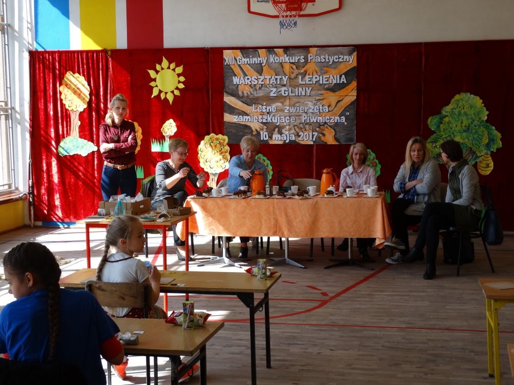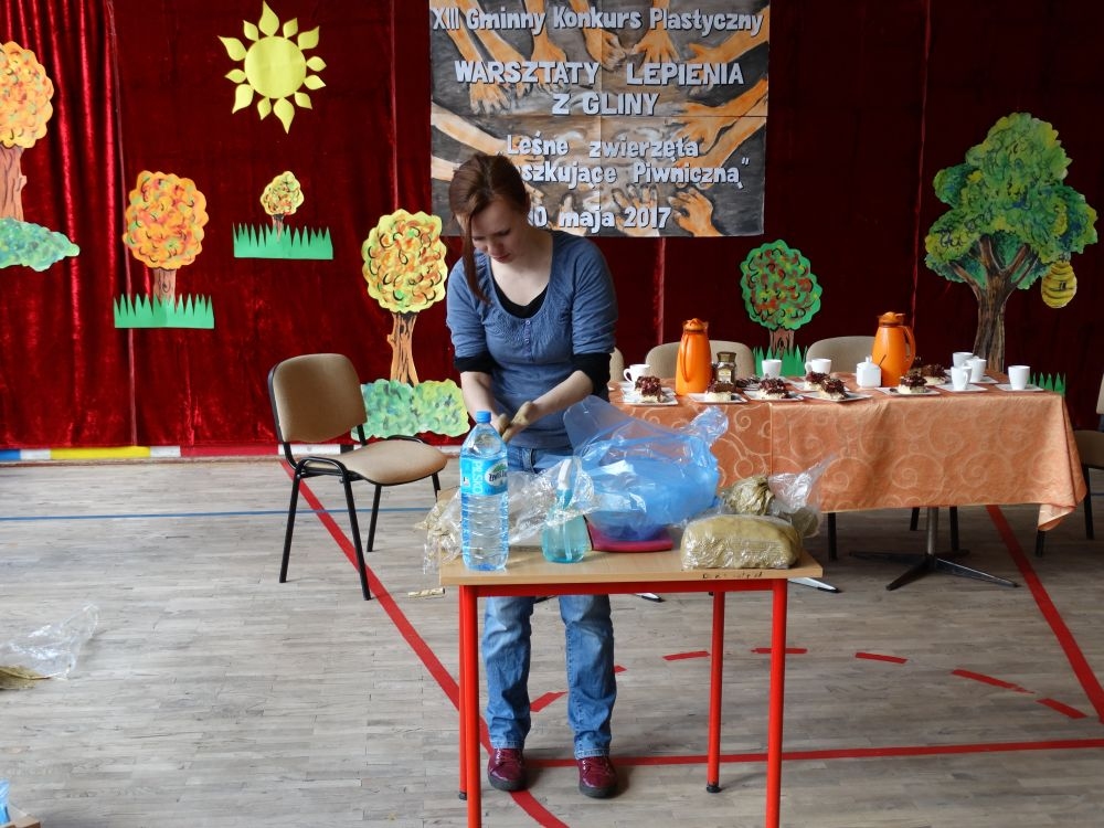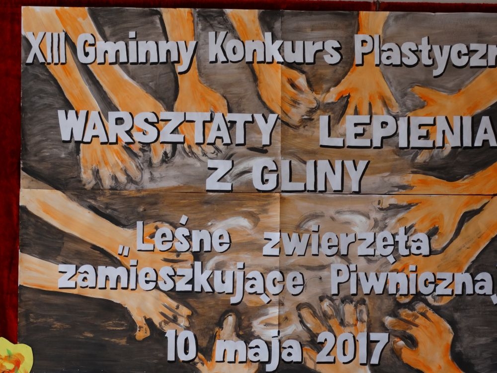 10 maja 2017 r. w Szkole Podstawowej Nr 2 w Piwnicznej - Zdroju odbył się XIII Gminny Konkurs Plastyczny. W tym roku jego temat brzmiał: „ Leśne zwierzęta zamieszkujące Piwniczną”. Ta edycja była wyjątkowa, ponieważ konkurs zainaugurowały warsztaty lepienia z gliny, poprowadzone przez panią Justynę Deryng – radną Miasta i Gminy Piwniczna – Zdrój, właścicielkę pracowni ceramicznej „Folkushka”. Nasz gość bardzo ciekawie przedstawił, w jaki sposób można tworzyć własne formy ceramiczne użytkowe i artystyczne. Zapoznał również z procesami obróbki ceramiki i zdobieniem. Po czym za dotknięciem dziecięcych dłoni, niczym za dotknięciem czarodziejskiej różdżki, bezkształtne kawałki gliny ożywały zamieniając się w lisy. Następnie spod rąk młodych artystów wyłaniały się: wiewiórki, sarenki, jeże, wilki, a nawet orzeł. Dzieci miały świetną zabawę, dzięki której odkrywały swoje możliwości, realizowały pomysły, cieszyły się tworzeniem rzeczy pięknych i niepowtarzalnych. Ten konkurs sprawił im autentyczną frajdę. Prace oceniało jury, zgodnie z tradycją w dwóch kategoriach: klasy I-III oraz IV-VI. Do konkursu przystąpiło 18 uczniów ze Szkół Podstawowych z Łomnicy, Piwnicznej, Głębokiego, Kosarzysk i Wierchomli. Komisja konkursowa w składzie: Barbara Paluchowa, Justyna Deryng i Monika Florek miała nie lada wyzwanie z ustaleniem zwycięzców. Każda praca była wyjątkowa i w swoim rodzaju. Przysporzyła komisji konkursowej dużych kłopotów z ogłoszeniem werdyktu. Wśród laureatów znaleźli się: