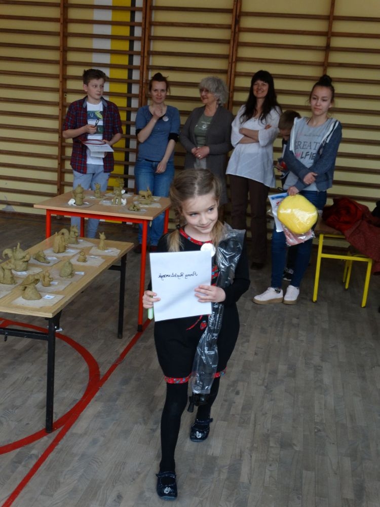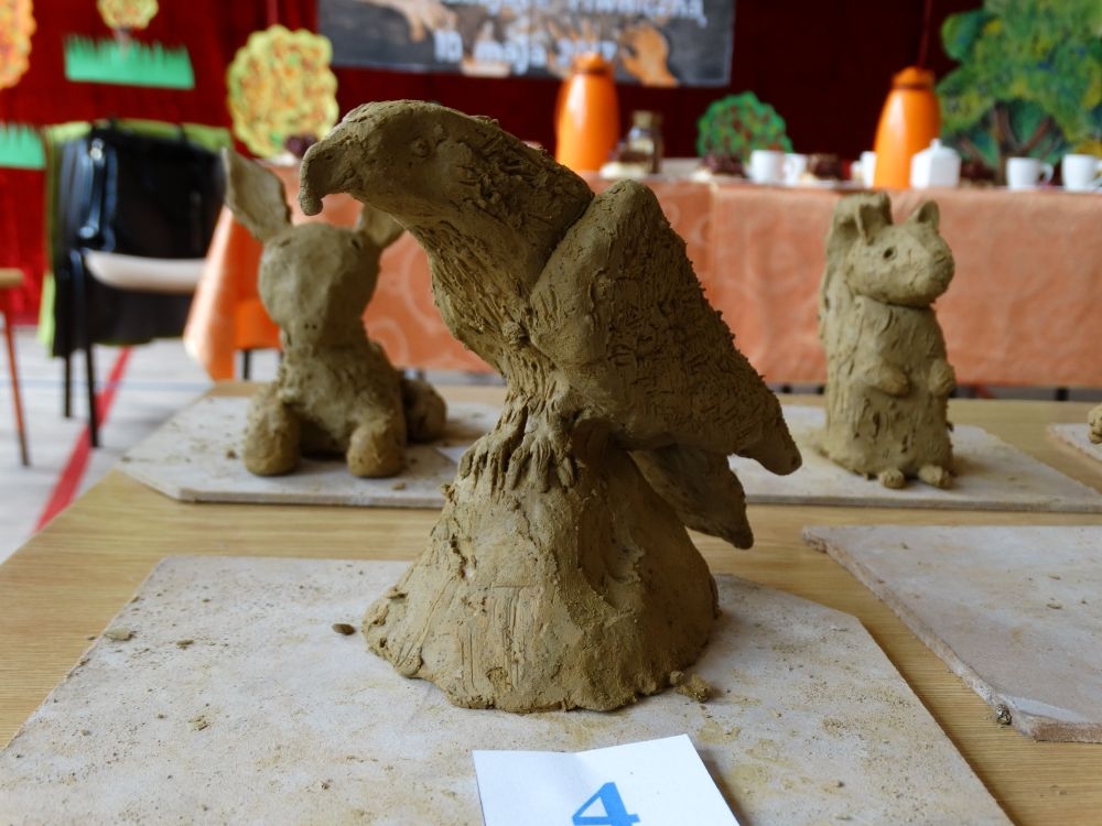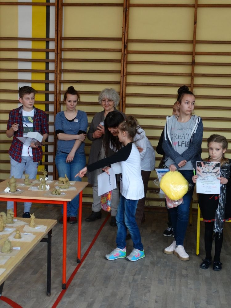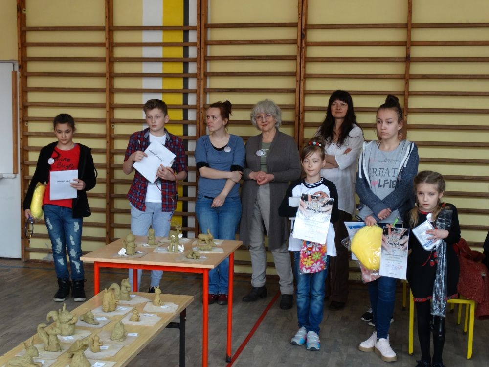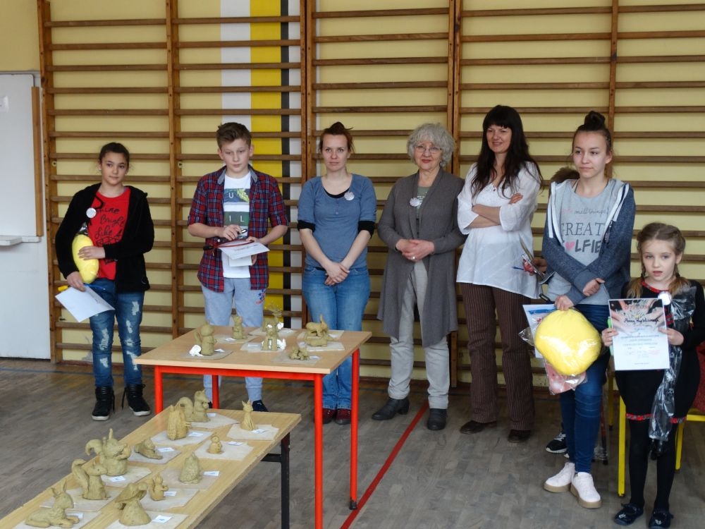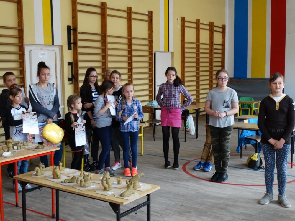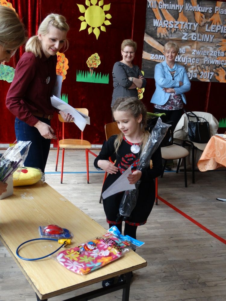 10 maja 2017 r. w Szkole Podstawowej Nr 2 w Piwnicznej - Zdroju odbył się XIII Gminny Konkurs Plastyczny. W tym roku jego temat brzmiał: „ Leśne zwierzęta zamieszkujące Piwniczną”. Ta edycja była wyjątkowa, ponieważ konkurs zainaugurowały warsztaty lepienia z gliny, poprowadzone przez panią Justynę Deryng – radną Miasta i Gminy Piwniczna – Zdrój, właścicielkę pracowni ceramicznej „Folkushka”. Nasz gość bardzo ciekawie przedstawił, w jaki sposób można tworzyć własne formy ceramiczne użytkowe i artystyczne. Zapoznał również z procesami obróbki ceramiki i zdobieniem. Po czym za dotknięciem dziecięcych dłoni, niczym za dotknięciem czarodziejskiej różdżki, bezkształtne kawałki gliny ożywały zamieniając się w lisy. Następnie spod rąk młodych artystów wyłaniały się: wiewiórki, sarenki, jeże, wilki, a nawet orzeł. Dzieci miały świetną zabawę, dzięki której odkrywały swoje możliwości, realizowały pomysły, cieszyły się tworzeniem rzeczy pięknych i niepowtarzalnych. Ten konkurs sprawił im autentyczną frajdę. Prace oceniało jury, zgodnie z tradycją w dwóch kategoriach: klasy I-III oraz IV-VI. Do konkursu przystąpiło 18 uczniów ze Szkół Podstawowych z Łomnicy, Piwnicznej, Głębokiego, Kosarzysk i Wierchomli. Komisja konkursowa w składzie: Barbara Paluchowa, Justyna Deryng i Monika Florek miała nie lada wyzwanie z ustaleniem zwycięzców. Każda praca była wyjątkowa i w swoim rodzaju. Przysporzyła komisji konkursowej dużych kłopotów z ogłoszeniem werdyktu. Wśród laureatów znaleźli się: