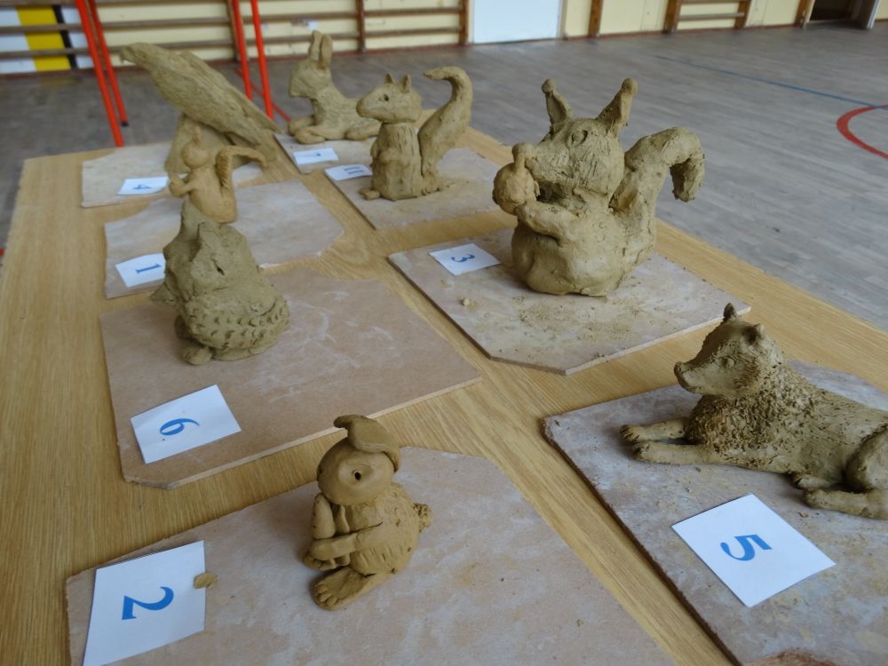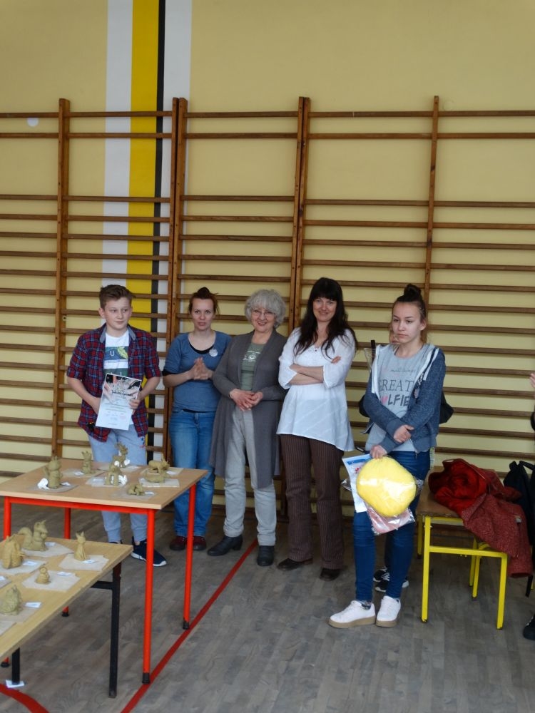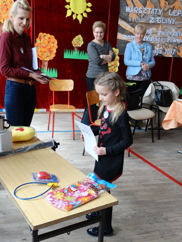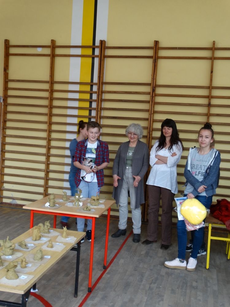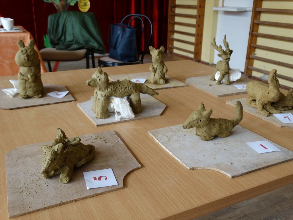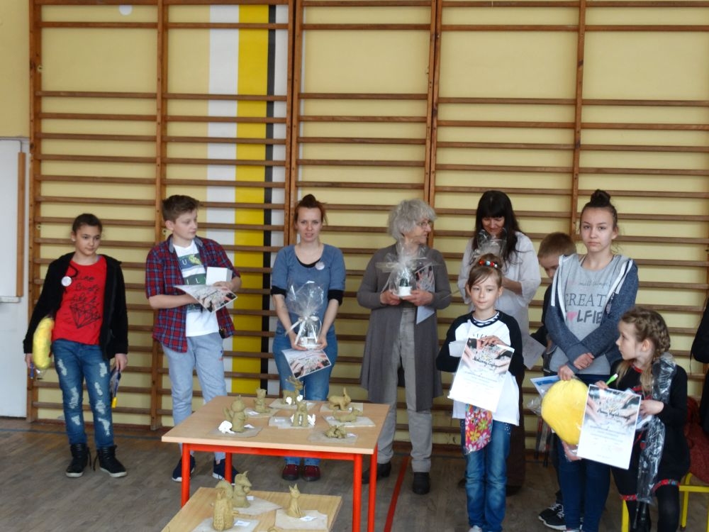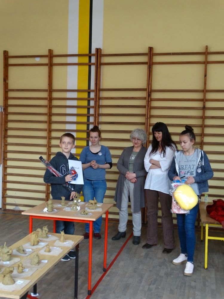 10 maja 2017 r. w Szkole Podstawowej Nr 2 w Piwnicznej - Zdroju odbył się XIII Gminny Konkurs Plastyczny. W tym roku jego temat brzmiał: „ Leśne zwierzęta zamieszkujące Piwniczną”. Ta edycja była wyjątkowa, ponieważ konkurs zainaugurowały warsztaty lepienia z gliny, poprowadzone przez panią Justynę Deryng – radną Miasta i Gminy Piwniczna – Zdrój, właścicielkę pracowni ceramicznej „Folkushka”. Nasz gość bardzo ciekawie przedstawił, w jaki sposób można tworzyć własne formy ceramiczne użytkowe i artystyczne. Zapoznał również z procesami obróbki ceramiki i zdobieniem. Po czym za dotknięciem dziecięcych dłoni, niczym za dotknięciem czarodziejskiej różdżki, bezkształtne kawałki gliny ożywały zamieniając się w lisy. Następnie spod rąk młodych artystów wyłaniały się: wiewiórki, sarenki, jeże, wilki, a nawet orzeł. Dzieci miały świetną zabawę, dzięki której odkrywały swoje możliwości, realizowały pomysły, cieszyły się tworzeniem rzeczy pięknych i niepowtarzalnych. Ten konkurs sprawił im autentyczną frajdę. Prace oceniało jury, zgodnie z tradycją w dwóch kategoriach: klasy I-III oraz IV-VI. Do konkursu przystąpiło 18 uczniów ze Szkół Podstawowych z Łomnicy, Piwnicznej, Głębokiego, Kosarzysk i Wierchomli. Komisja konkursowa w składzie: Barbara Paluchowa, Justyna Deryng i Monika Florek miała nie lada wyzwanie z ustaleniem zwycięzców. Każda praca była wyjątkowa i w swoim rodzaju. Przysporzyła komisji konkursowej dużych kłopotów z ogłoszeniem werdyktu. Wśród laureatów znaleźli się: