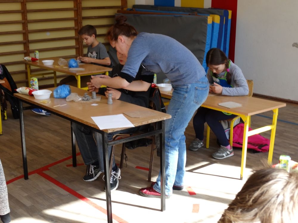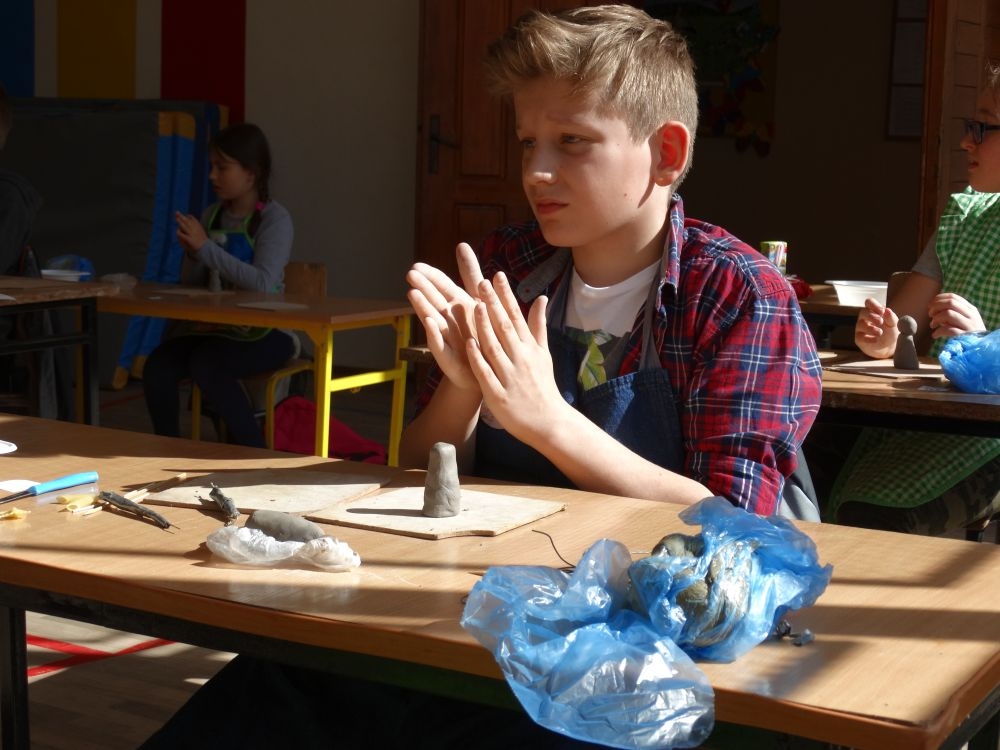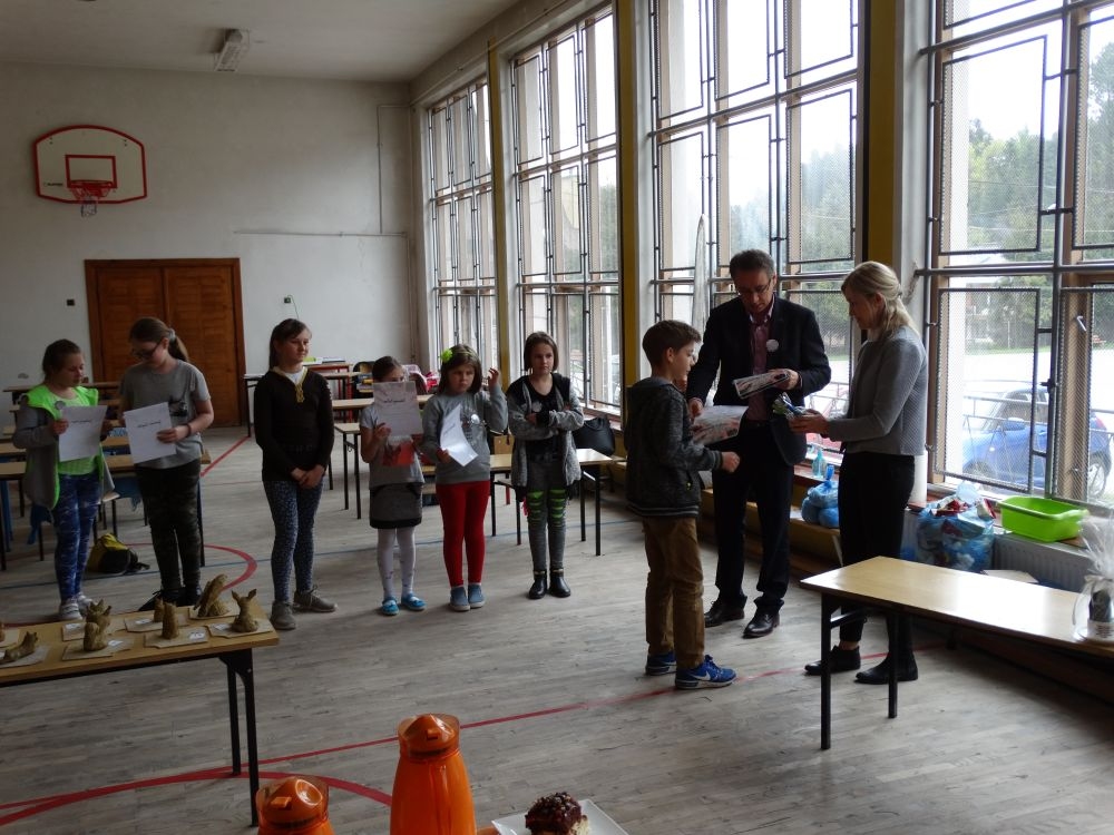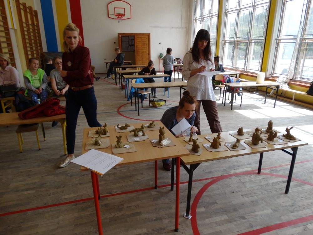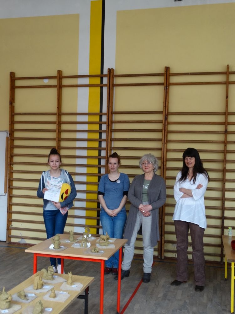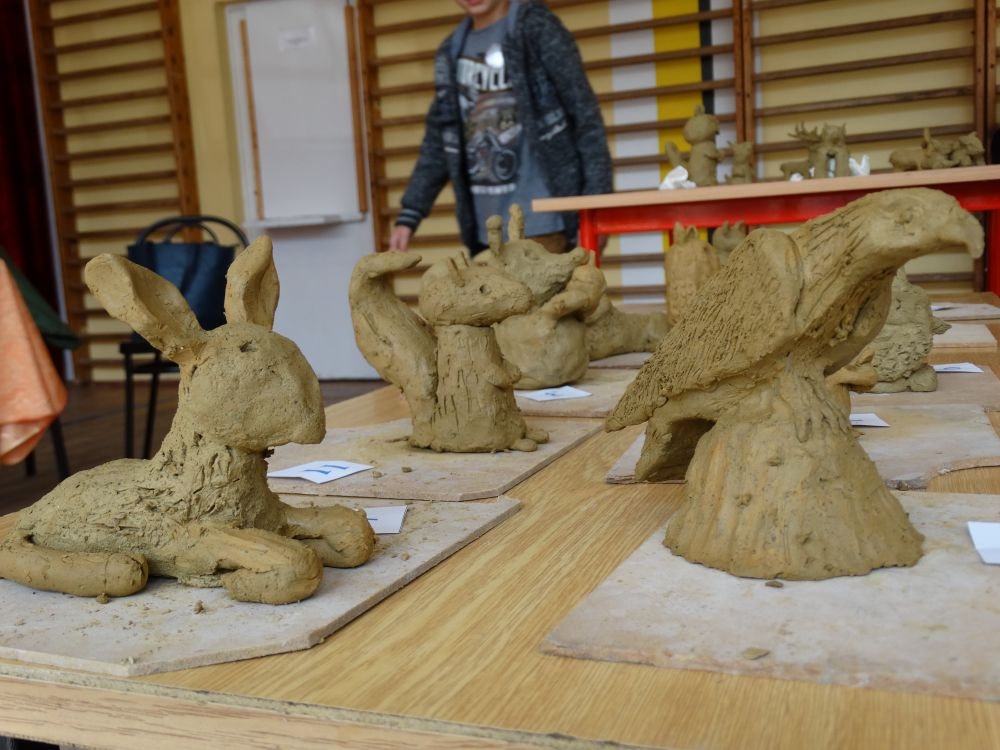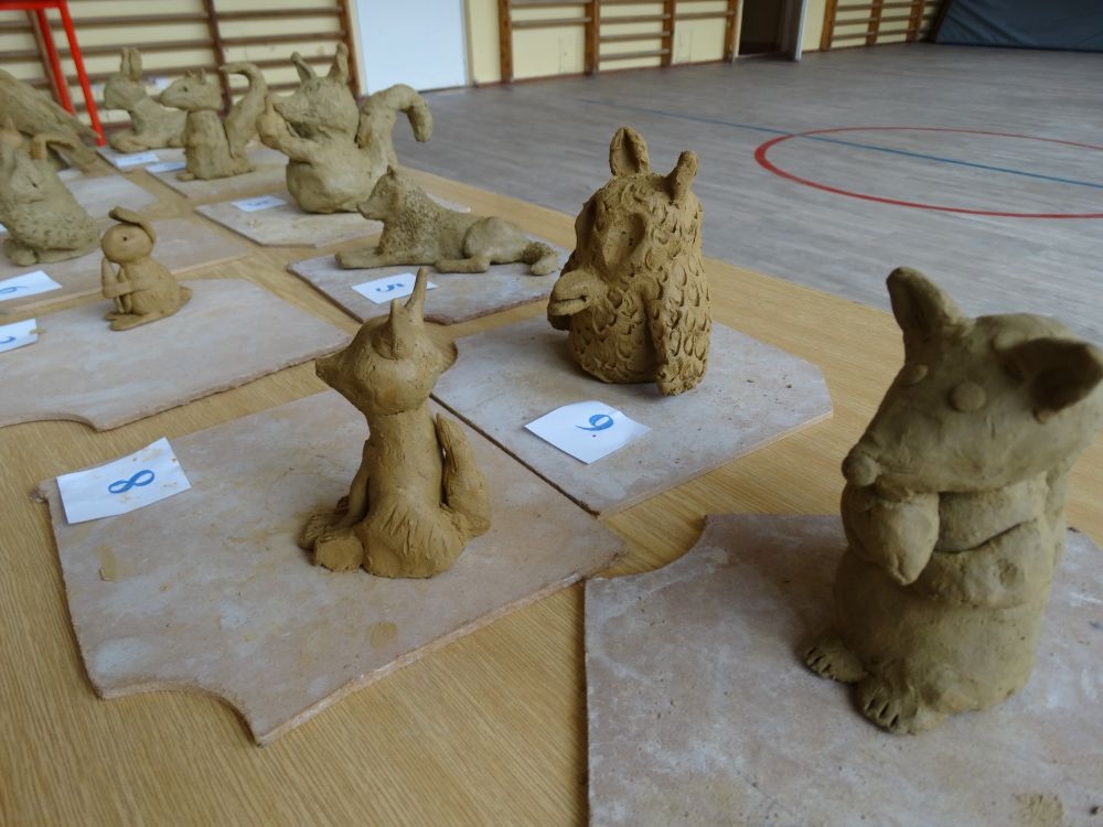 10 maja 2017 r. w Szkole Podstawowej Nr 2 w Piwnicznej - Zdroju odbył się XIII Gminny Konkurs Plastyczny. W tym roku jego temat brzmiał: „ Leśne zwierzęta zamieszkujące Piwniczną”. Ta edycja była wyjątkowa, ponieważ konkurs zainaugurowały warsztaty lepienia z gliny, poprowadzone przez panią Justynę Deryng – radną Miasta i Gminy Piwniczna – Zdrój, właścicielkę pracowni ceramicznej „Folkushka”. Nasz gość bardzo ciekawie przedstawił, w jaki sposób można tworzyć własne formy ceramiczne użytkowe i artystyczne. Zapoznał również z procesami obróbki ceramiki i zdobieniem. Po czym za dotknięciem dziecięcych dłoni, niczym za dotknięciem czarodziejskiej różdżki, bezkształtne kawałki gliny ożywały zamieniając się w lisy. Następnie spod rąk młodych artystów wyłaniały się: wiewiórki, sarenki, jeże, wilki, a nawet orzeł. Dzieci miały świetną zabawę, dzięki której odkrywały swoje możliwości, realizowały pomysły, cieszyły się tworzeniem rzeczy pięknych i niepowtarzalnych. Ten konkurs sprawił im autentyczną frajdę. Prace oceniało jury, zgodnie z tradycją w dwóch kategoriach: klasy I-III oraz IV-VI. Do konkursu przystąpiło 18 uczniów ze Szkół Podstawowych z Łomnicy, Piwnicznej, Głębokiego, Kosarzysk i Wierchomli. Komisja konkursowa w składzie: Barbara Paluchowa, Justyna Deryng i Monika Florek miała nie lada wyzwanie z ustaleniem zwycięzców. Każda praca była wyjątkowa i w swoim rodzaju. Przysporzyła komisji konkursowej dużych kłopotów z ogłoszeniem werdyktu. Wśród laureatów znaleźli się: