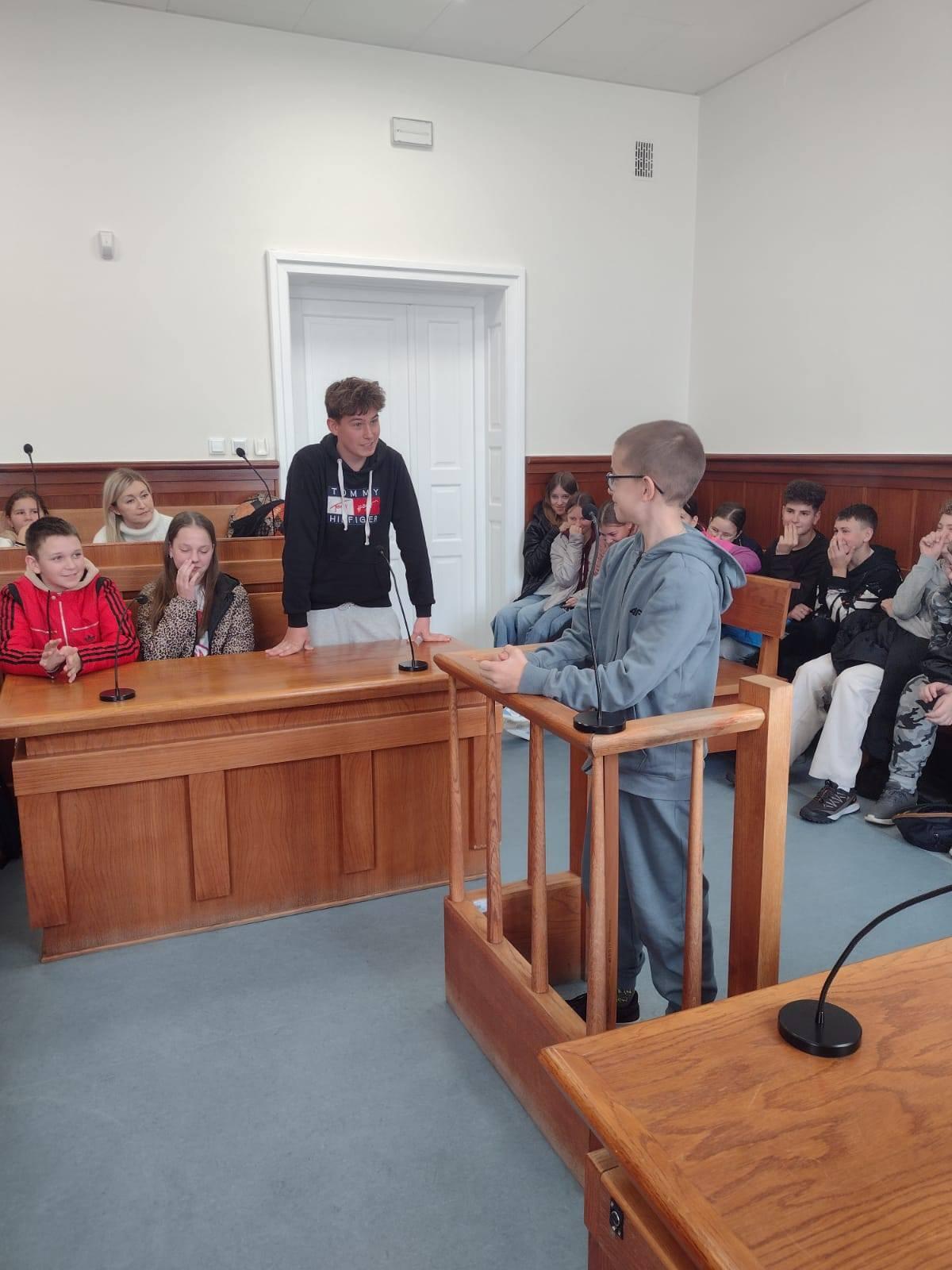 Dnia 13.11.2025r. odbyła się wycieczka do Sądu Rejonowego w Muszynie. Brali w niej udział uczniowie klasy VI, VII i VIII. Celem wycieczki było zapoznanie uczestników z zadaniami i celami Sądu Rejonowego, poznanie organizacji pracy sądu. Podczas prelekcji uczniowie dowiedzieli się, że małoletni również mogą ponosić odpowiedzialność za czyny karalne lub inne przewinienia. Były poruszane także kwestie demoralizacji. Na zakończenie odbyły się warsztaty, gdzie uczniowie wcielali się w różne role - sędziego, obrońcy, pokrzywdzonego, oskarżonego.