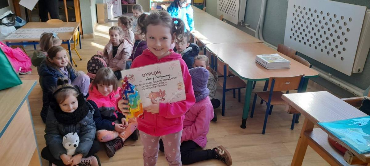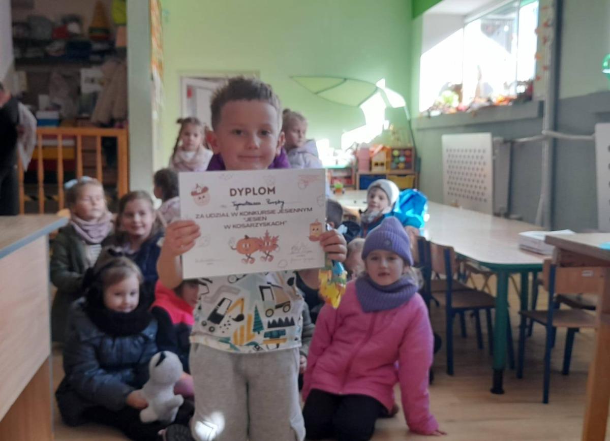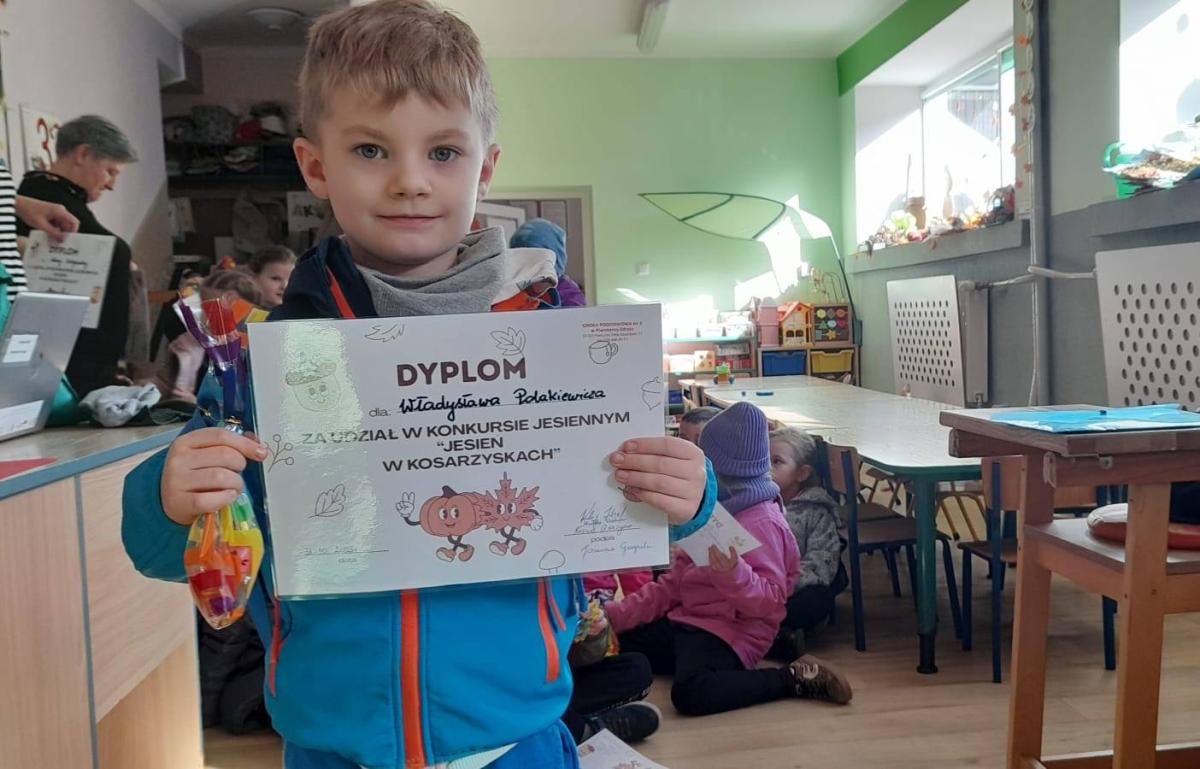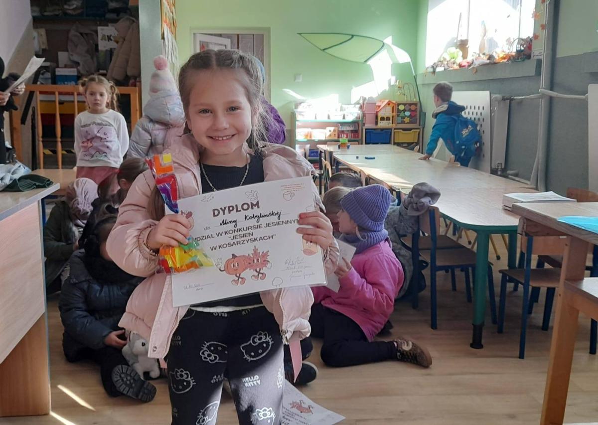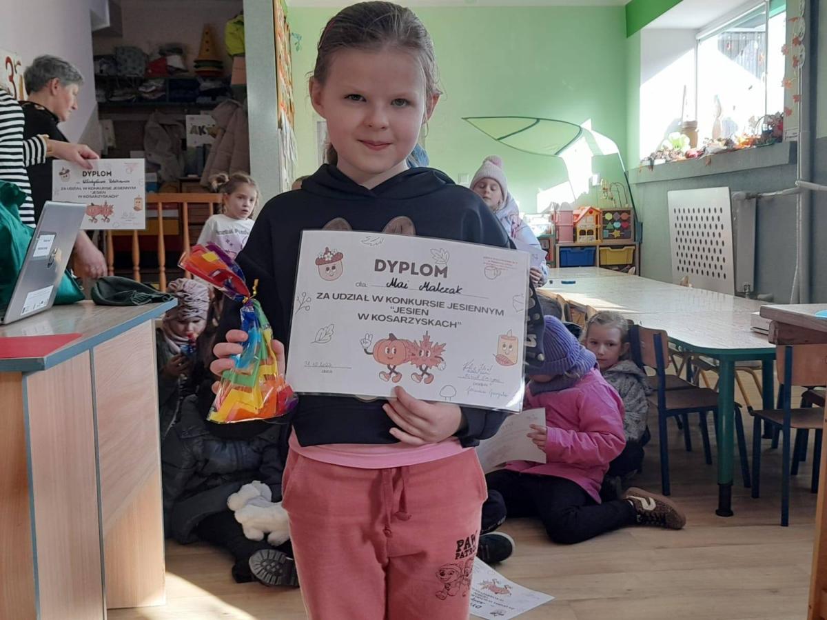 Każde dziecko otrzymało pamiątkowy dyplom oraz drobną nagrodę. Gratulujemy wszystkim uczestnikom i dziękujemy za zaangażowanie w tworzenie prac oddających urok jesieni w Kosarzyskach!
