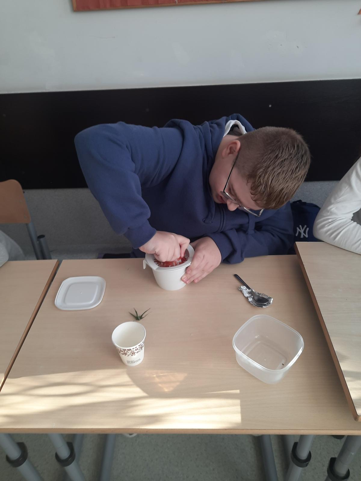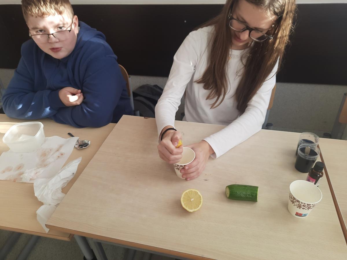 Drukuj Powrót do poprzedniej strony Witamina C - badanie zawartości 06.11.2025 18:35 Treść WITAMINA C Na lekcji biologii, uczniowie klasy VII mieli za zadanie wykonać doświadczenie, które miało na celu zbadać zawartość witaminy C w sokach z owoców i warzyw A.J.