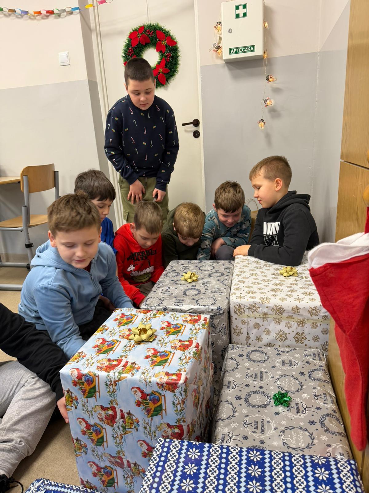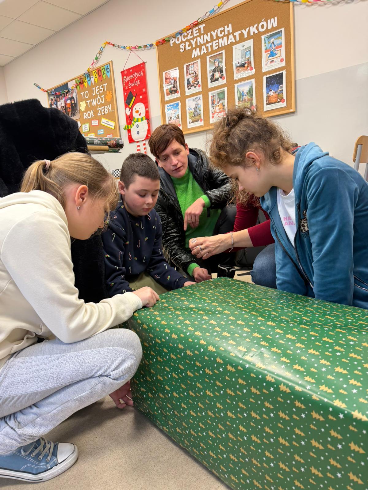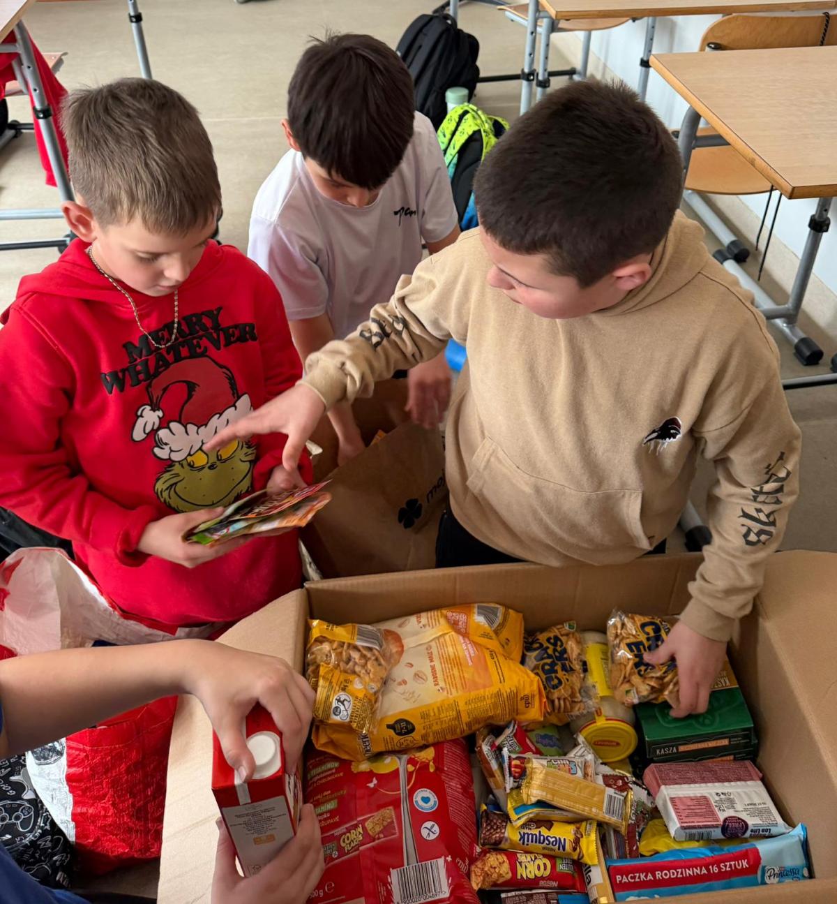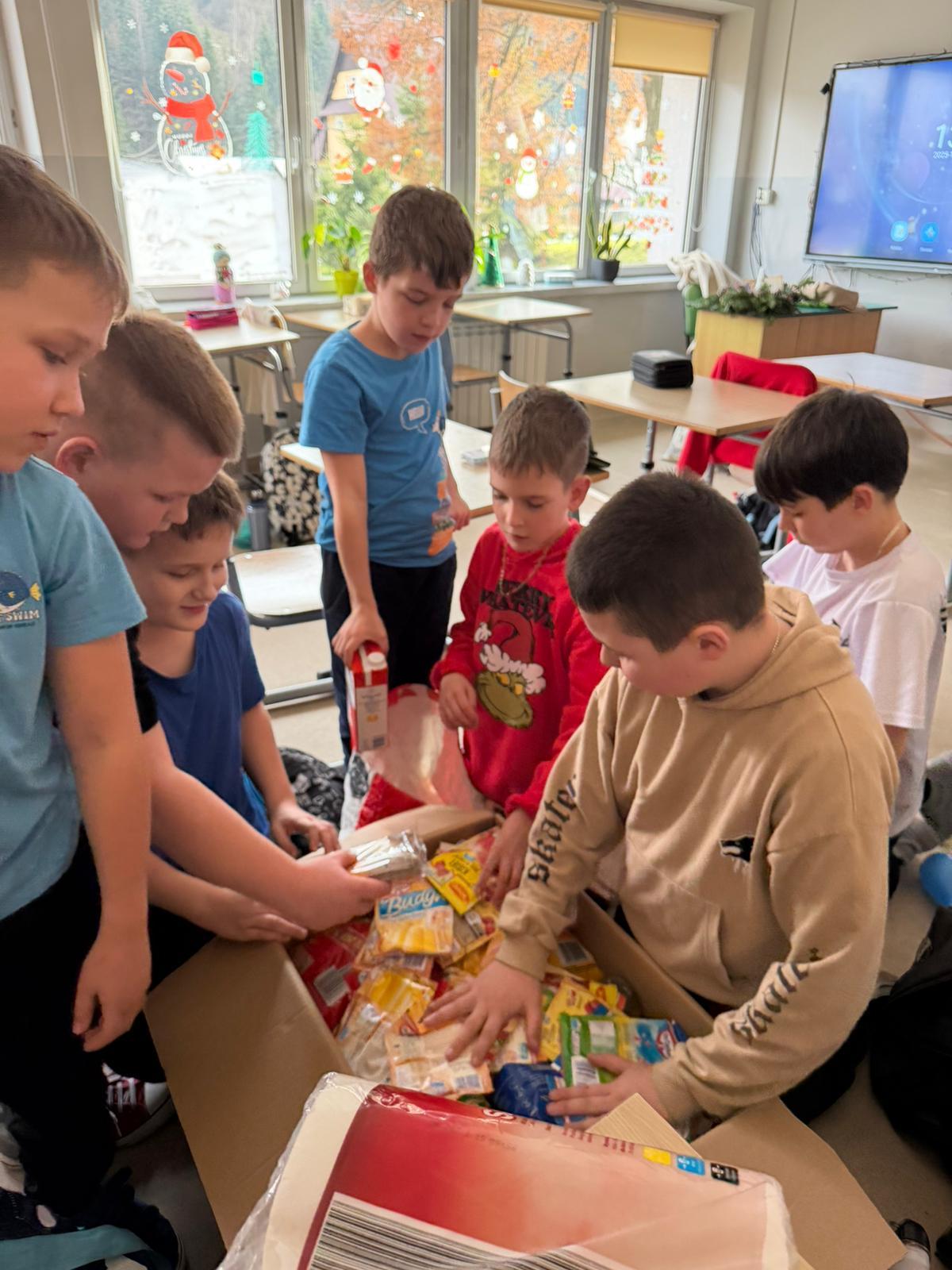 Podczas zajęć z wychowawcą cała klasa, przy ogromnym wsparciu rodziców, wspólnie kompletowała i przygotowywała podarunki. Uczniowie starannie ozdobili paczki, dbając o to, by nie tylko zaspokoić potrzeby rodziny, lecz także sprawić jej radość i dać poczucie, że ktoś o niej pamięta.