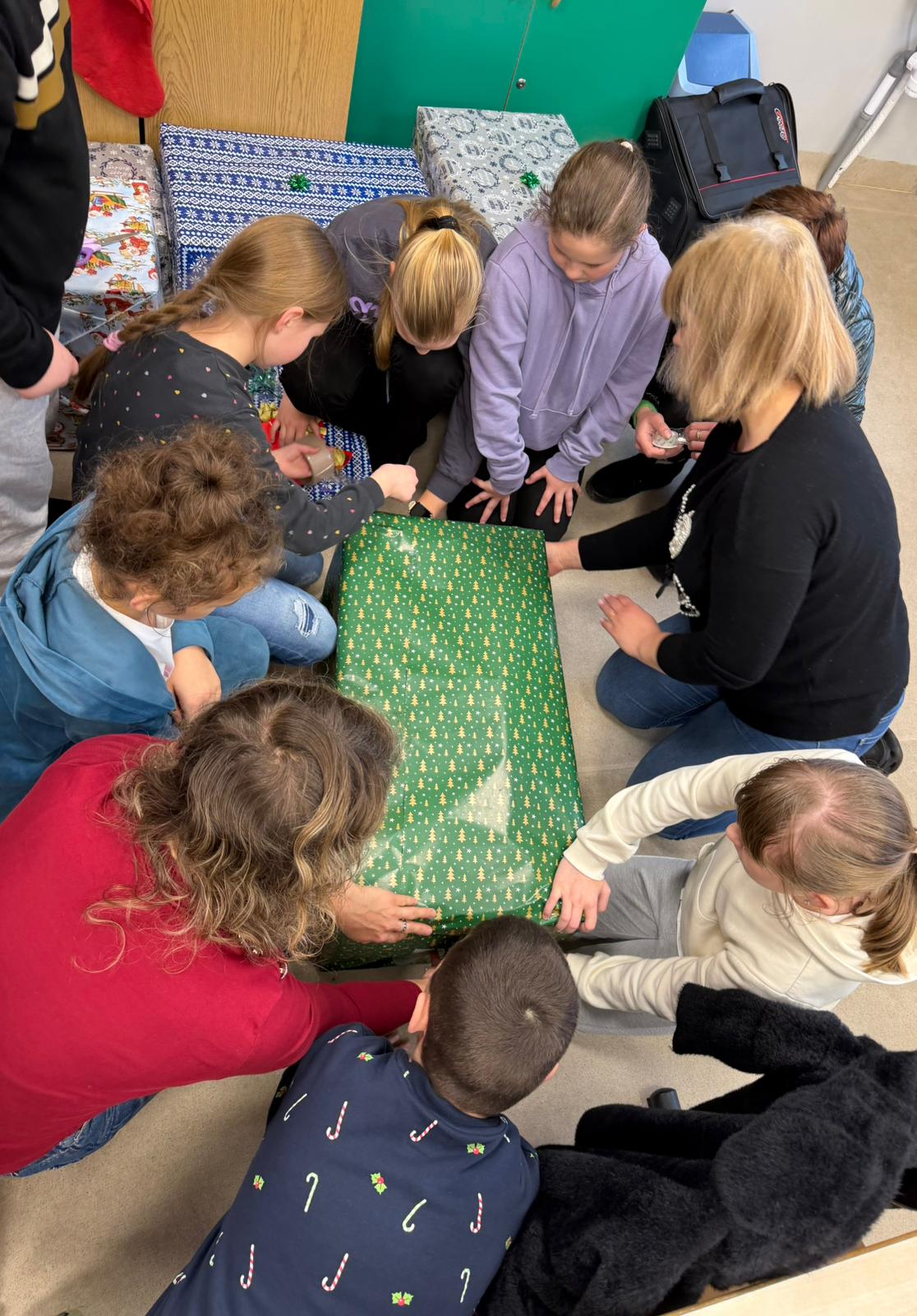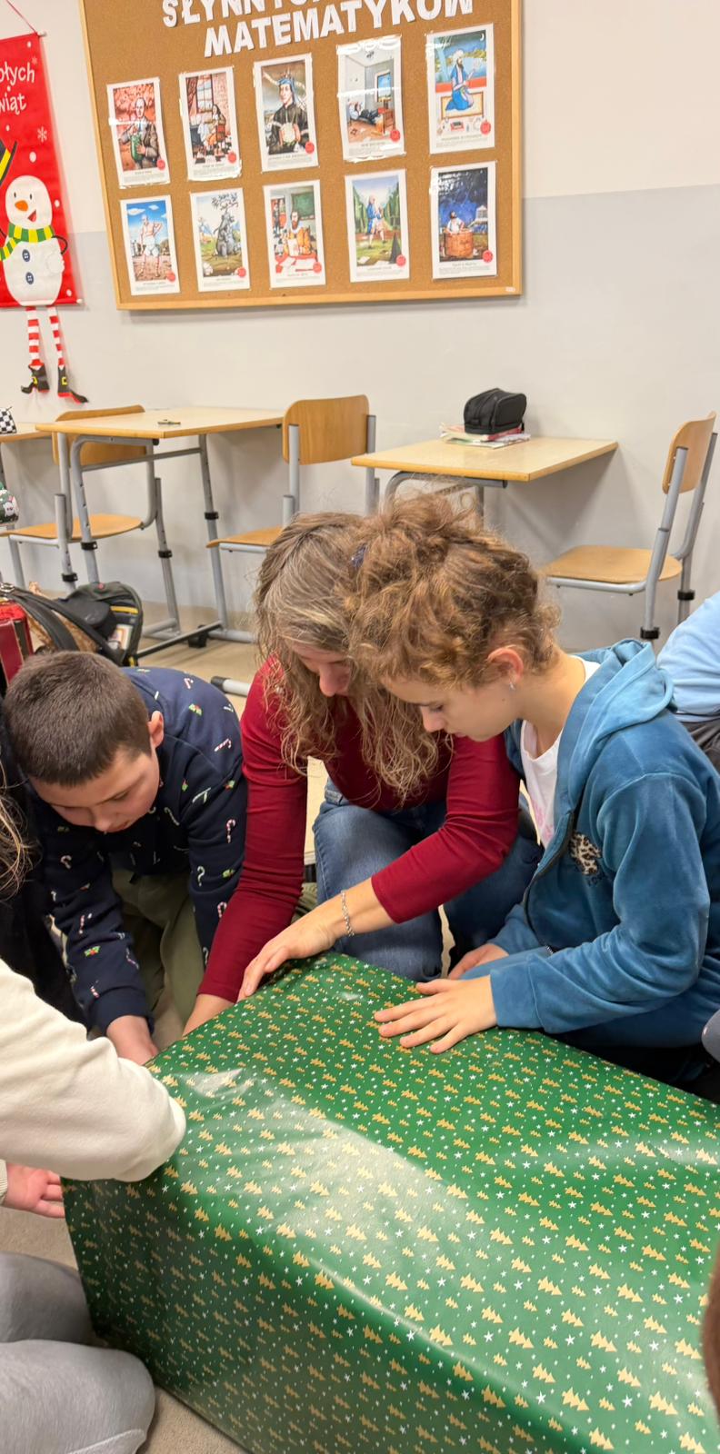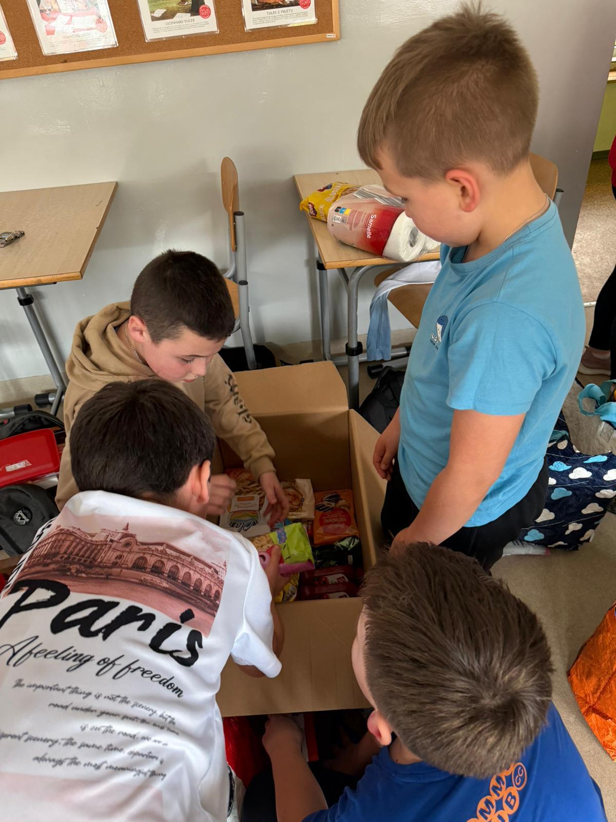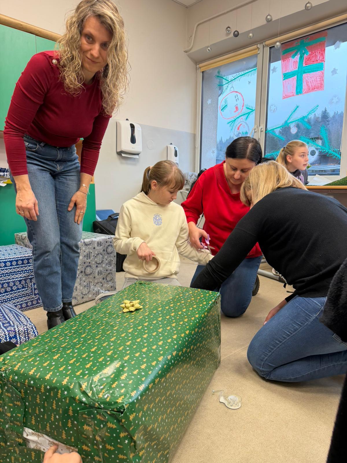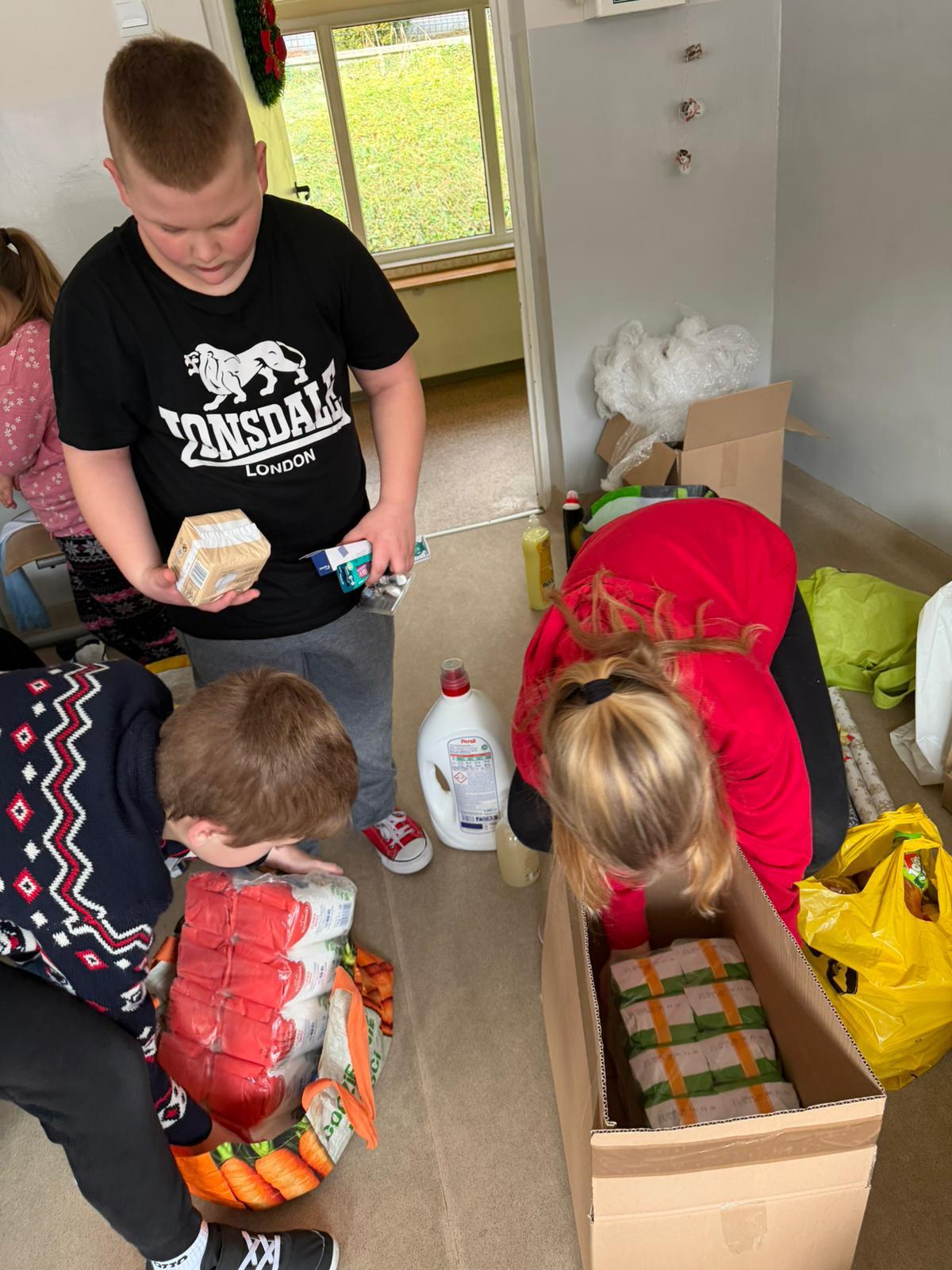 Podczas zajęć z wychowawcą cała klasa, przy ogromnym wsparciu rodziców, wspólnie kompletowała i przygotowywała podarunki. Uczniowie starannie ozdobili paczki, dbając o to, by nie tylko zaspokoić potrzeby rodziny, lecz także sprawić jej radość i dać poczucie, że ktoś o niej pamięta.