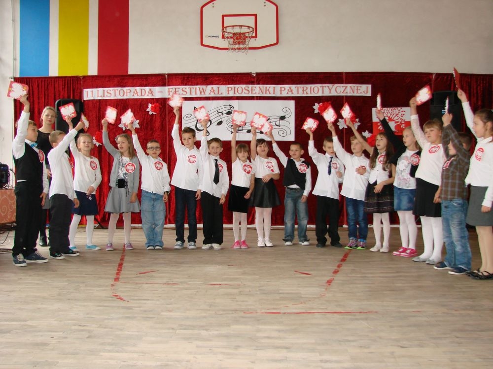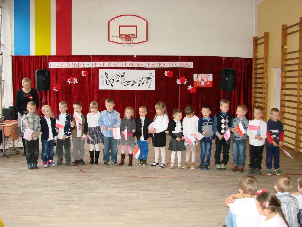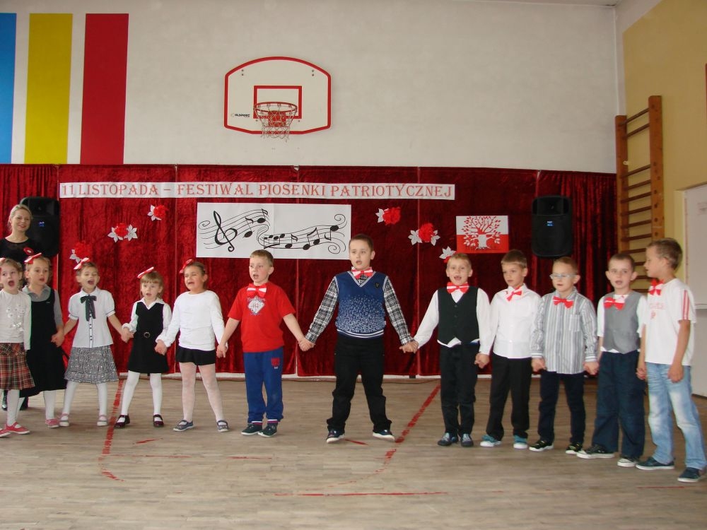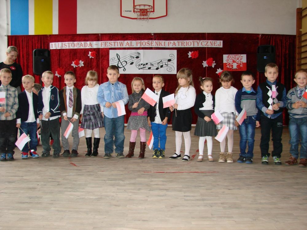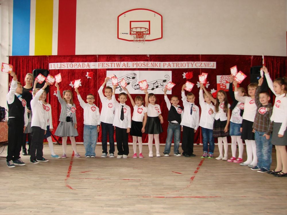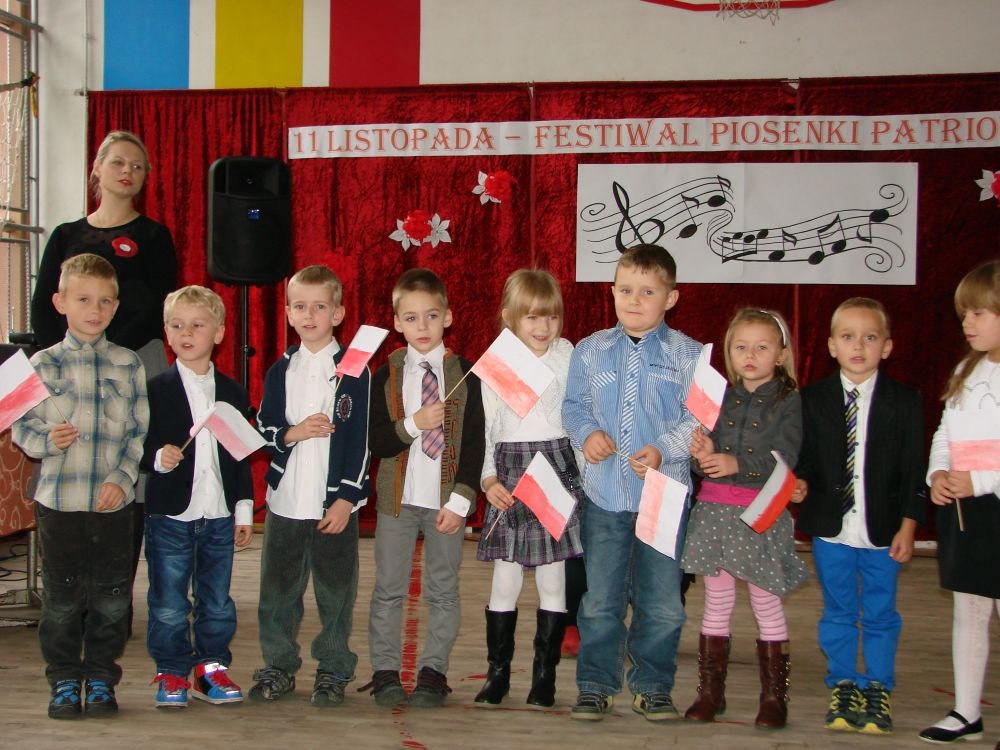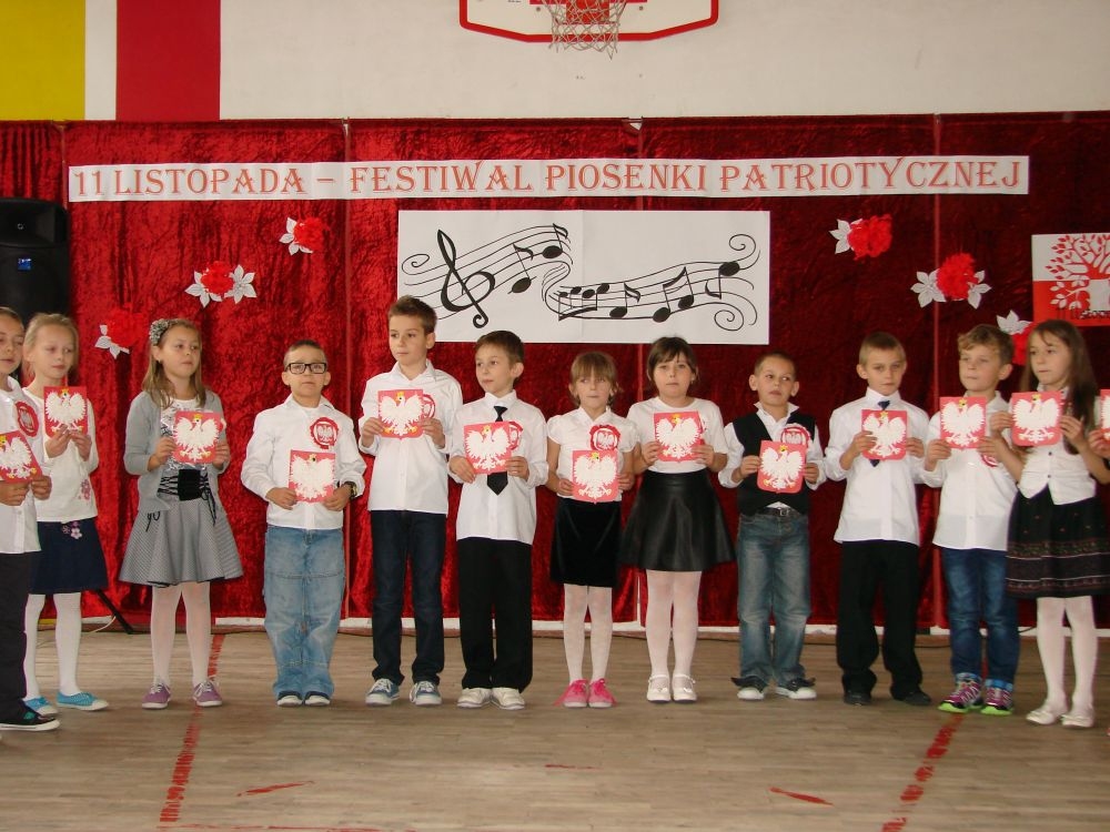 11 listopada obchodzimy Święto Niepodległości. Tradycyjnie, jak co roku, społeczność Szkoły Podstawowej w Kosarzyskach aktywnie włączyła się w obchody 96 rocznicy odzyskania przez Polskę niepodległości. Dzień ten świętowaliśmy w poczuciu radości i dumy. Cała społeczność szkolna przyszła w tym dniu ubrana na galowo, aby podkreślić ważność uroczystości. Wychowawcy zadbali również o dodatkowe elementy - kotyliony, flagi, czy wstążeczki w kolorach biało - czerwonych. W tym roku uroczystość przebiegała inaczej niż zwykle. Pani Aleksandra Dzięgiel i pani Monika Łączek - Bołoz zaproponowały, aby po raz pierwszy odbył się Festiwal Piosenki Patriotycznej. Już dwa tygodnie przed uroczystością wszyscy uczniowie naszej szkoły poznawali teksty i melodie piosenek. Aż w końcu nadszedł ten oczekiwany przez wszystkich dzień, w którym odbyła się niecodzienna lekcja historii. W festiwalu wzięły udział wszystkie dzieci, począwszy od przedszkola, poprzez zerówkę, klasy I-III oraz klasy IV-VI. Repertuar spotkania był bardzo różnorodny. Całą uroczystość rozpoczęliśmy wspólnie odśpiewanym Mazurkiem Dąbrowskiego. Następnie uczniowie śpiewali pieśni artystyczne, patriotyczne i legionowe, które były przeplatane wierszami oraz ważnymi wydarzeniami z dziejów Polski. Głos zabrał również Pan Dyrektor Marian Dobosz, który podkreślił znaczenie i ważność listopadowego święta. Wspomniał też o symbolu miłości do ojczyzny, walki o wolność, czy symbolu wiary i zwycięstwa. Na zakończenie wszyscy uczestnicy uroczystości zaśpiewali "Rotę", wspólnie "zanosząc błaganie: Tak nam dopomóż Bóg".
