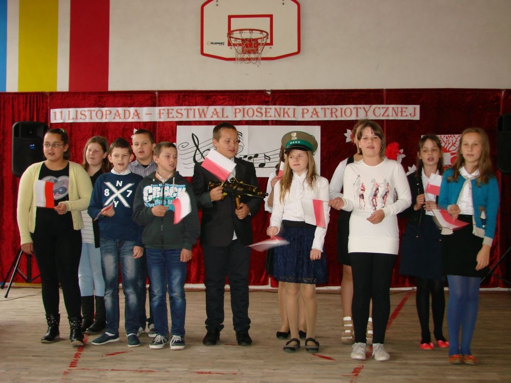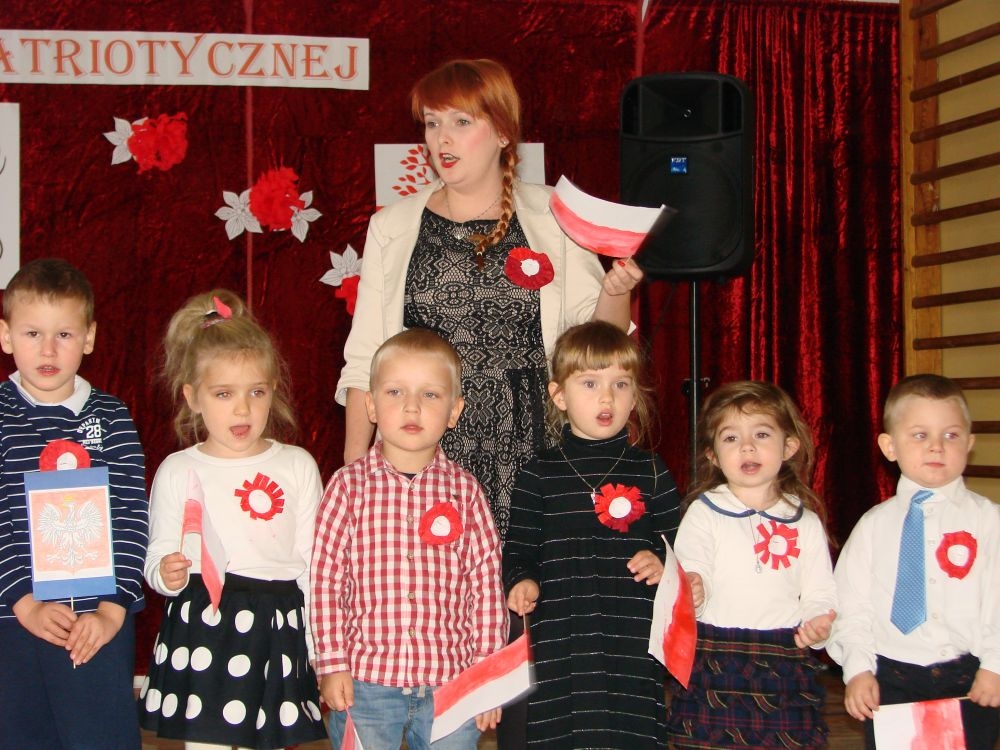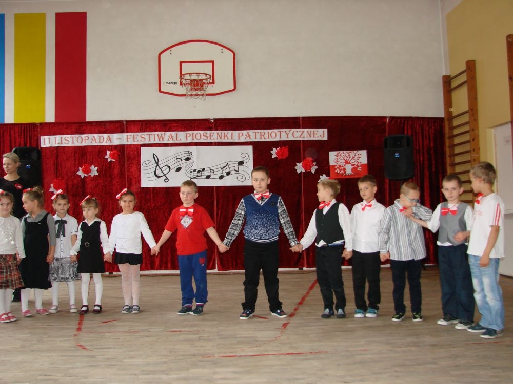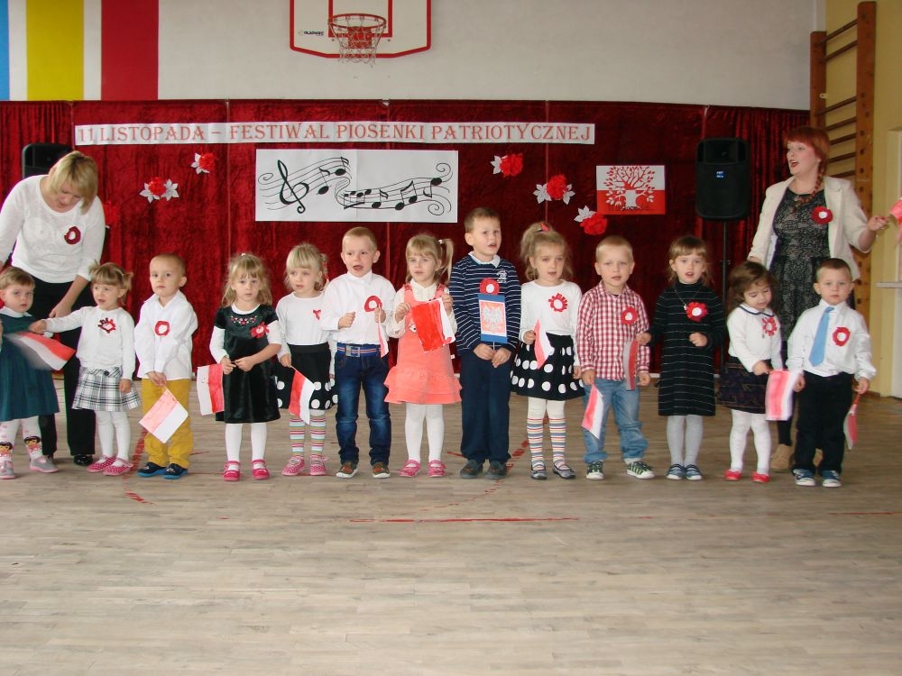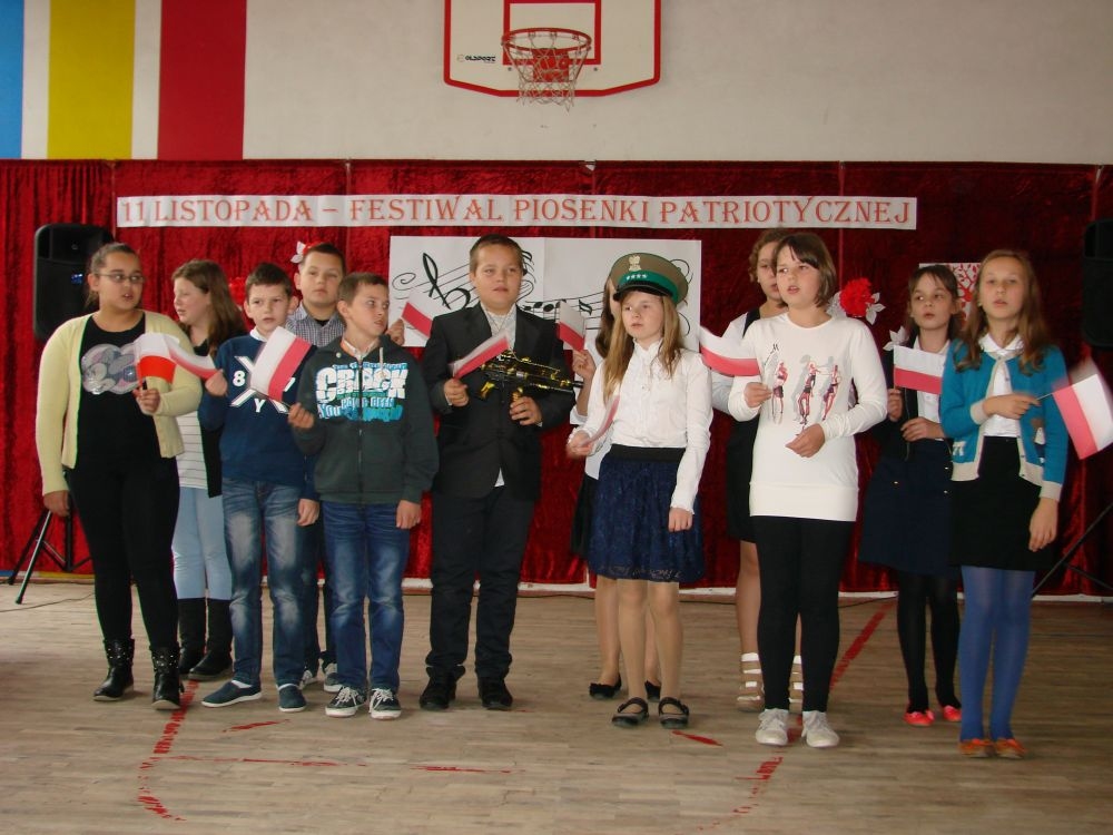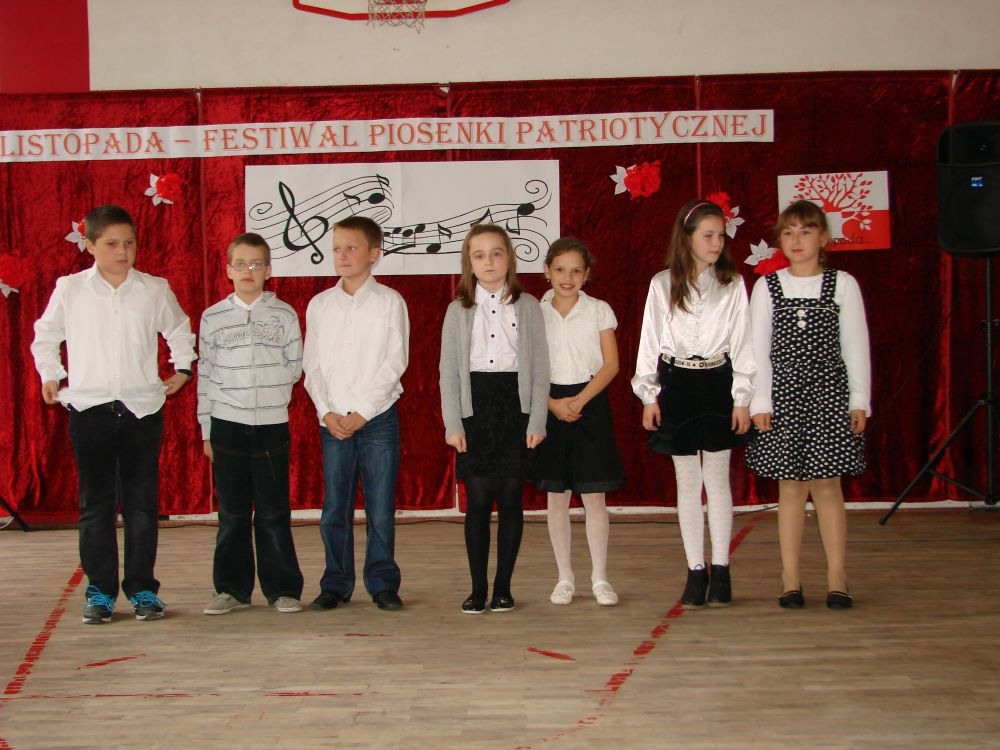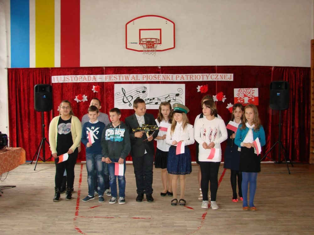 11 listopada obchodzimy Święto Niepodległości. Tradycyjnie, jak co roku, społeczność Szkoły Podstawowej w Kosarzyskach aktywnie włączyła się w obchody 96 rocznicy odzyskania przez Polskę niepodległości. Dzień ten świętowaliśmy w poczuciu radości i dumy. Cała społeczność szkolna przyszła w tym dniu ubrana na galowo, aby podkreślić ważność uroczystości. Wychowawcy zadbali również o dodatkowe elementy - kotyliony, flagi, czy wstążeczki w kolorach biało - czerwonych. W tym roku uroczystość przebiegała inaczej niż zwykle. Pani Aleksandra Dzięgiel i pani Monika Łączek - Bołoz zaproponowały, aby po raz pierwszy odbył się Festiwal Piosenki Patriotycznej. Już dwa tygodnie przed uroczystością wszyscy uczniowie naszej szkoły poznawali teksty i melodie piosenek. Aż w końcu nadszedł ten oczekiwany przez wszystkich dzień, w którym odbyła się niecodzienna lekcja historii. W festiwalu wzięły udział wszystkie dzieci, począwszy od przedszkola, poprzez zerówkę, klasy I-III oraz klasy IV-VI. Repertuar spotkania był bardzo różnorodny. Całą uroczystość rozpoczęliśmy wspólnie odśpiewanym Mazurkiem Dąbrowskiego. Następnie uczniowie śpiewali pieśni artystyczne, patriotyczne i legionowe, które były przeplatane wierszami oraz ważnymi wydarzeniami z dziejów Polski. Głos zabrał również Pan Dyrektor Marian Dobosz, który podkreślił znaczenie i ważność listopadowego święta. Wspomniał też o symbolu miłości do ojczyzny, walki o wolność, czy symbolu wiary i zwycięstwa. Na zakończenie wszyscy uczestnicy uroczystości zaśpiewali "Rotę", wspólnie "zanosząc błaganie: Tak nam dopomóż Bóg".