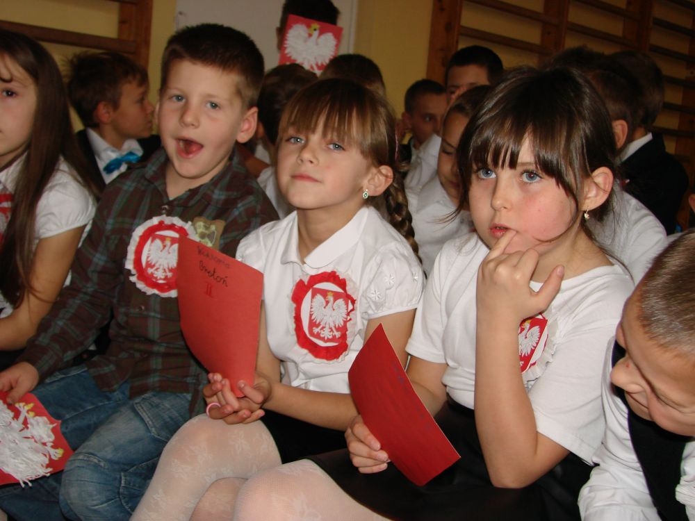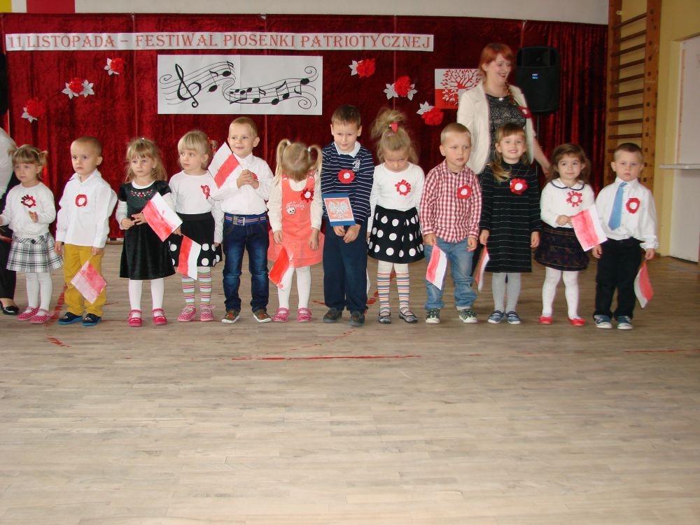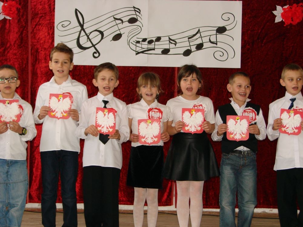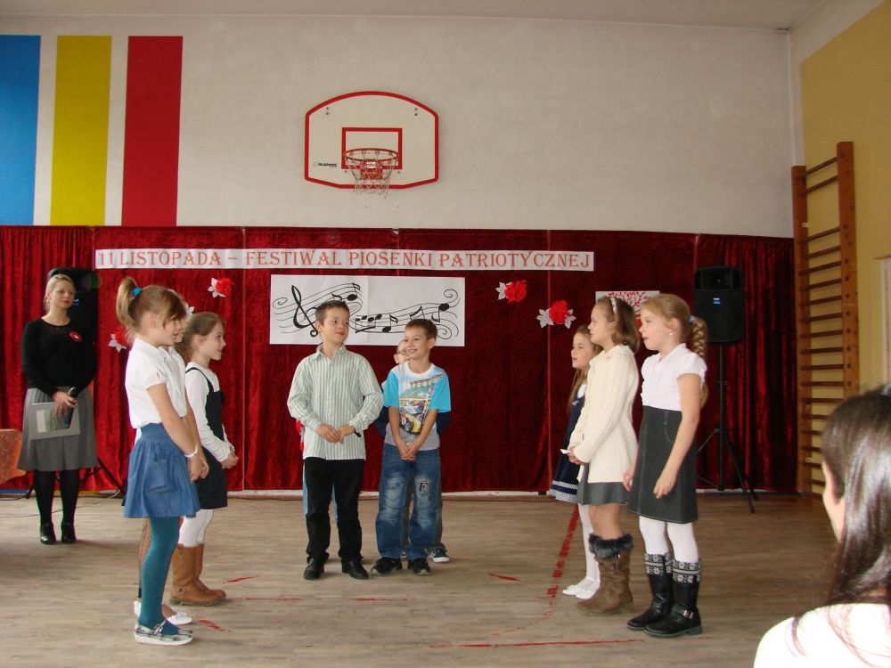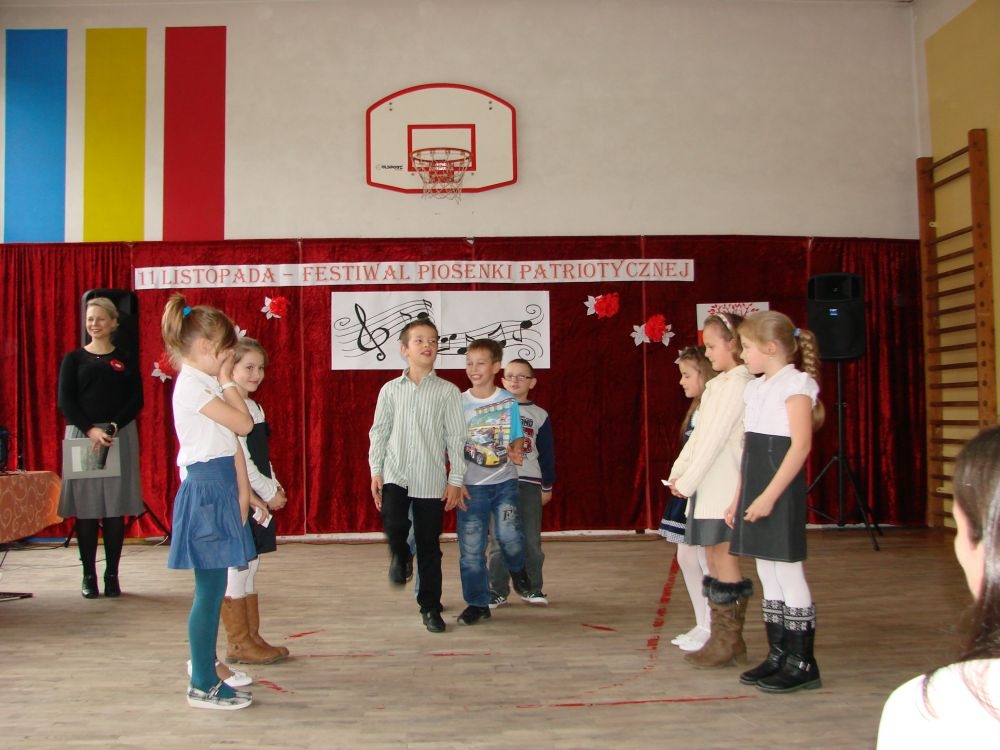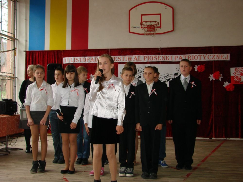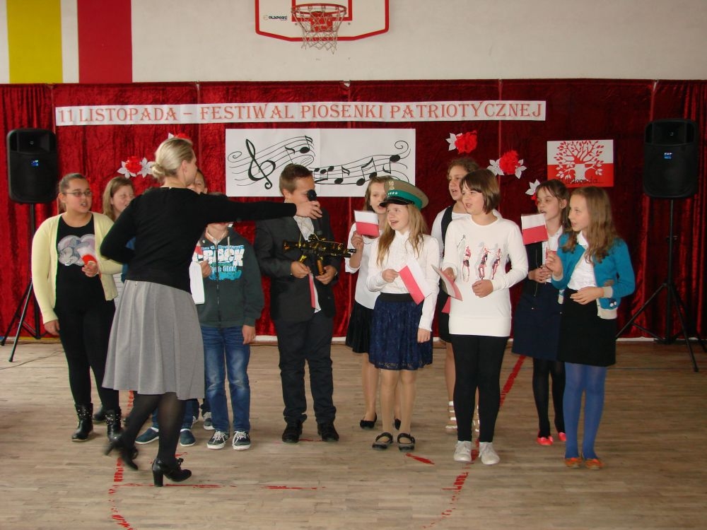 11 listopada obchodzimy Święto Niepodległości. Tradycyjnie, jak co roku, społeczność Szkoły Podstawowej w Kosarzyskach aktywnie włączyła się w obchody 96 rocznicy odzyskania przez Polskę niepodległości. Dzień ten świętowaliśmy w poczuciu radości i dumy. Cała społeczność szkolna przyszła w tym dniu ubrana na galowo, aby podkreślić ważność uroczystości. Wychowawcy zadbali również o dodatkowe elementy - kotyliony, flagi, czy wstążeczki w kolorach biało - czerwonych. W tym roku uroczystość przebiegała inaczej niż zwykle. Pani Aleksandra Dzięgiel i pani Monika Łączek - Bołoz zaproponowały, aby po raz pierwszy odbył się Festiwal Piosenki Patriotycznej. Już dwa tygodnie przed uroczystością wszyscy uczniowie naszej szkoły poznawali teksty i melodie piosenek. Aż w końcu nadszedł ten oczekiwany przez wszystkich dzień, w którym odbyła się niecodzienna lekcja historii. W festiwalu wzięły udział wszystkie dzieci, począwszy od przedszkola, poprzez zerówkę, klasy I-III oraz klasy IV-VI. Repertuar spotkania był bardzo różnorodny. Całą uroczystość rozpoczęliśmy wspólnie odśpiewanym Mazurkiem Dąbrowskiego. Następnie uczniowie śpiewali pieśni artystyczne, patriotyczne i legionowe, które były przeplatane wierszami oraz ważnymi wydarzeniami z dziejów Polski. Głos zabrał również Pan Dyrektor Marian Dobosz, który podkreślił znaczenie i ważność listopadowego święta. Wspomniał też o symbolu miłości do ojczyzny, walki o wolność, czy symbolu wiary i zwycięstwa. Na zakończenie wszyscy uczestnicy uroczystości zaśpiewali "Rotę", wspólnie "zanosząc błaganie: Tak nam dopomóż Bóg".