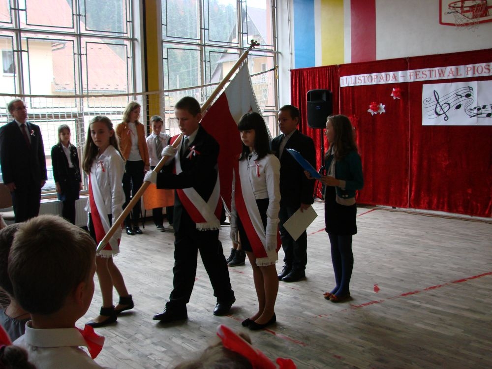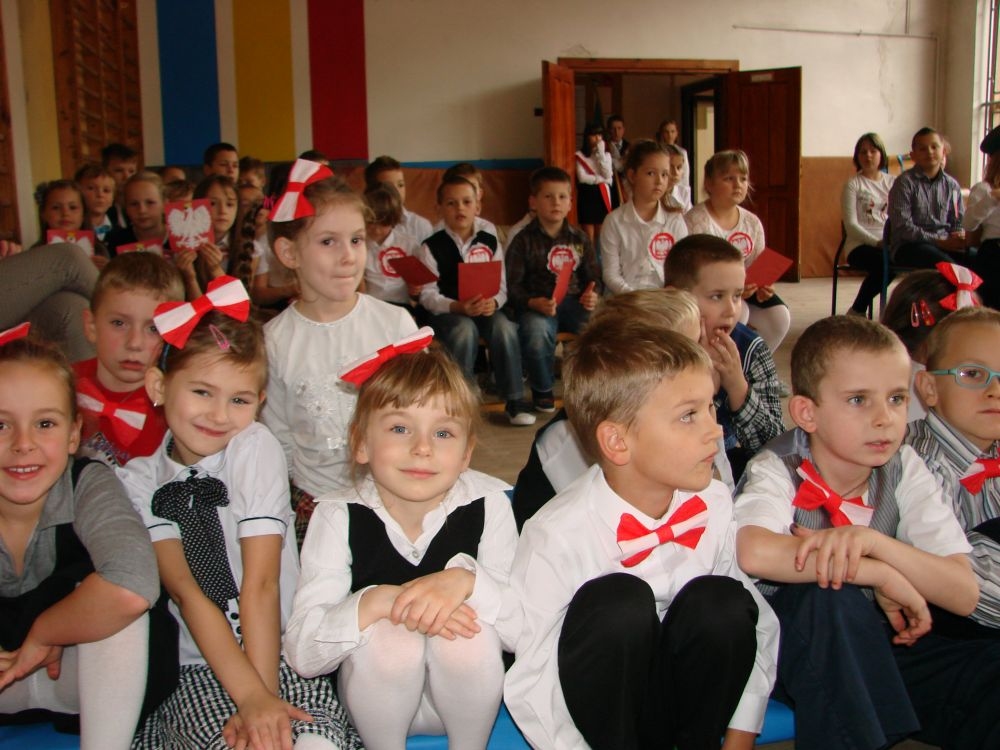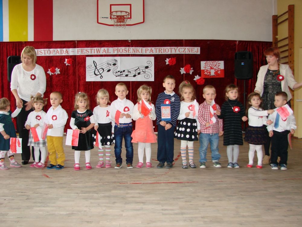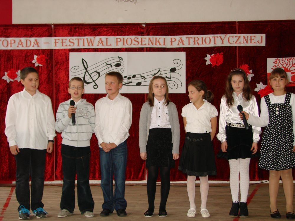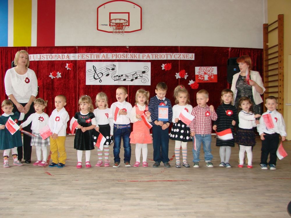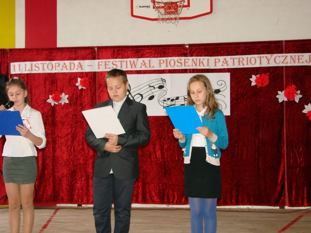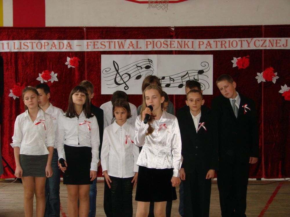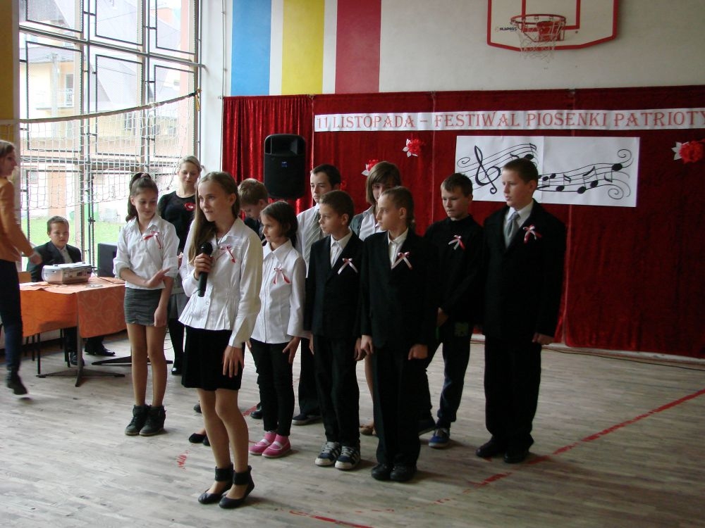 11 listopada obchodzimy Święto Niepodległości. Tradycyjnie, jak co roku, społeczność Szkoły Podstawowej w Kosarzyskach aktywnie włączyła się w obchody 96 rocznicy odzyskania przez Polskę niepodległości. Dzień ten świętowaliśmy w poczuciu radości i dumy. Cała społeczność szkolna przyszła w tym dniu ubrana na galowo, aby podkreślić ważność uroczystości. Wychowawcy zadbali również o dodatkowe elementy - kotyliony, flagi, czy wstążeczki w kolorach biało - czerwonych. W tym roku uroczystość przebiegała inaczej niż zwykle. Pani Aleksandra Dzięgiel i pani Monika Łączek - Bołoz zaproponowały, aby po raz pierwszy odbył się Festiwal Piosenki Patriotycznej. Już dwa tygodnie przed uroczystością wszyscy uczniowie naszej szkoły poznawali teksty i melodie piosenek. Aż w końcu nadszedł ten oczekiwany przez wszystkich dzień, w którym odbyła się niecodzienna lekcja historii. W festiwalu wzięły udział wszystkie dzieci, począwszy od przedszkola, poprzez zerówkę, klasy I-III oraz klasy IV-VI. Repertuar spotkania był bardzo różnorodny. Całą uroczystość rozpoczęliśmy wspólnie odśpiewanym Mazurkiem Dąbrowskiego. Następnie uczniowie śpiewali pieśni artystyczne, patriotyczne i legionowe, które były przeplatane wierszami oraz ważnymi wydarzeniami z dziejów Polski. Głos zabrał również Pan Dyrektor Marian Dobosz, który podkreślił znaczenie i ważność listopadowego święta. Wspomniał też o symbolu miłości do ojczyzny, walki o wolność, czy symbolu wiary i zwycięstwa. Na zakończenie wszyscy uczestnicy uroczystości zaśpiewali "Rotę", wspólnie "zanosząc błaganie: Tak nam dopomóż Bóg".