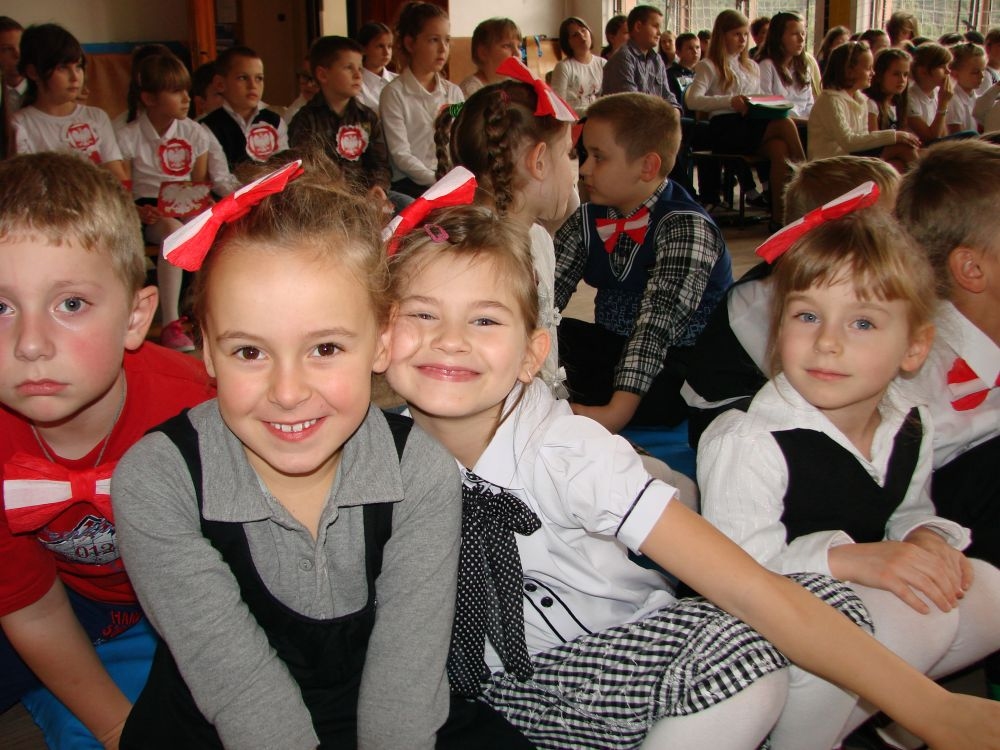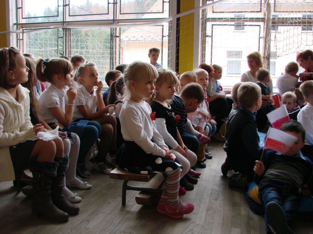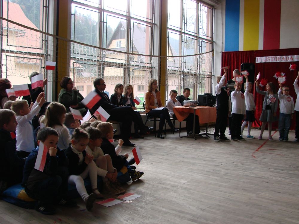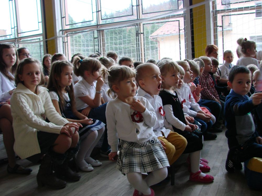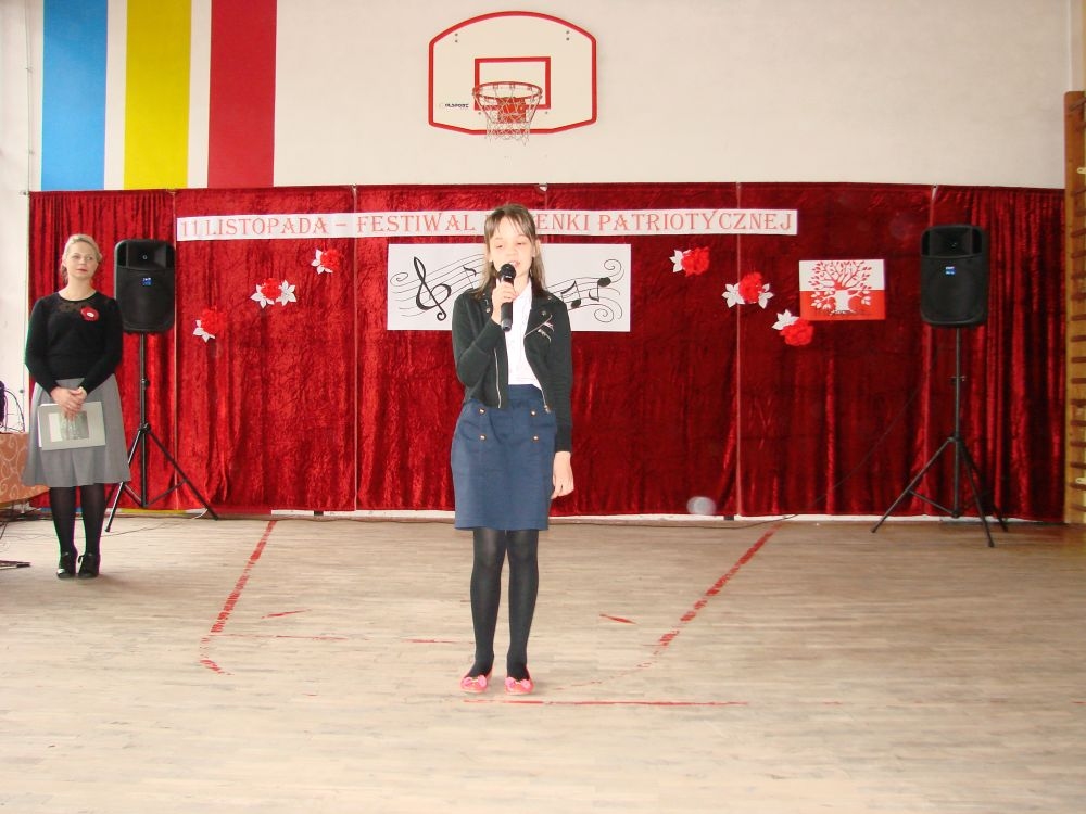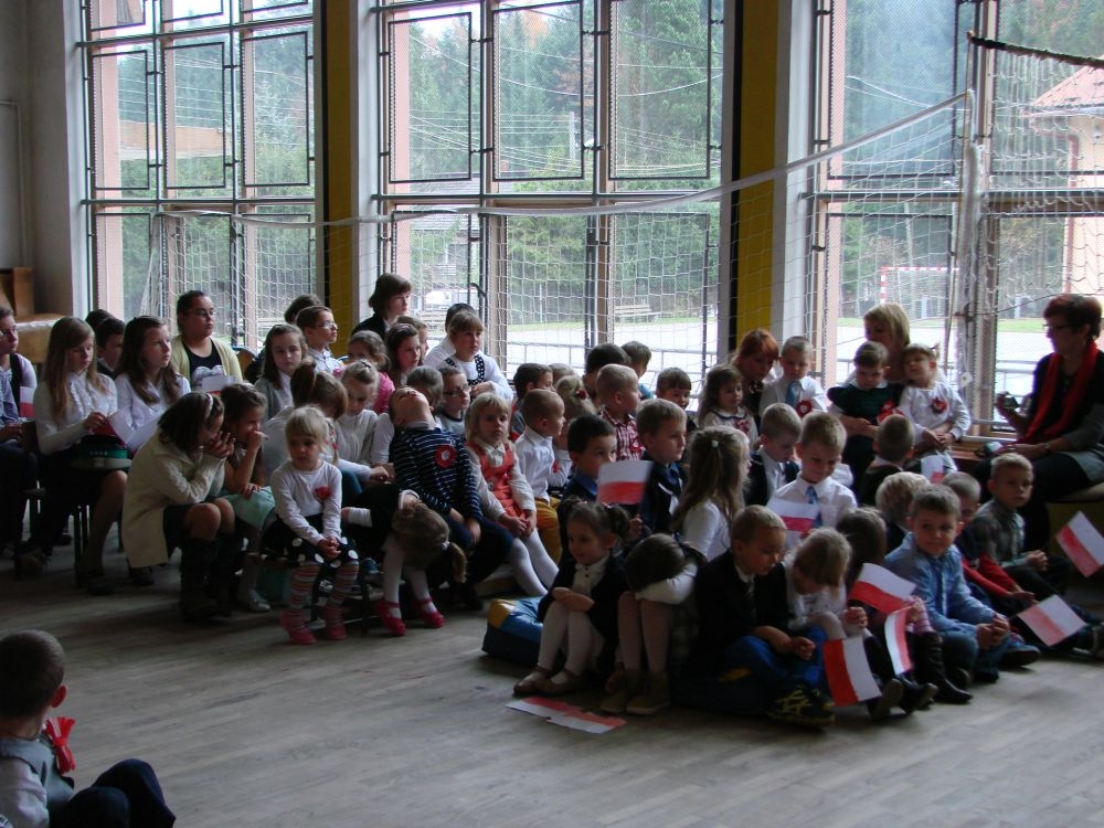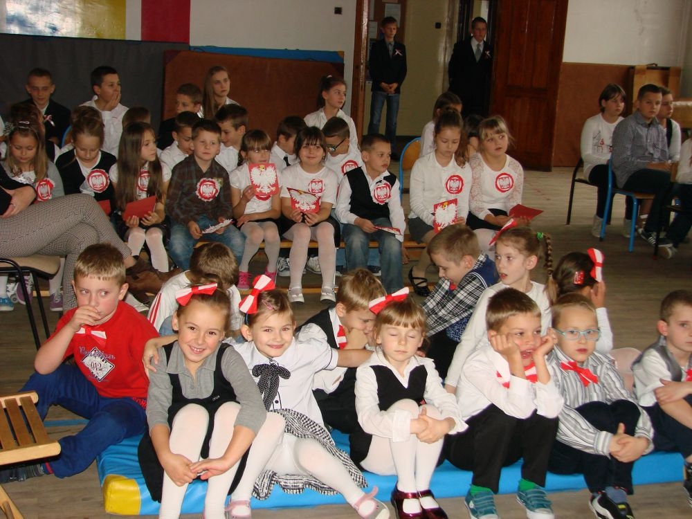 11 listopada obchodzimy Święto Niepodległości. Tradycyjnie, jak co roku, społeczność Szkoły Podstawowej w Kosarzyskach aktywnie włączyła się w obchody 96 rocznicy odzyskania przez Polskę niepodległości. Dzień ten świętowaliśmy w poczuciu radości i dumy. Cała społeczność szkolna przyszła w tym dniu ubrana na galowo, aby podkreślić ważność uroczystości. Wychowawcy zadbali również o dodatkowe elementy - kotyliony, flagi, czy wstążeczki w kolorach biało - czerwonych. W tym roku uroczystość przebiegała inaczej niż zwykle. Pani Aleksandra Dzięgiel i pani Monika Łączek - Bołoz zaproponowały, aby po raz pierwszy odbył się Festiwal Piosenki Patriotycznej. Już dwa tygodnie przed uroczystością wszyscy uczniowie naszej szkoły poznawali teksty i melodie piosenek. Aż w końcu nadszedł ten oczekiwany przez wszystkich dzień, w którym odbyła się niecodzienna lekcja historii. W festiwalu wzięły udział wszystkie dzieci, począwszy od przedszkola, poprzez zerówkę, klasy I-III oraz klasy IV-VI. Repertuar spotkania był bardzo różnorodny. Całą uroczystość rozpoczęliśmy wspólnie odśpiewanym Mazurkiem Dąbrowskiego. Następnie uczniowie śpiewali pieśni artystyczne, patriotyczne i legionowe, które były przeplatane wierszami oraz ważnymi wydarzeniami z dziejów Polski. Głos zabrał również Pan Dyrektor Marian Dobosz, który podkreślił znaczenie i ważność listopadowego święta. Wspomniał też o symbolu miłości do ojczyzny, walki o wolność, czy symbolu wiary i zwycięstwa. Na zakończenie wszyscy uczestnicy uroczystości zaśpiewali "Rotę", wspólnie "zanosząc błaganie: Tak nam dopomóż Bóg".